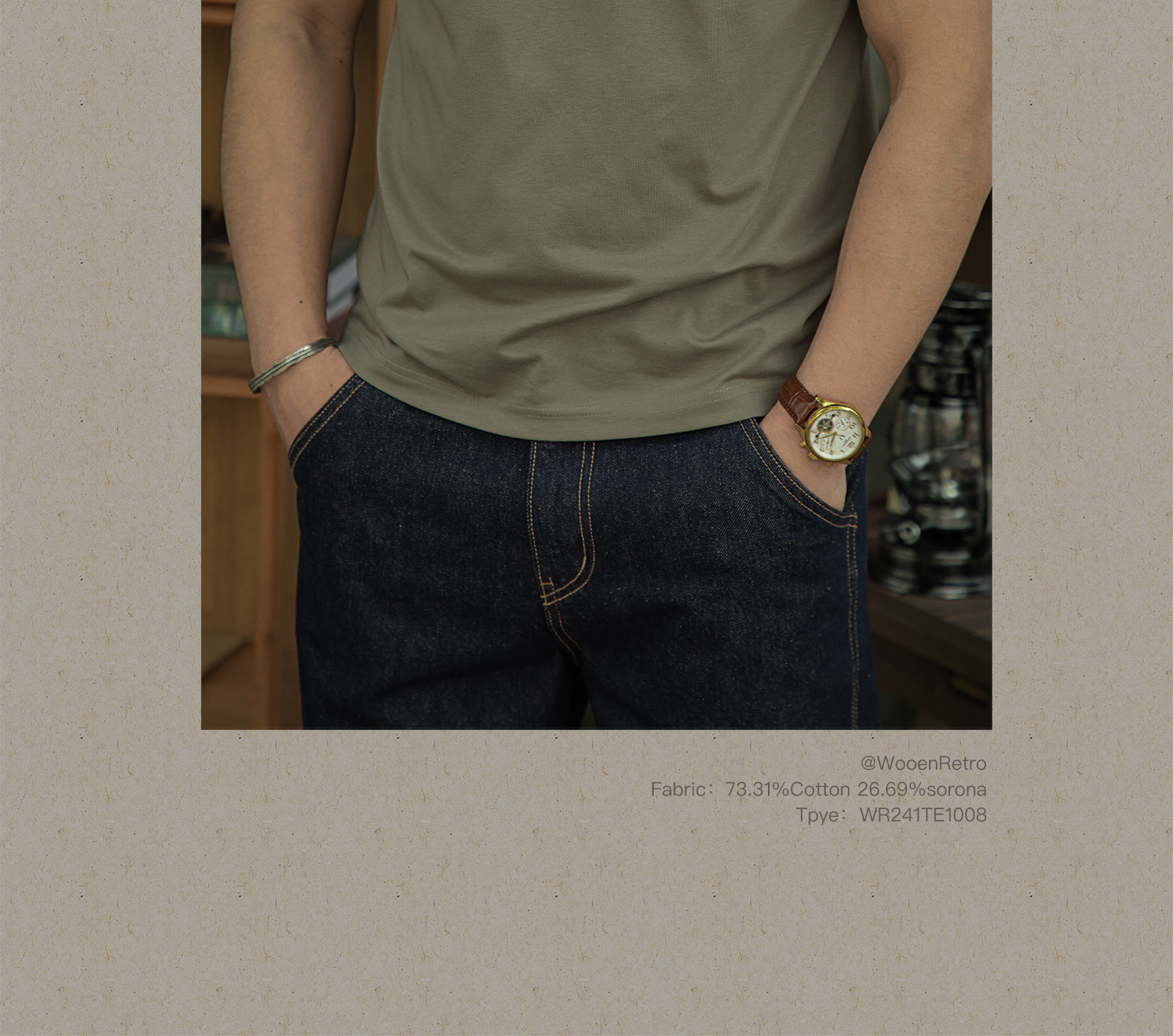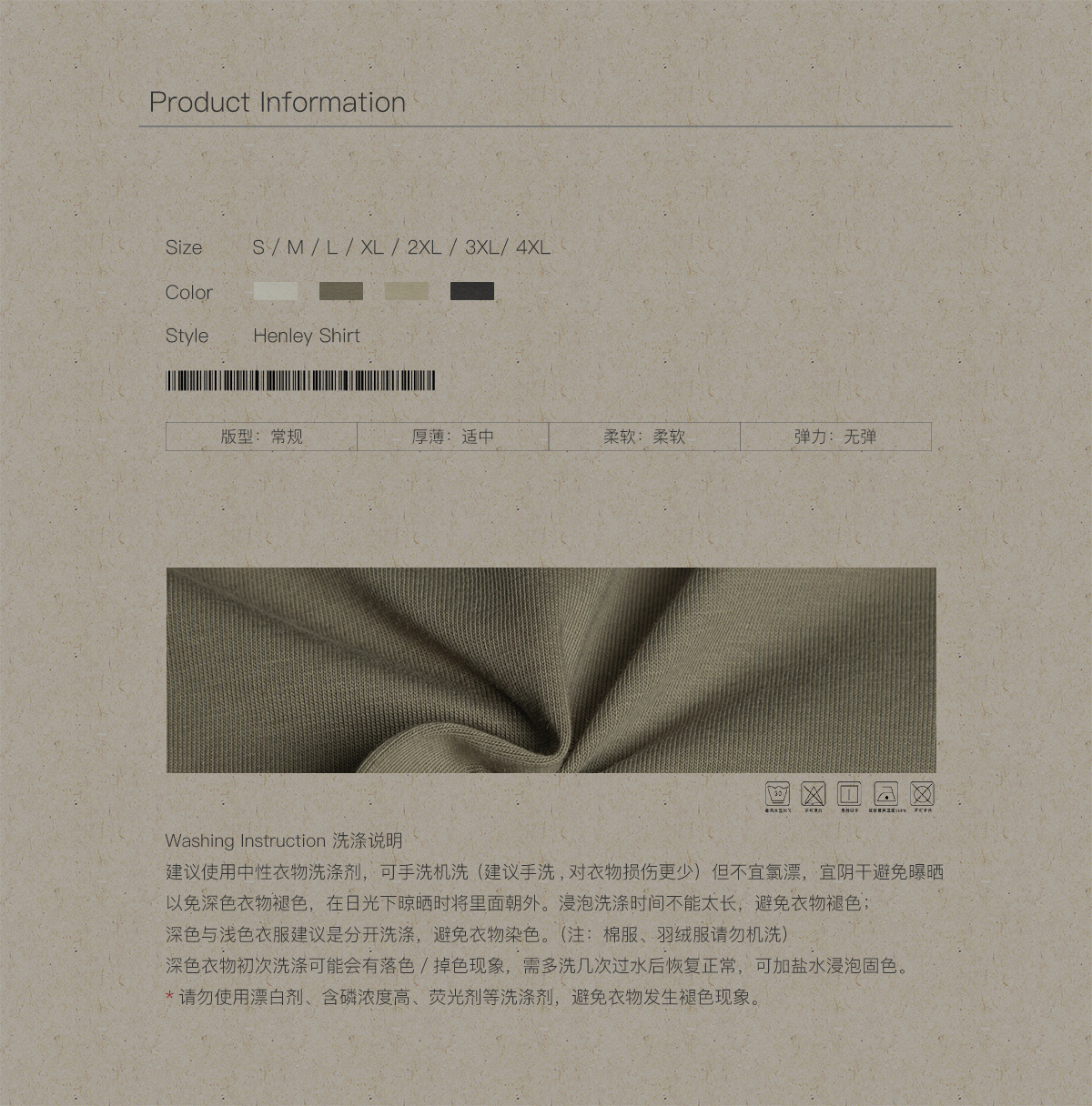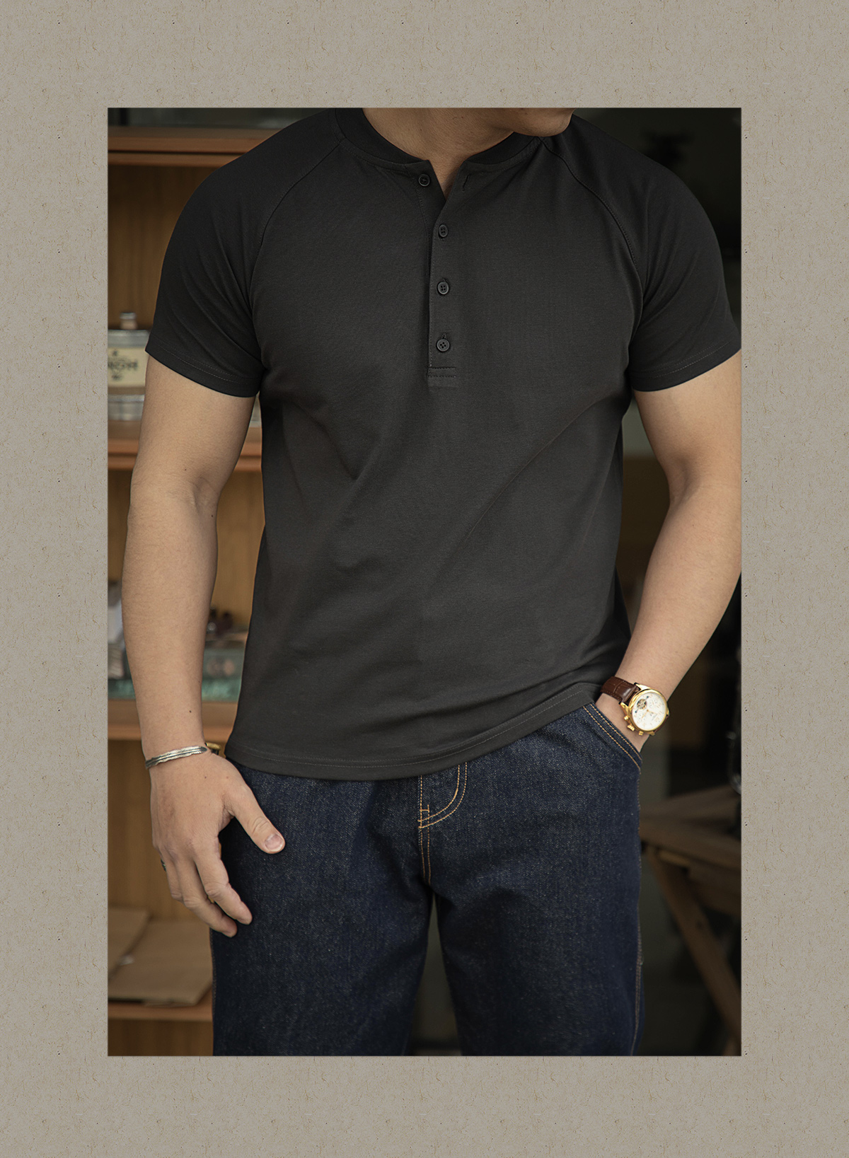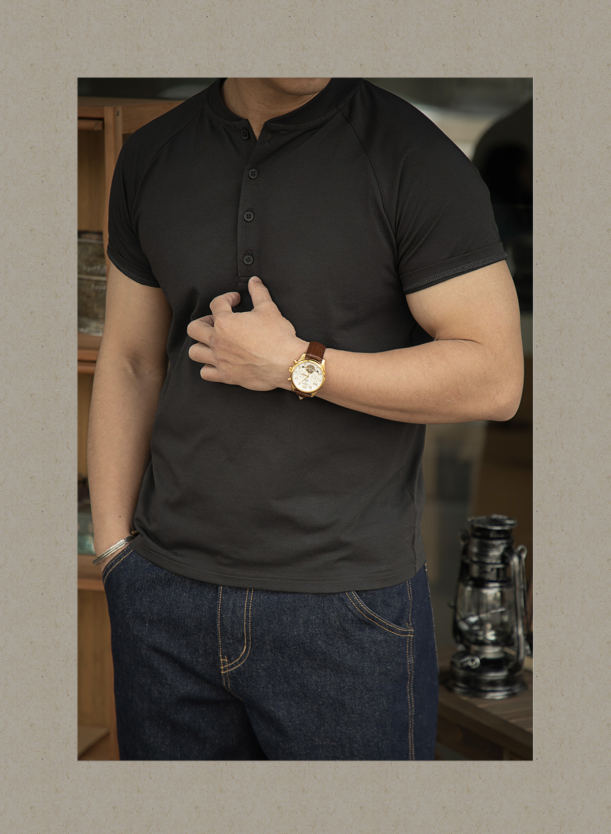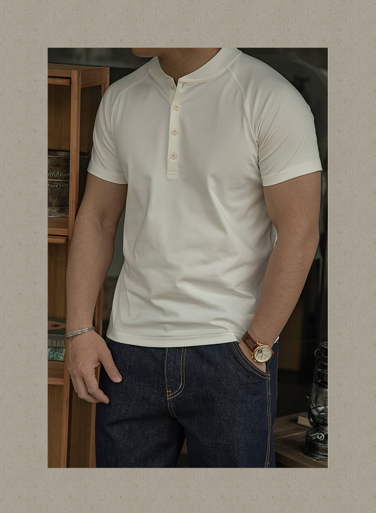 【硬派复古风 凉感索罗娜 高弹不束缚】唔刃美式亨利领插肩T恤(WR241TE1008)