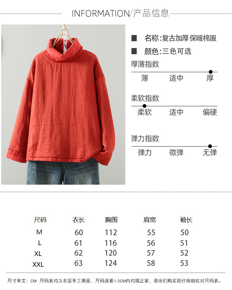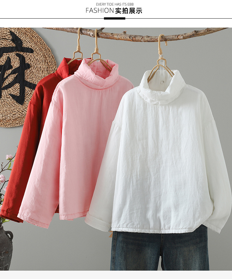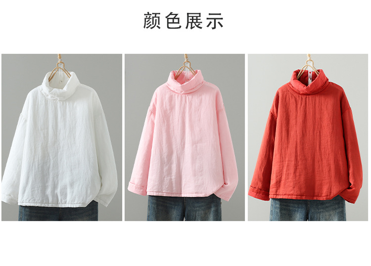 GYH 5656纯色休闲堆堆领纯色简约宽松显瘦加棉棉衣