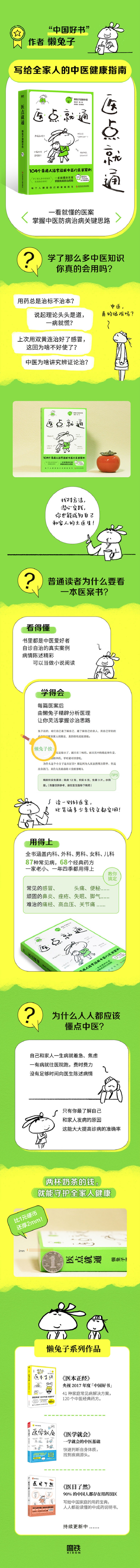 书里都是中医爱好者自诊自治的真实案例。病情陈述精彩,情节跌宕起伏,可以当做小说阅读。每篇文末有懒兔子风趣幽默的漫画,传授知识以外分享人生感悟。