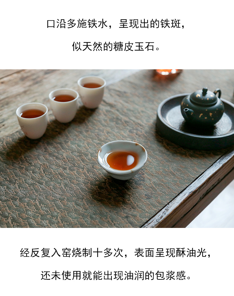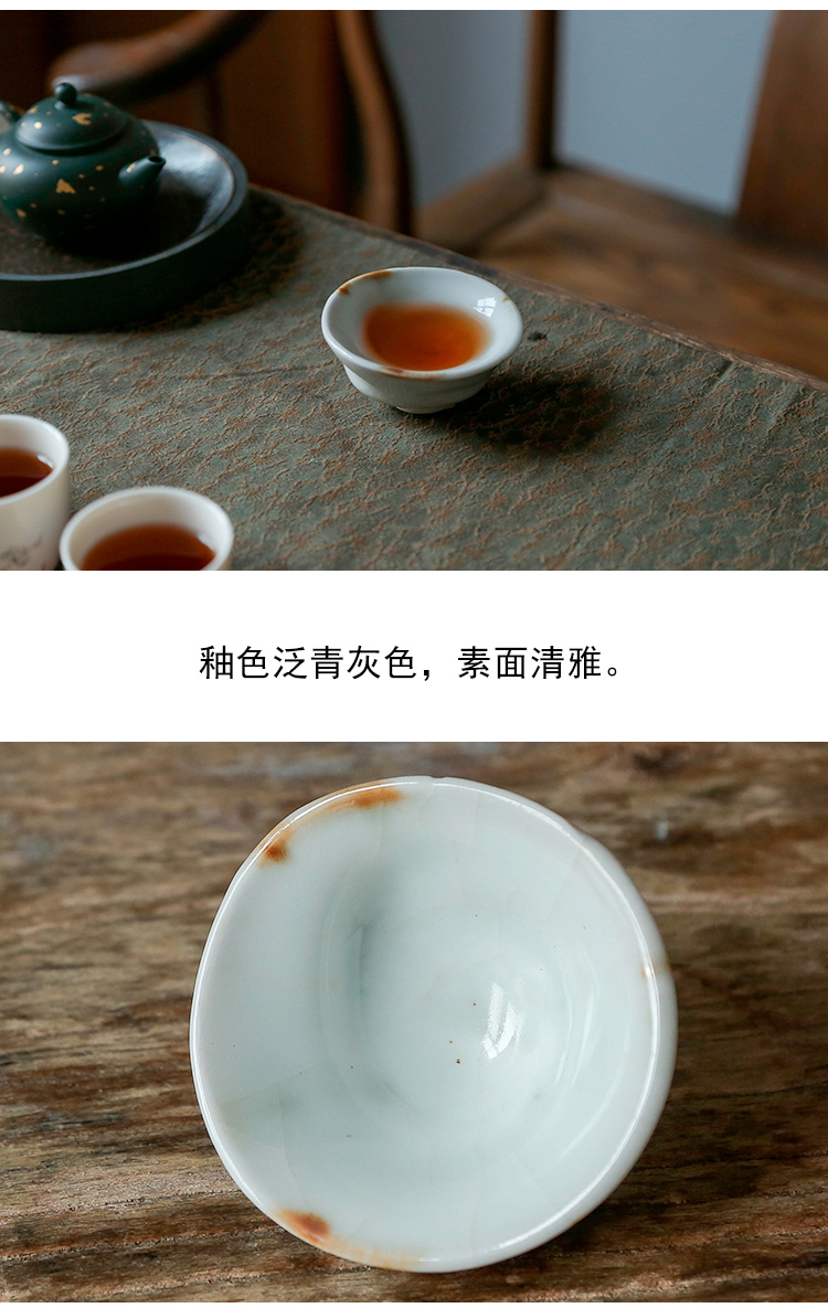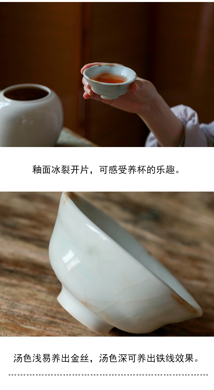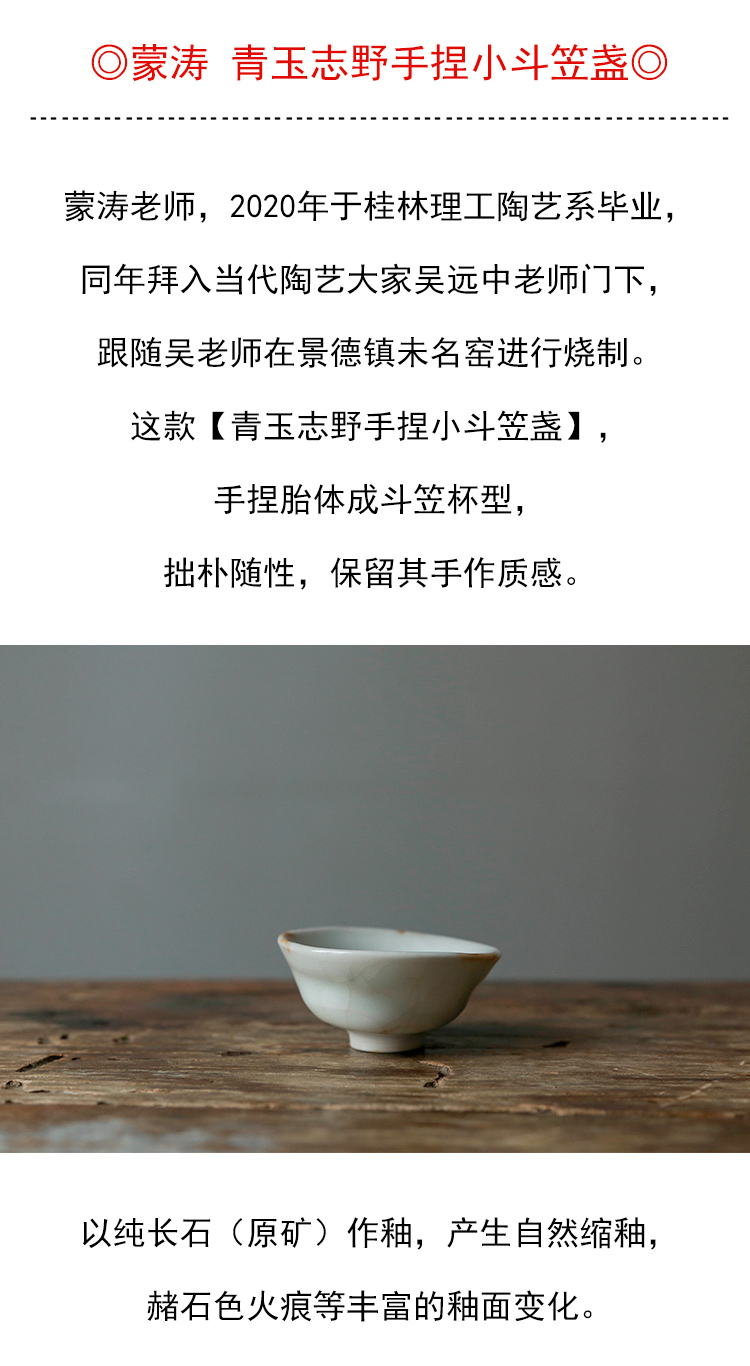 茶香记 蒙涛 青玉志野手捏小斗笠盏 拙朴随性 冰裂开片 茶具茶杯
