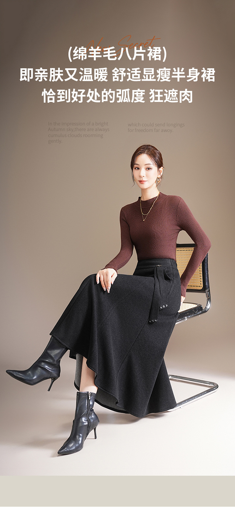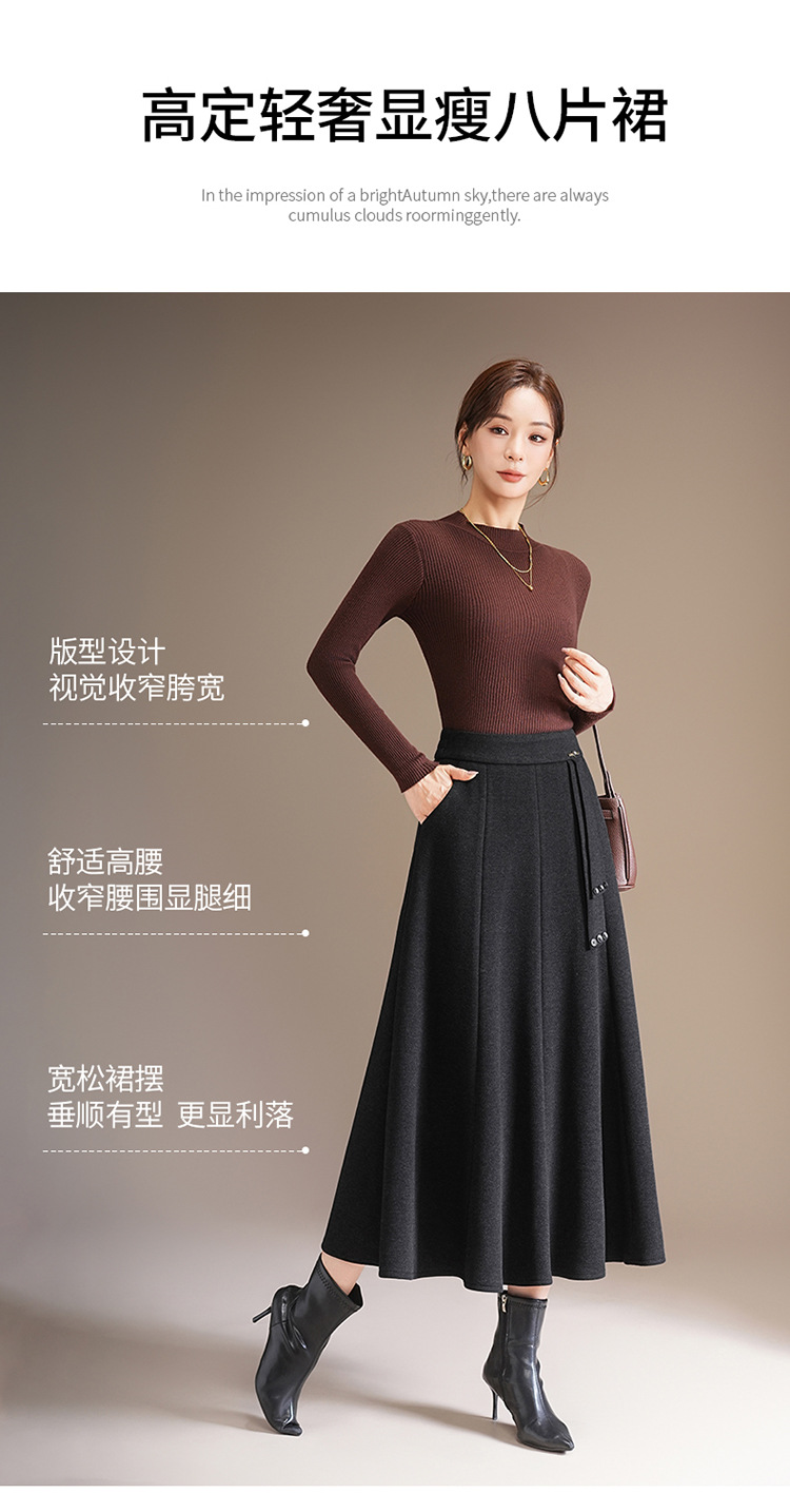 「自」全新升级【铂金会员174/天猫229/差价55】(13514)洛诗琳中长款毛呢半身裙2025秋冬新款高腰显瘦垂感百褶裙