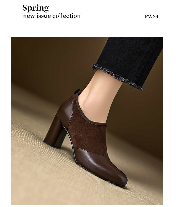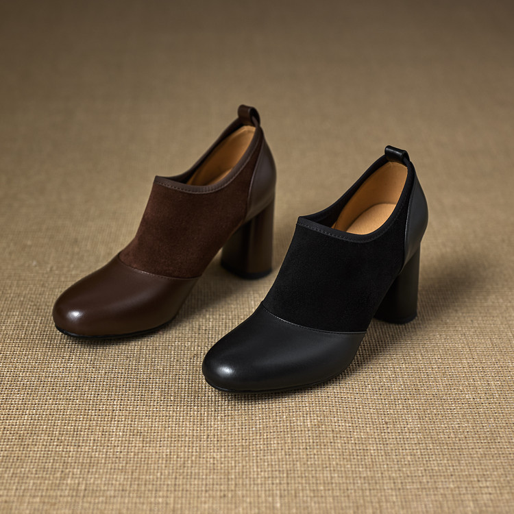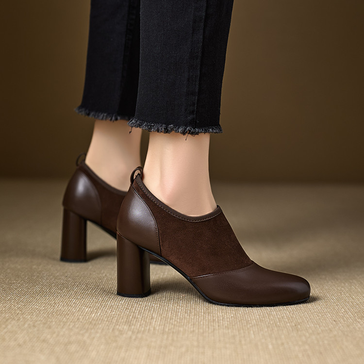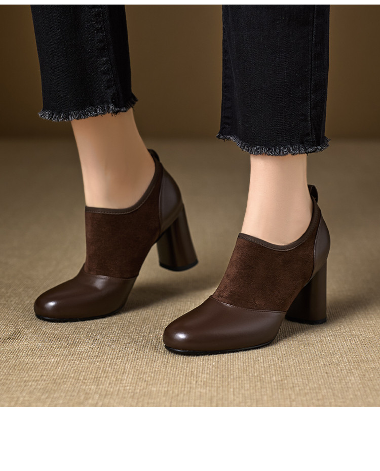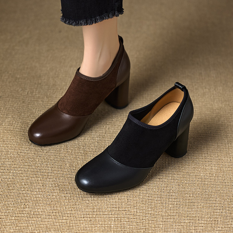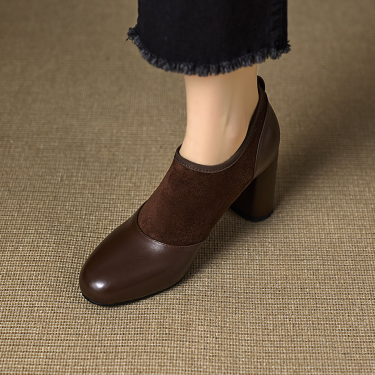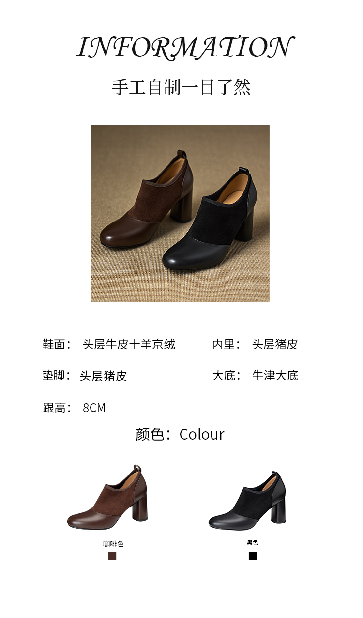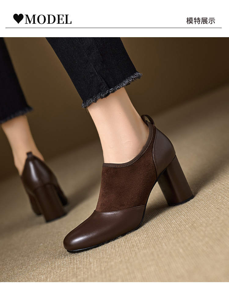 【预售5天】新款粗跟高跟鞋女春秋圆头深口窝窝单鞋英伦风小皮鞋MNLS&D2552