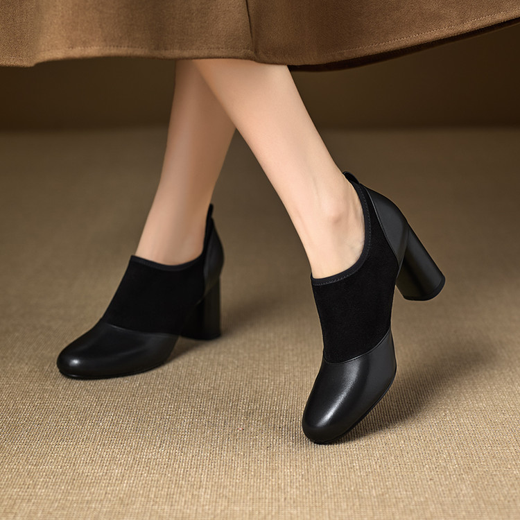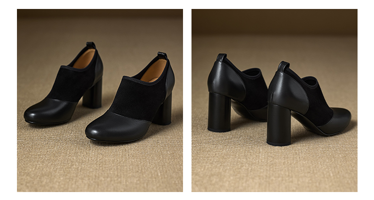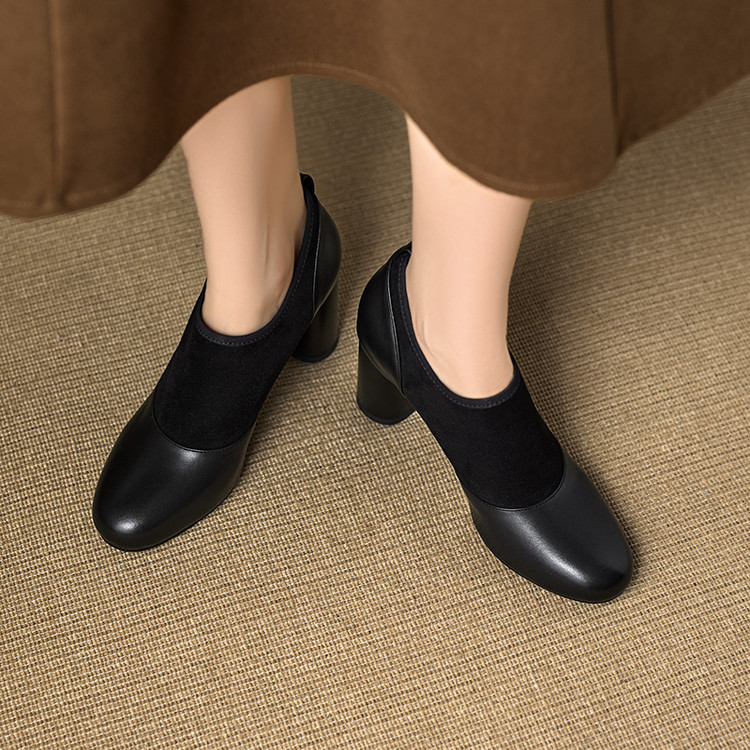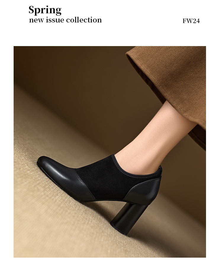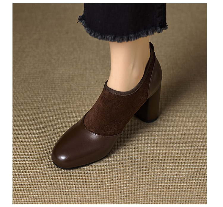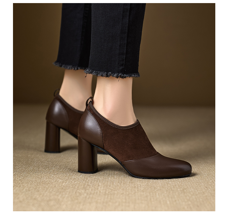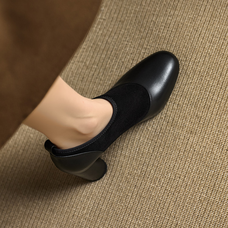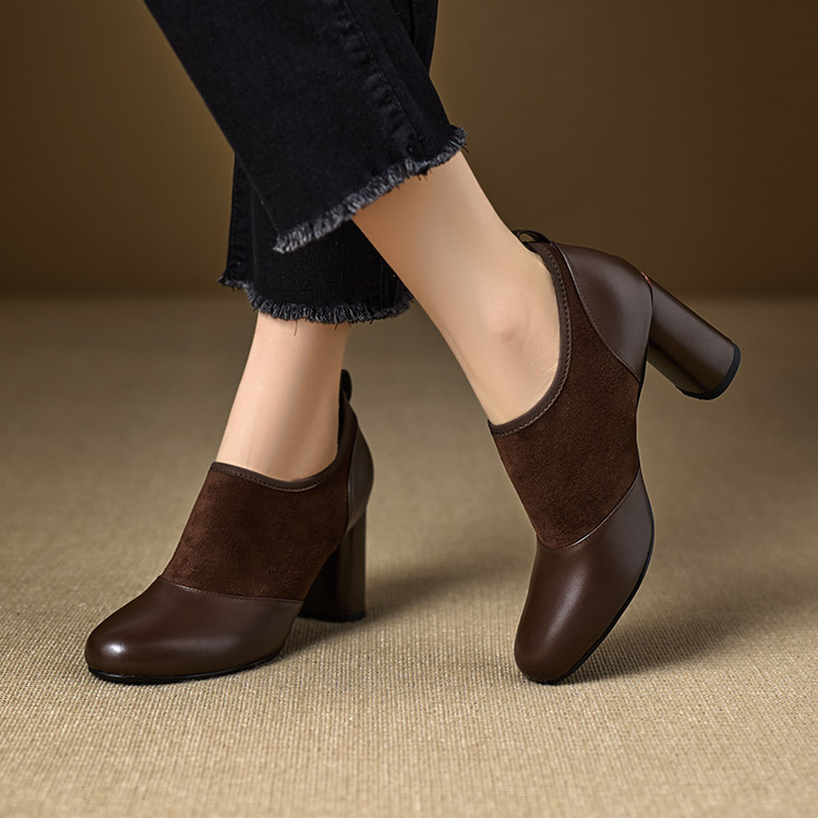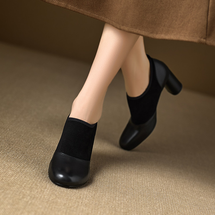 【预售5天】新款粗跟高跟鞋女春秋圆头深口窝窝单鞋英伦风小皮鞋MNLS&D2552