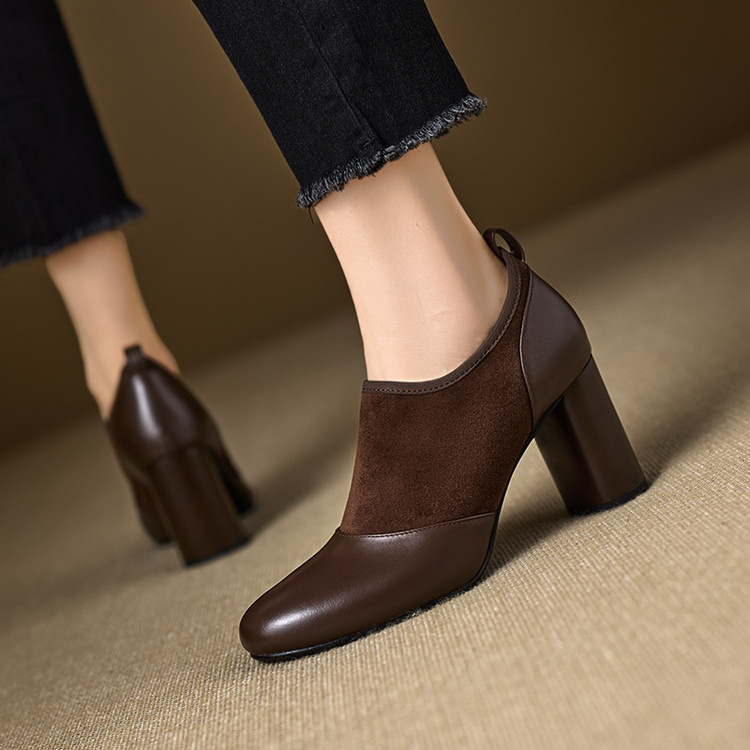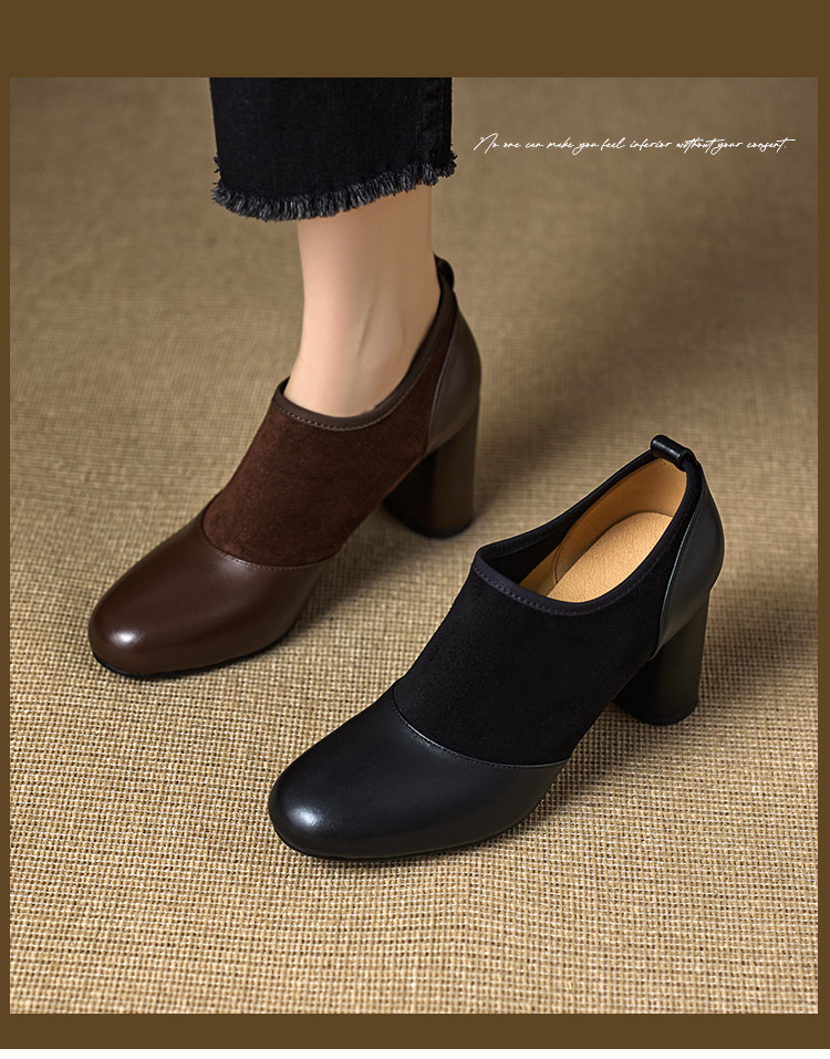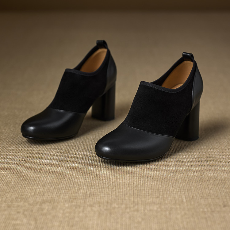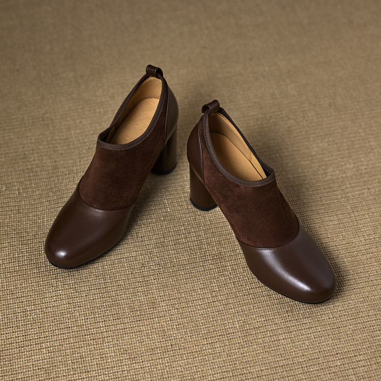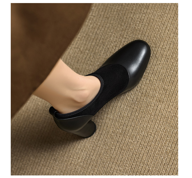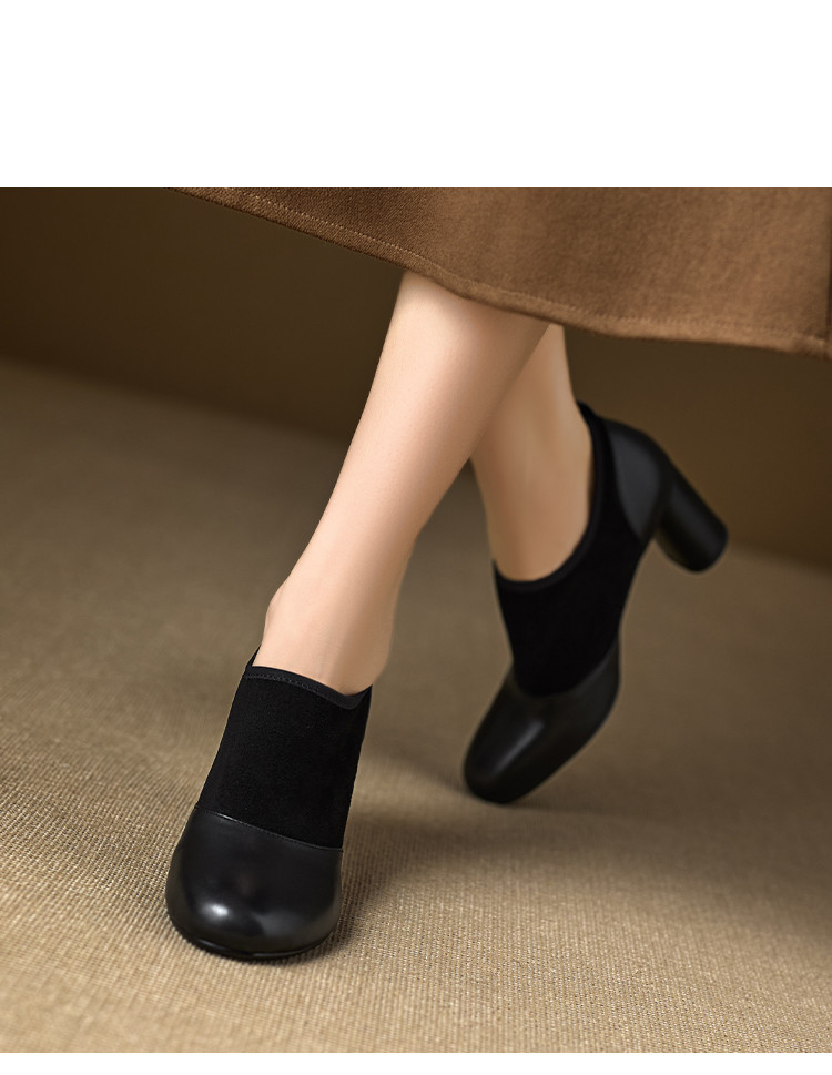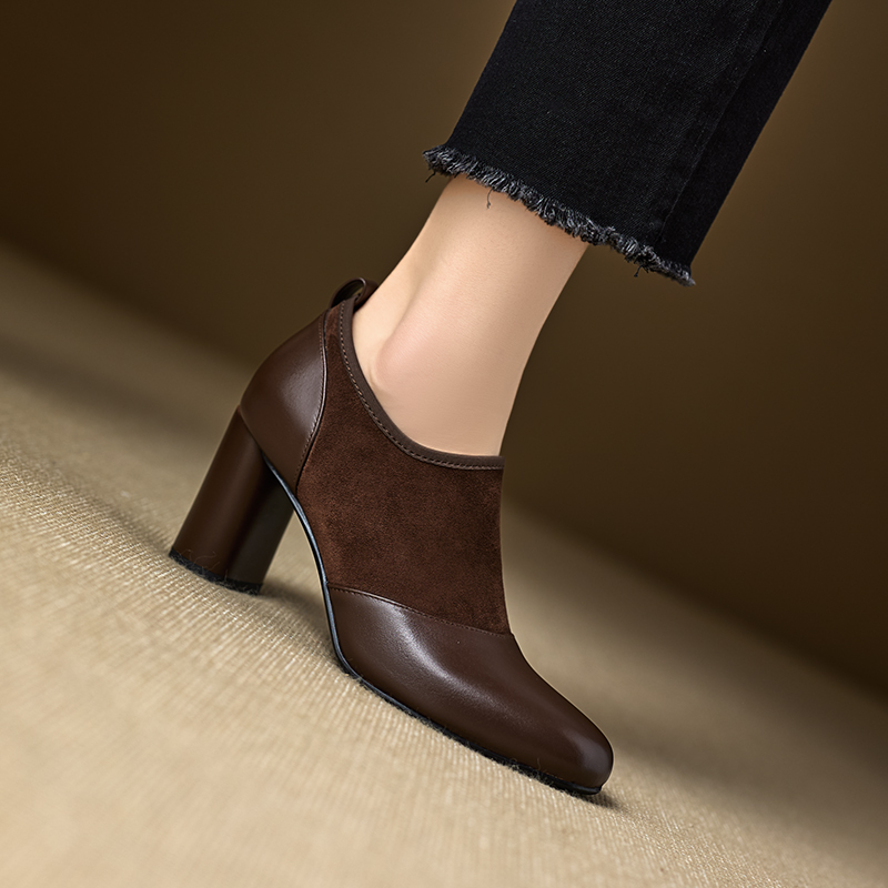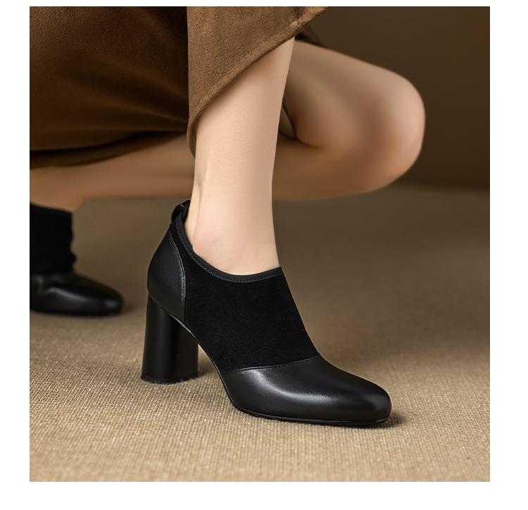 【预售5天】新款粗跟高跟鞋女春秋圆头深口窝窝单鞋英伦风小皮鞋MNLS&D2552