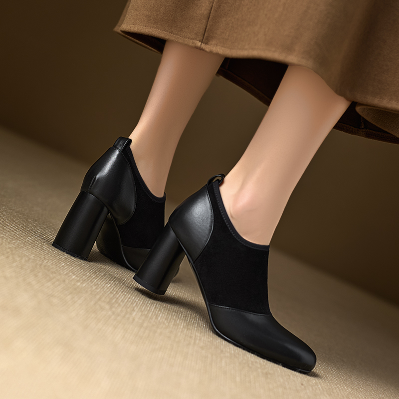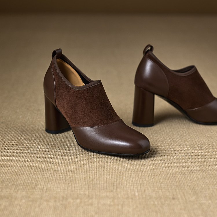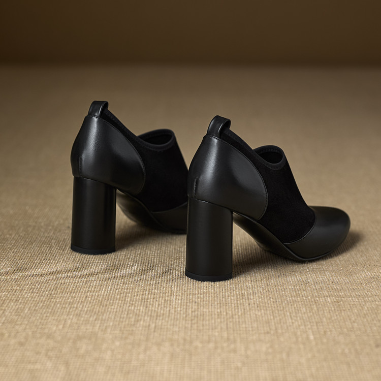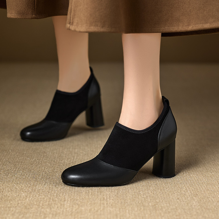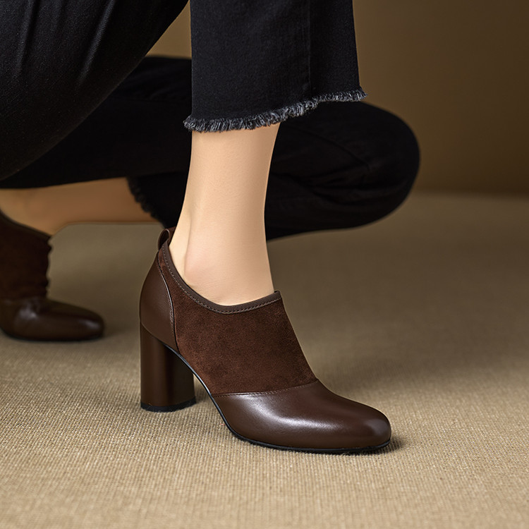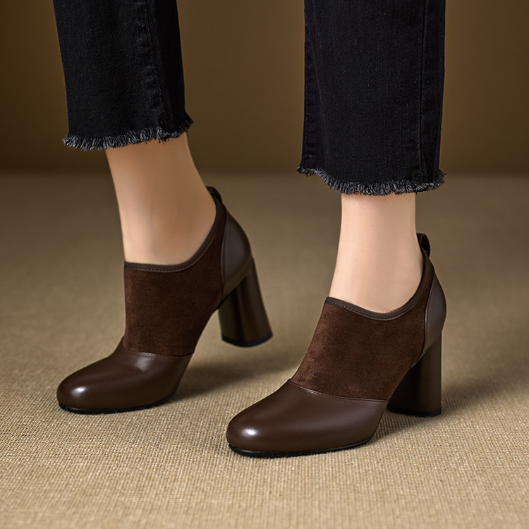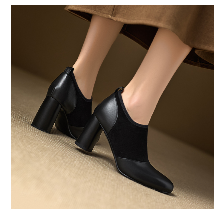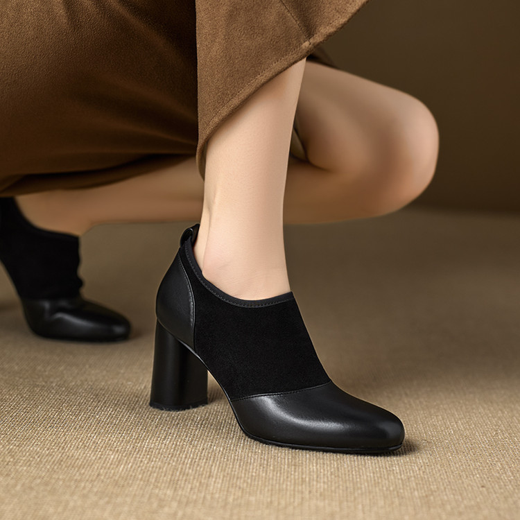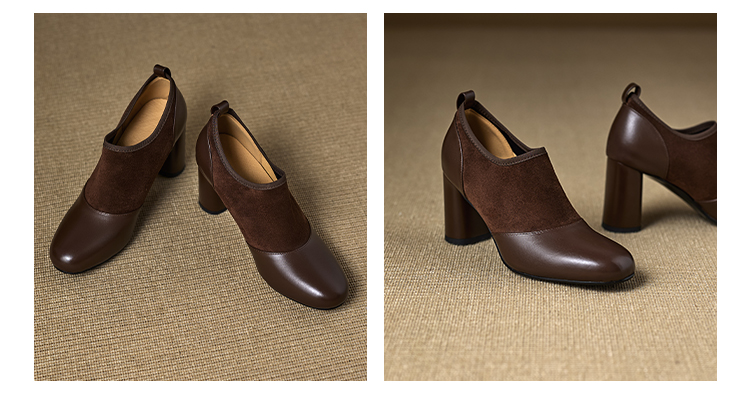 【预售5天】新款粗跟高跟鞋女春秋圆头深口窝窝单鞋英伦风小皮鞋MNLS&D2552