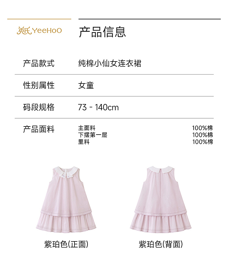 【60S高密府绸】英氏女童裙子夏季小女孩背心裙休闲甜美女生裙子女宝宝连衣裙