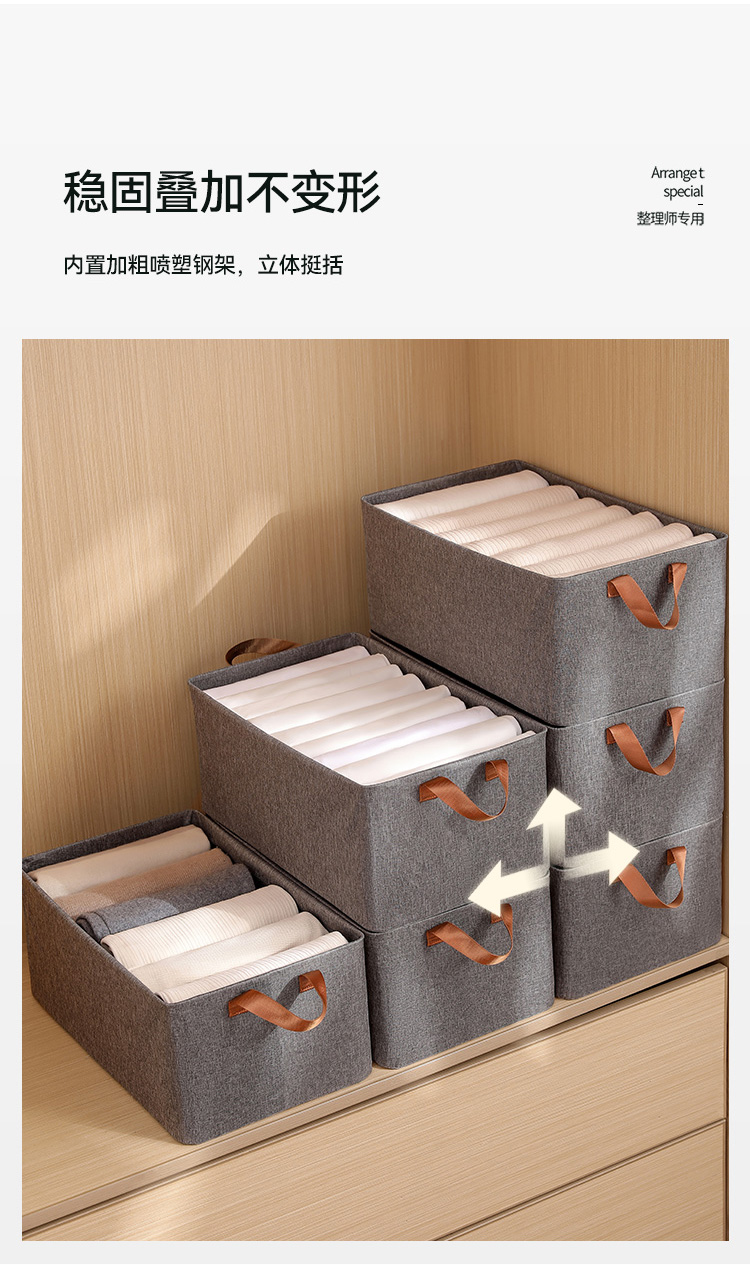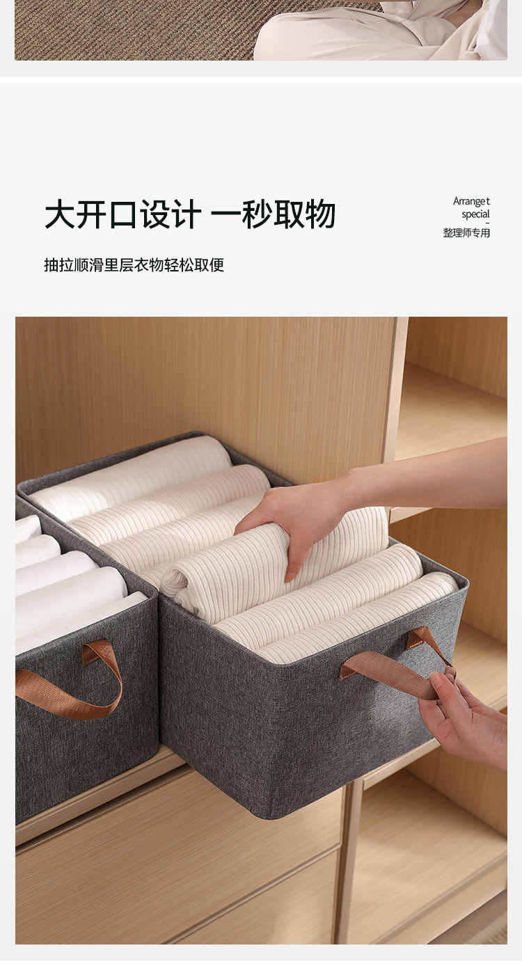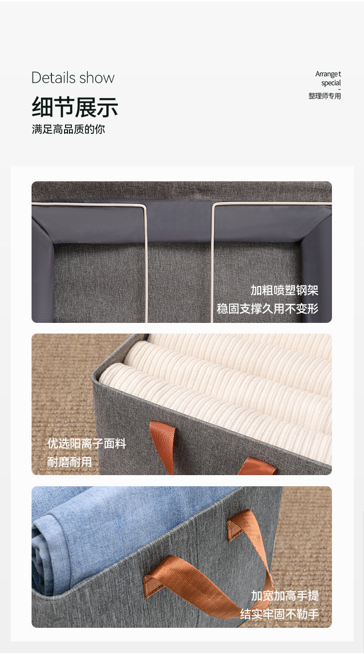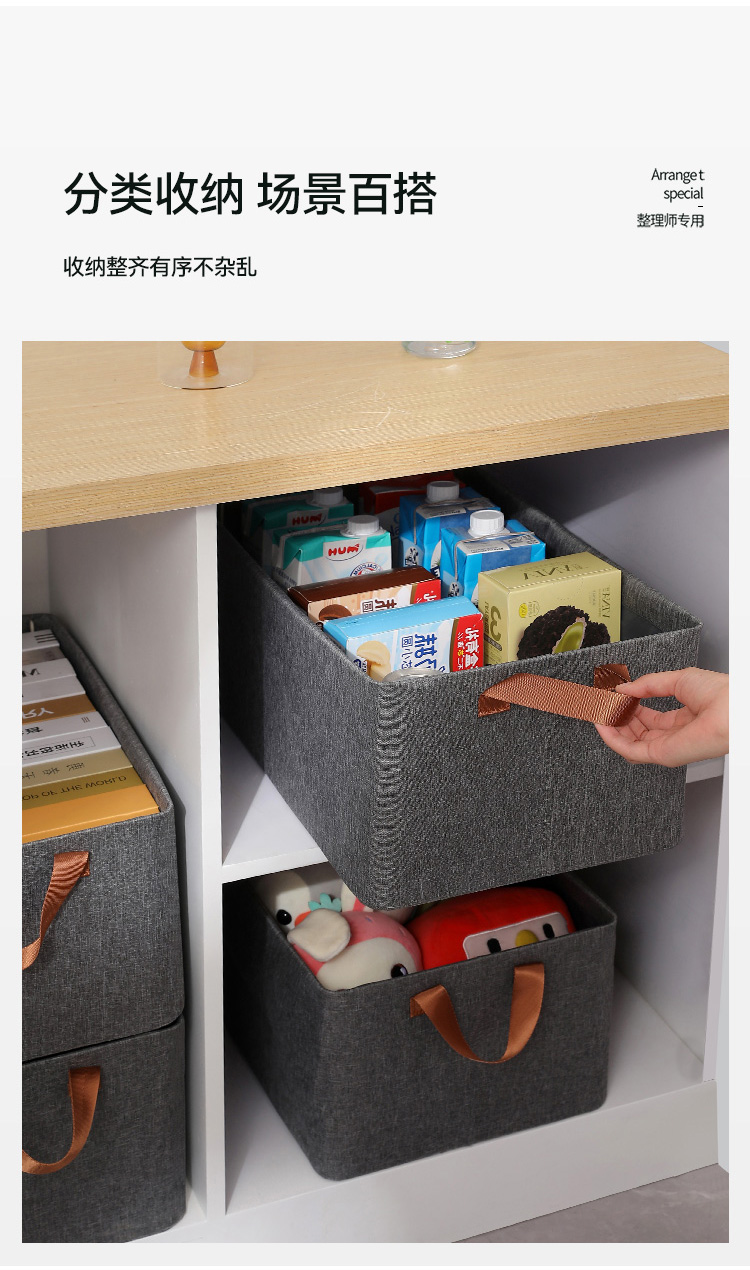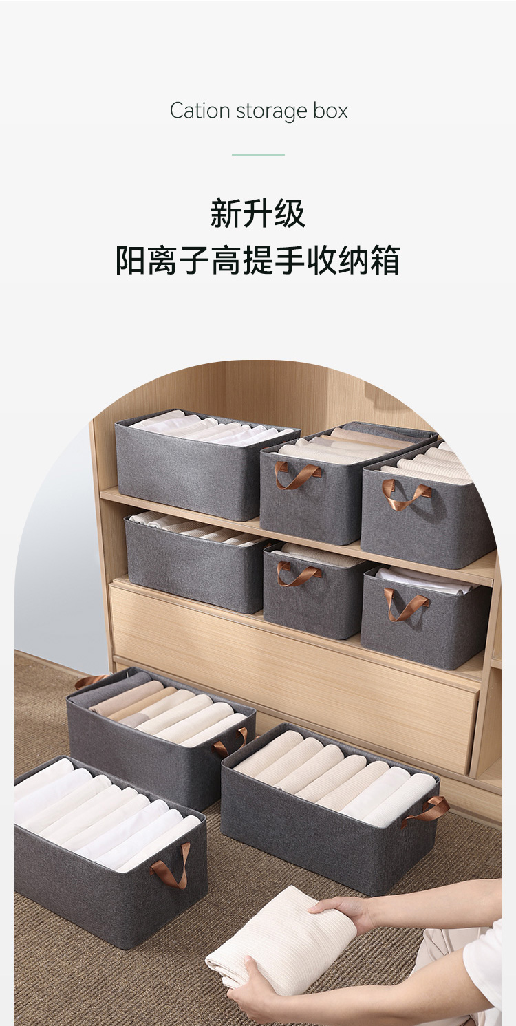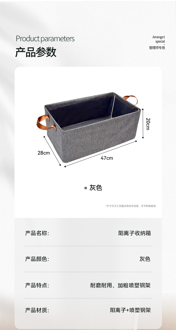 布艺百搭可折叠加厚灰色阳离子收纳盒手提式收纳筐收纳箱