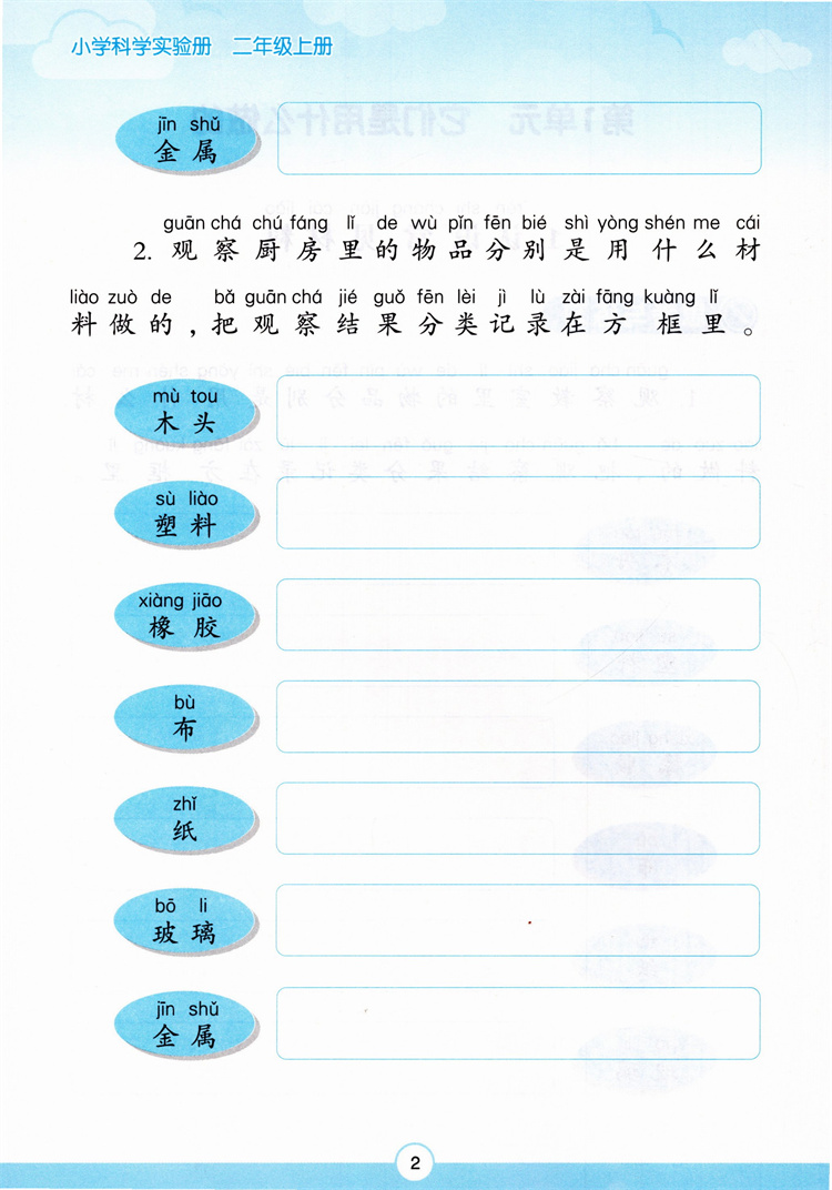 25秋小学科学实验册 二年级上册2上 含实验材料 含电子答案 江苏凤凰教育出版社 SYC