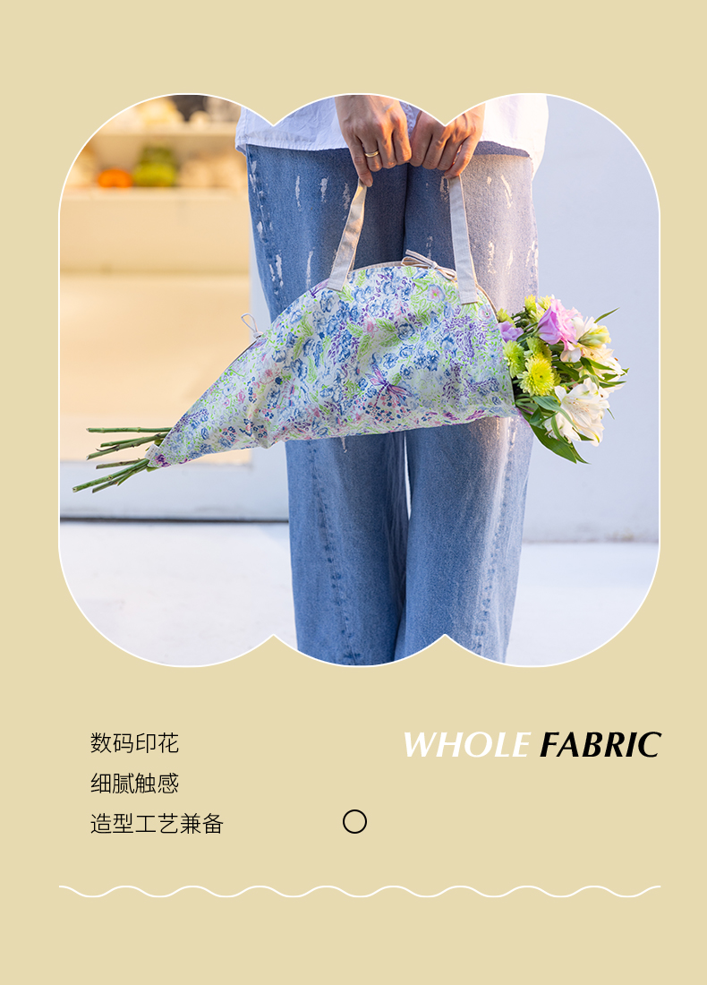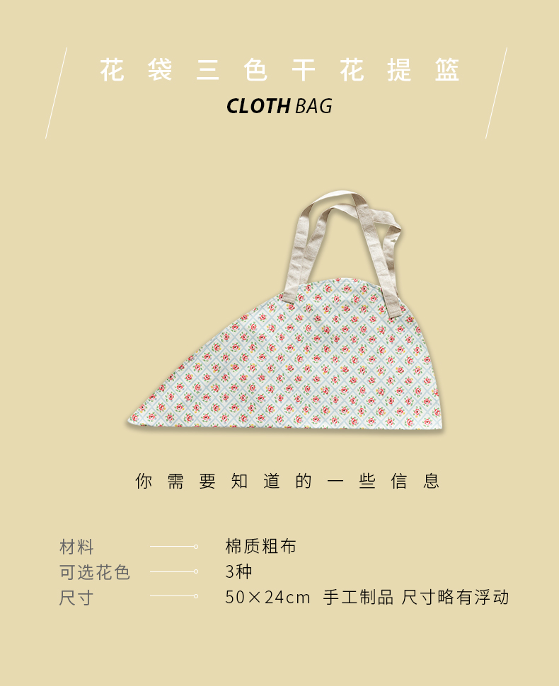 花袋三色花篮干花提篮布艺花袋三色棉质粗布手提篮单件挎包高级感