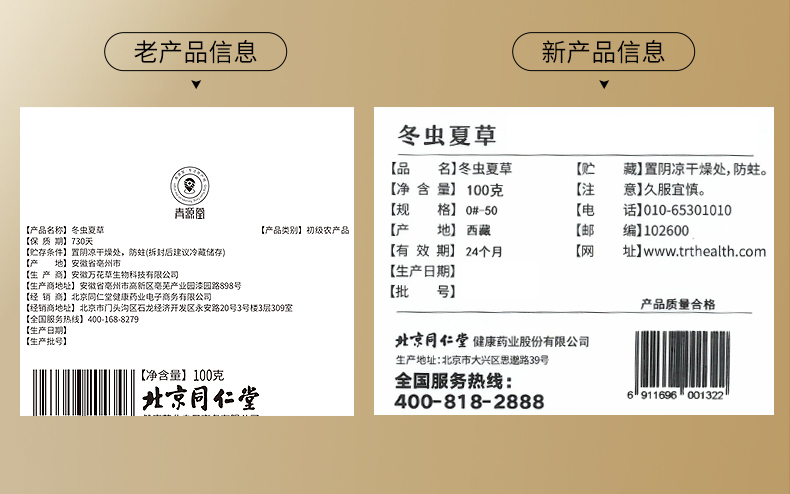 【正宗同仁堂品牌】北京同仁堂 青源堂冬虫夏草5条/克 100克 送礼盒 无断草 足干品质 多次净制 丰富营养SY