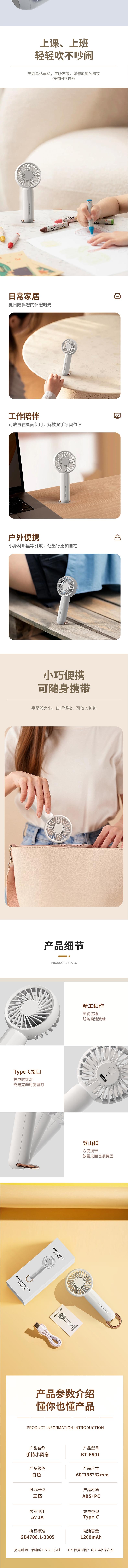 厨创妈咪 手持小风扇1200mAh KT-FS01