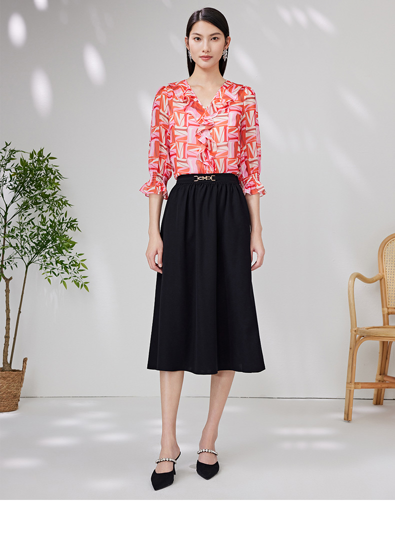EITIE爱特爱春季新款时尚百搭通勤显瘦垂感伞裙A字半身裙女裙A2206905
