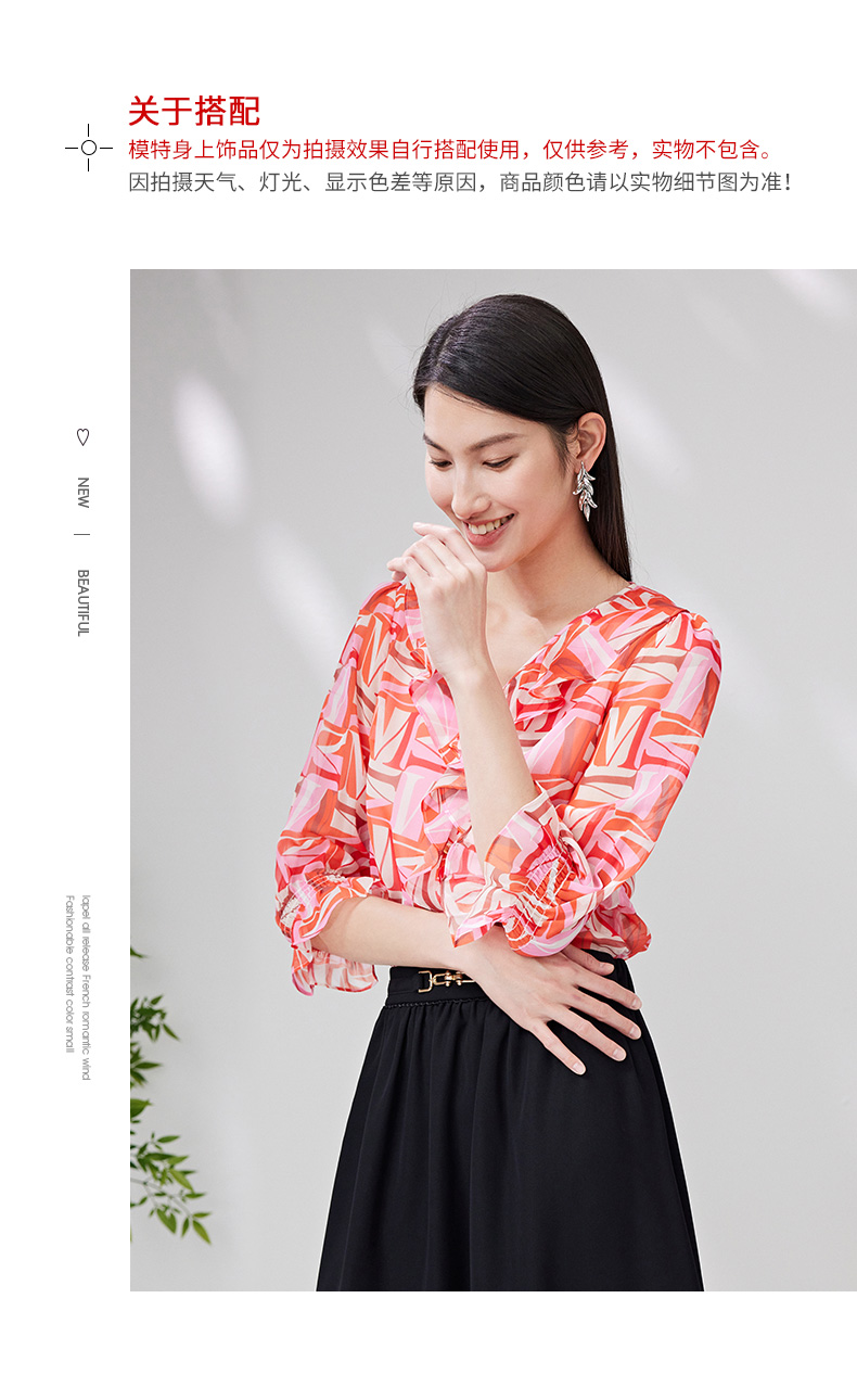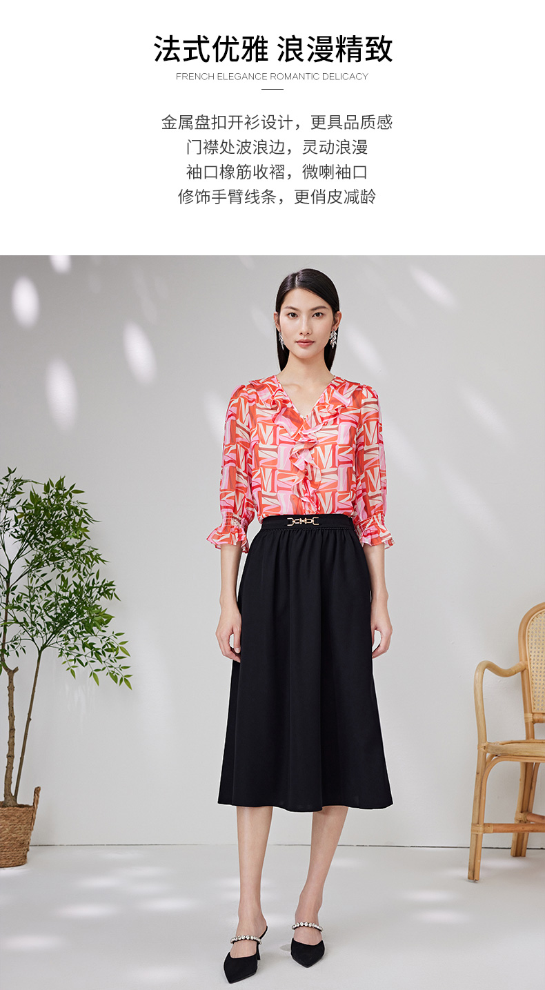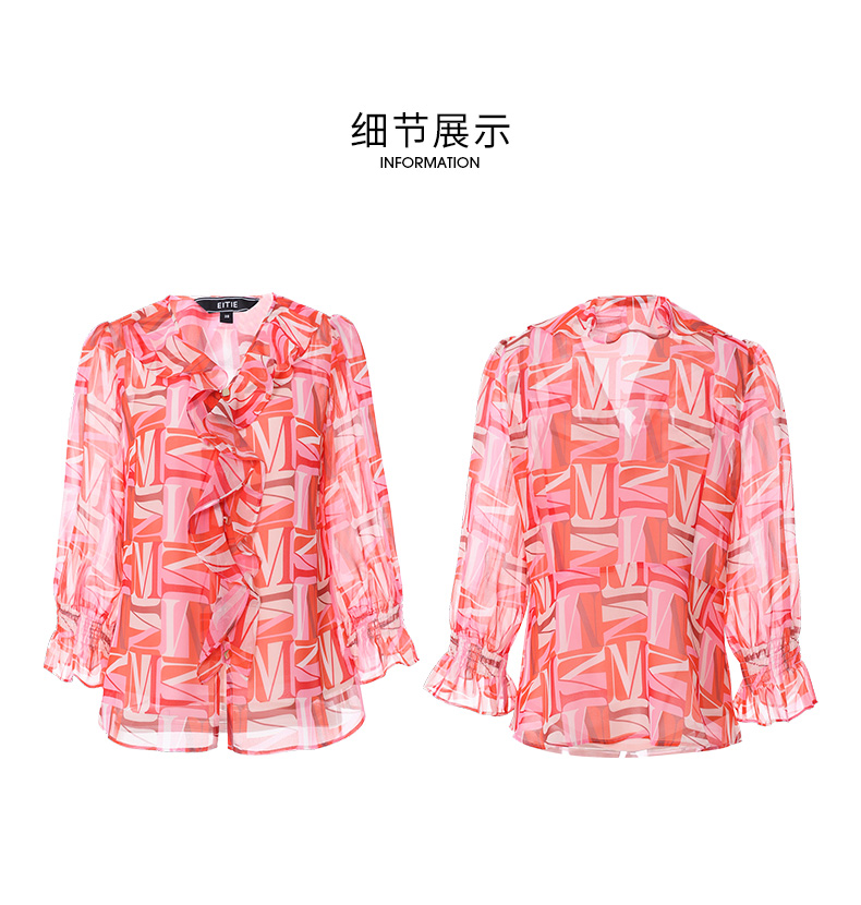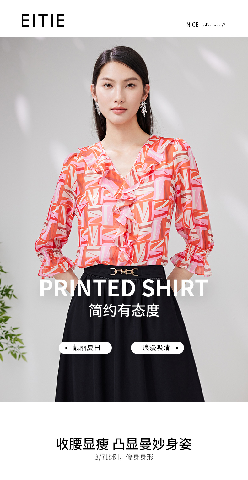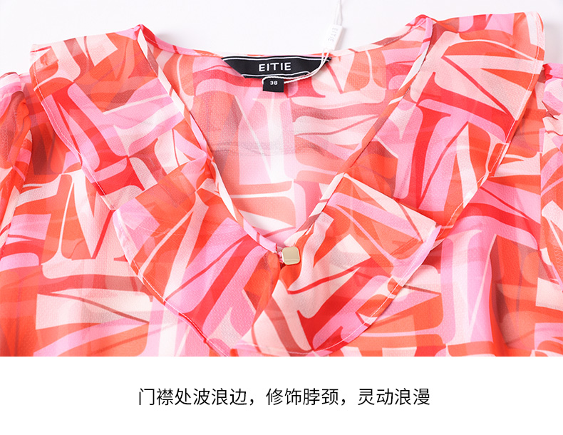 EITIE爱特爱夏季新款印花通勤复古透气短袖6609302衬衣