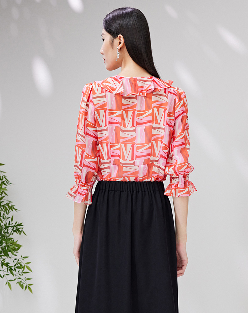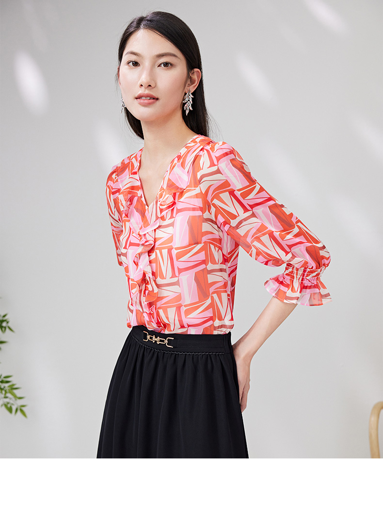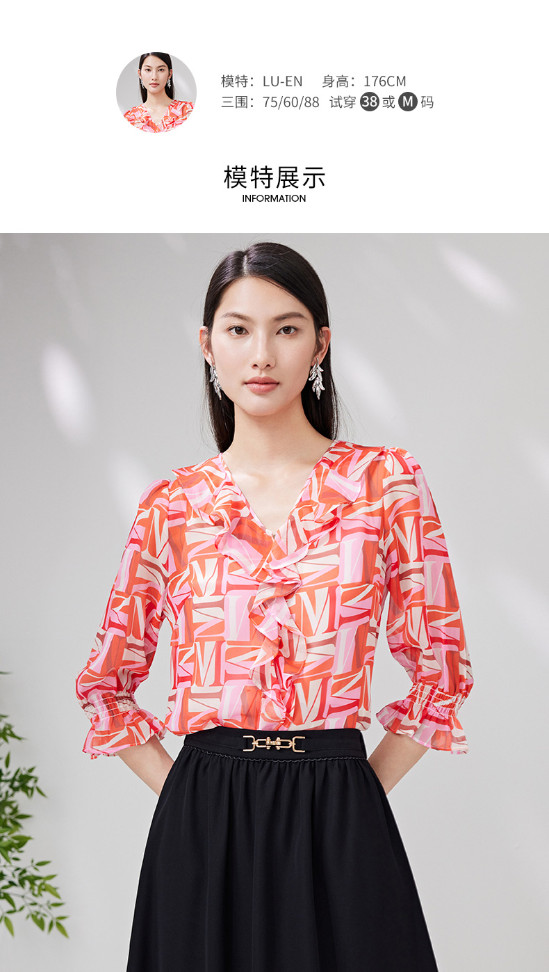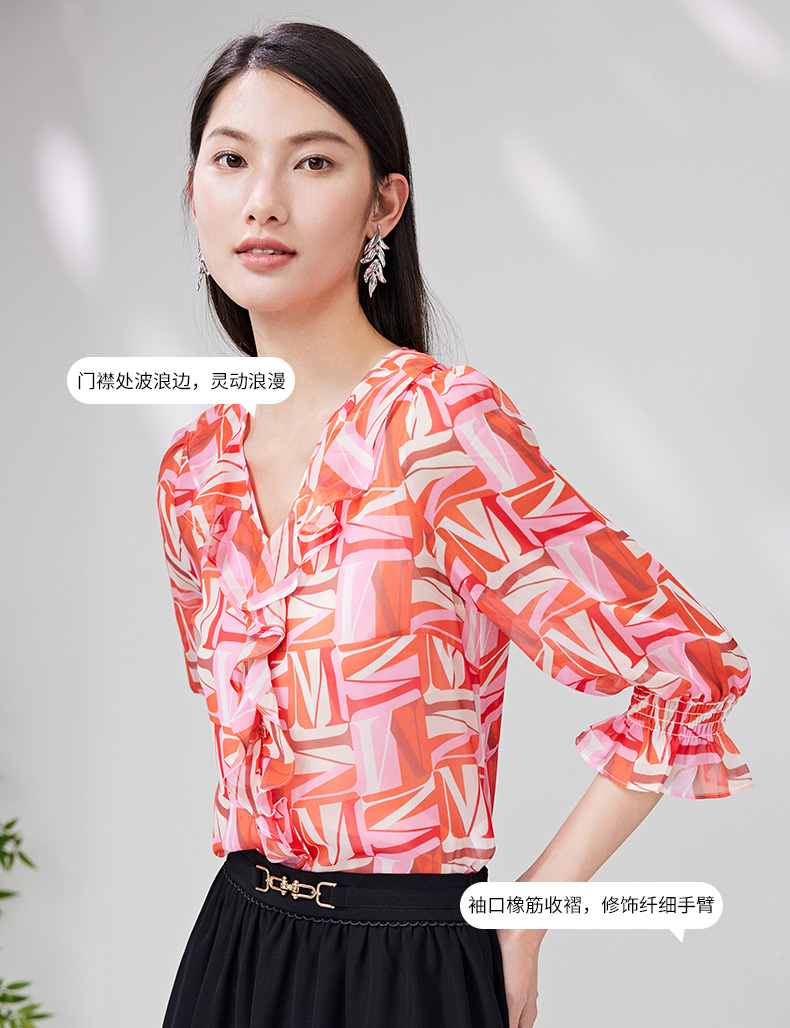 EITIE爱特爱夏季新款印花通勤复古透气短袖6609302衬衣