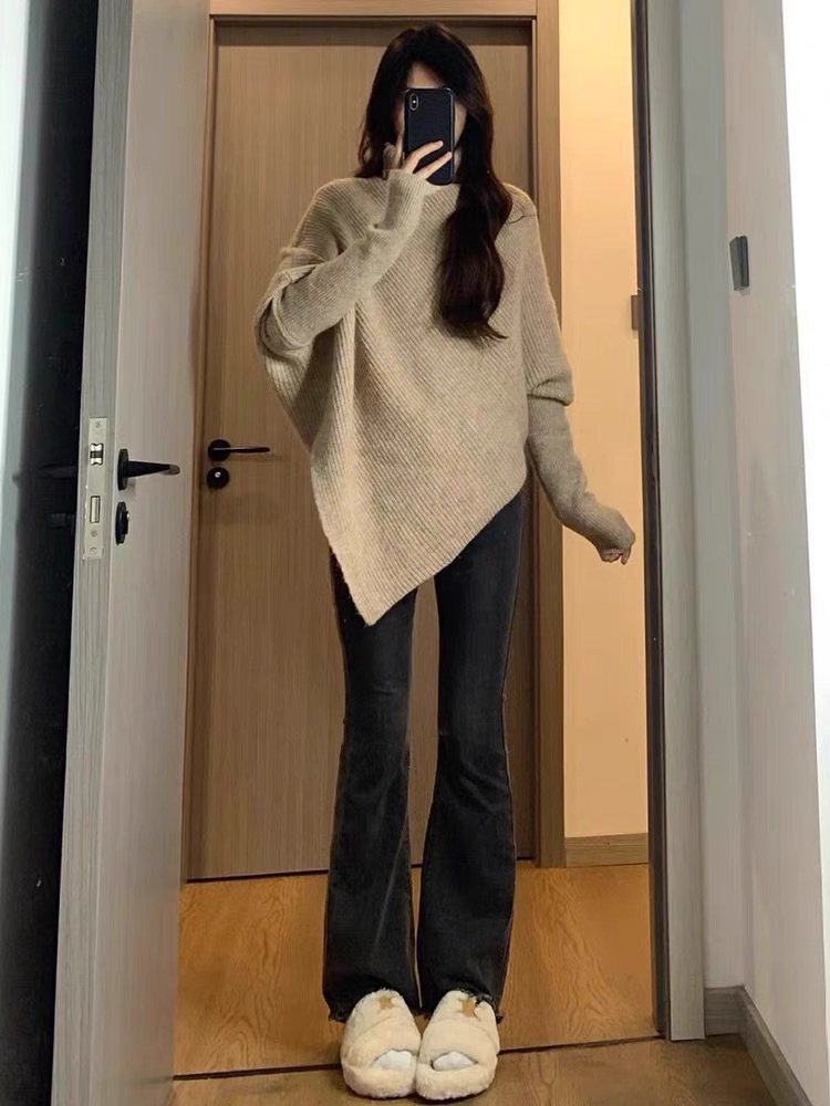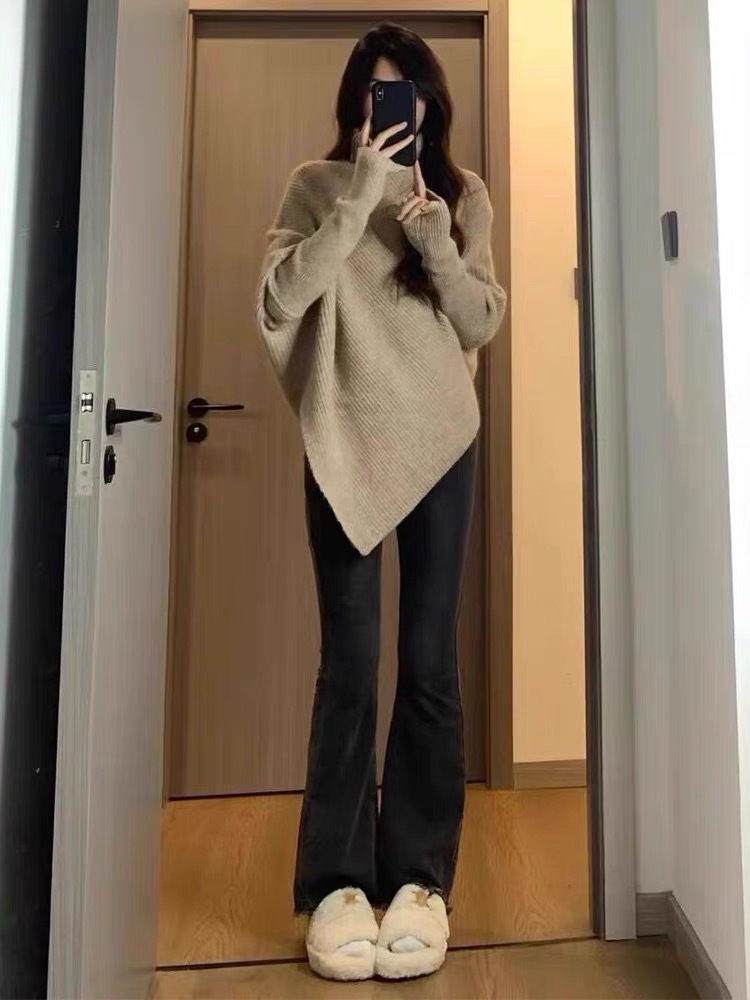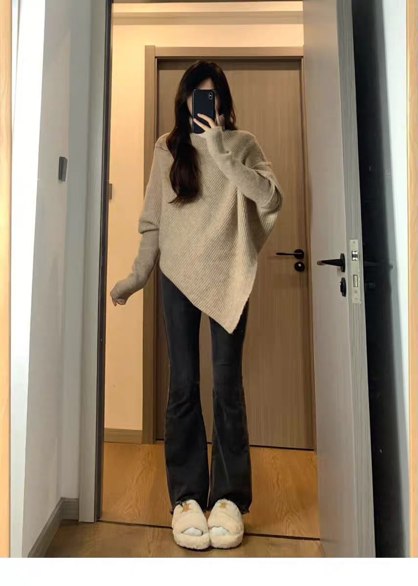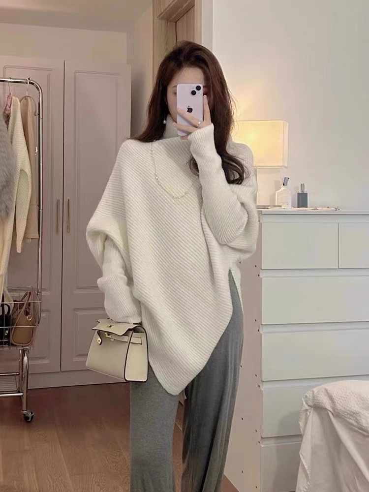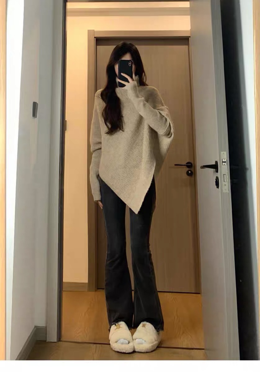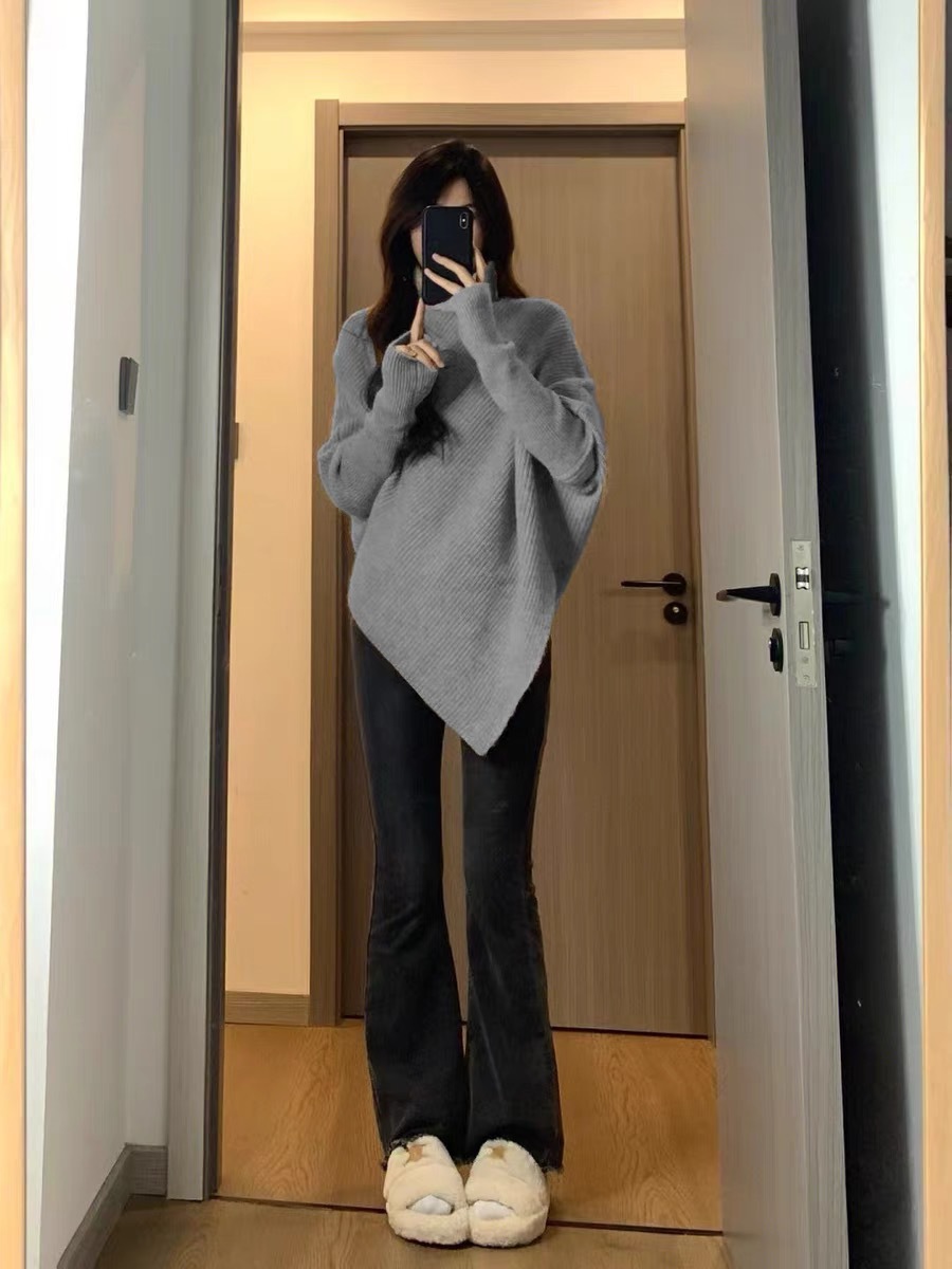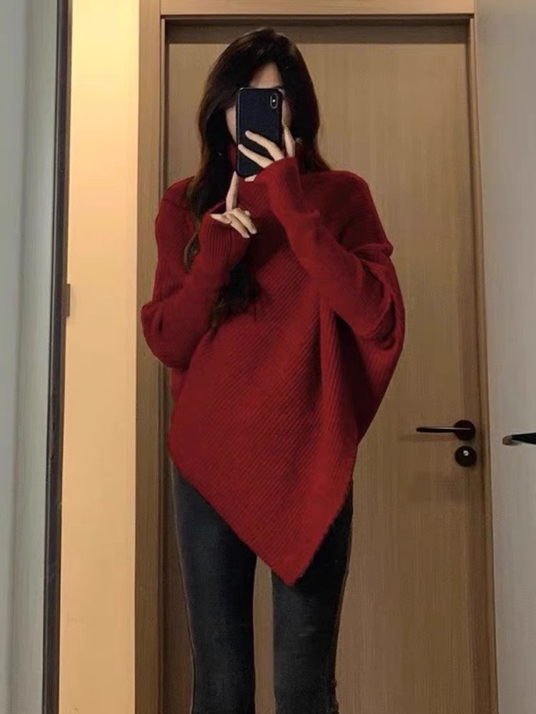 丁摩高领不规则小众100羊毛设计感毛衣女秋冬韩版宽松慵懒软糯上衣ALW2431