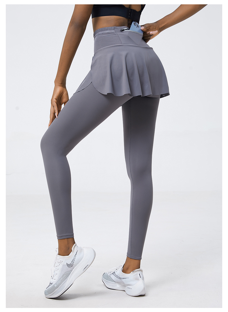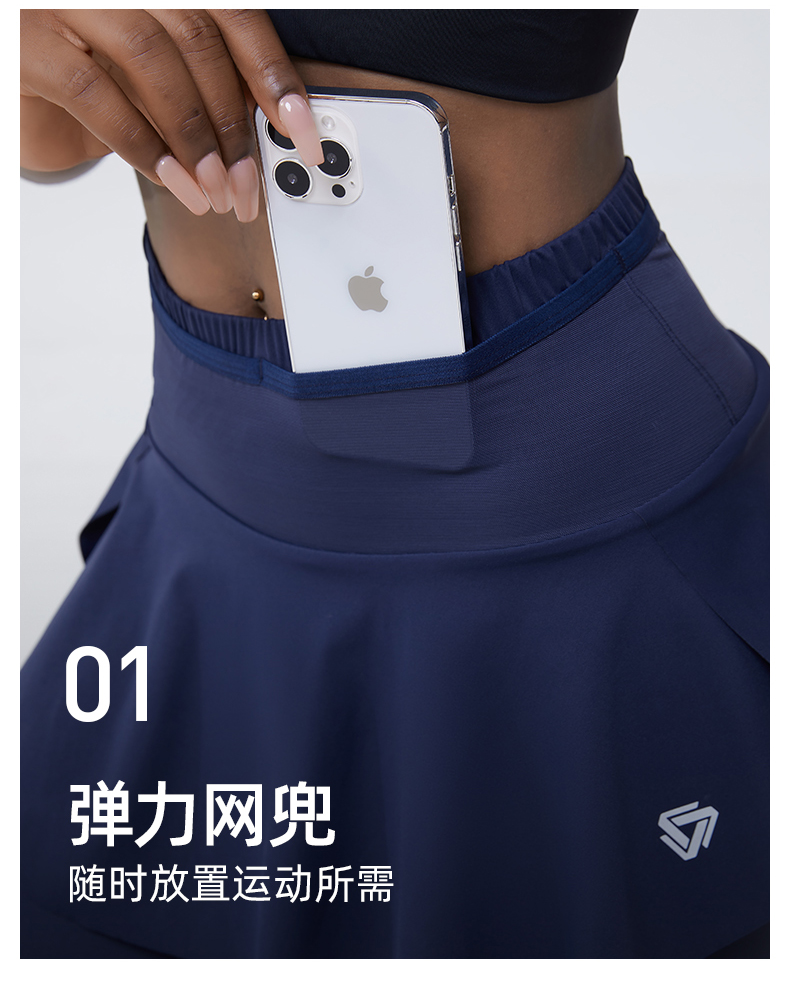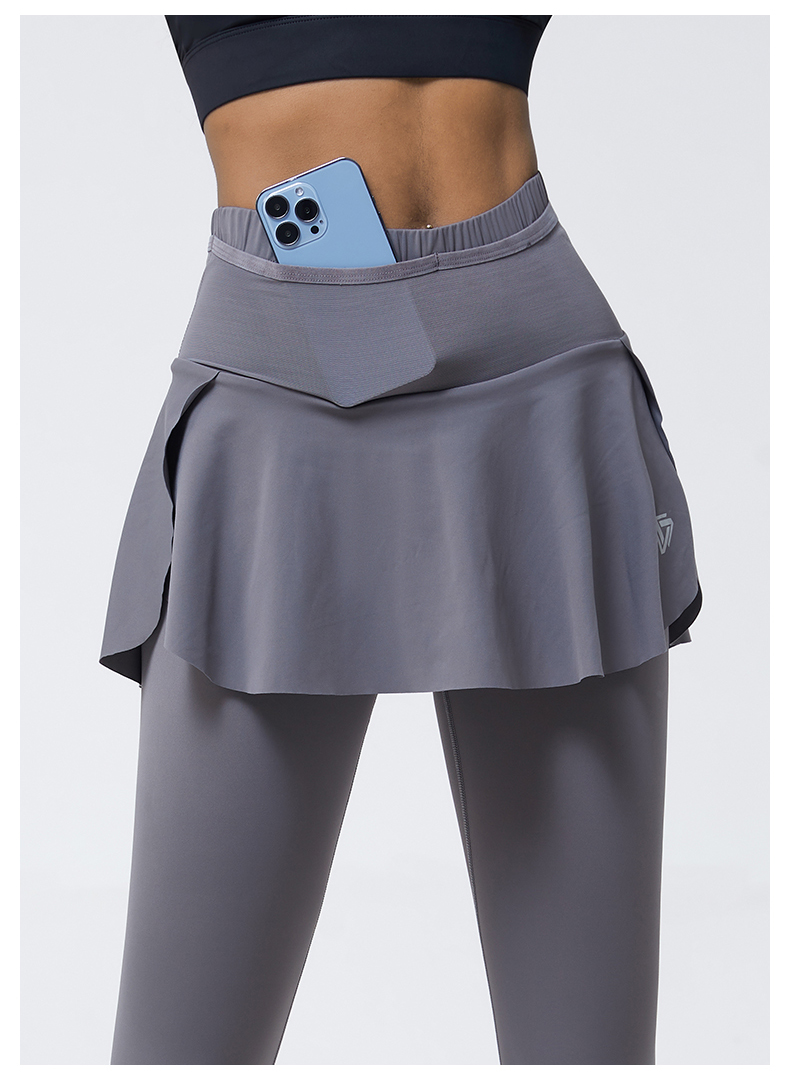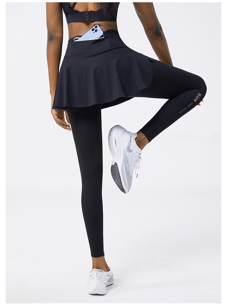 【热销】科里芙全腰围多口袋高腰假两件裙裤