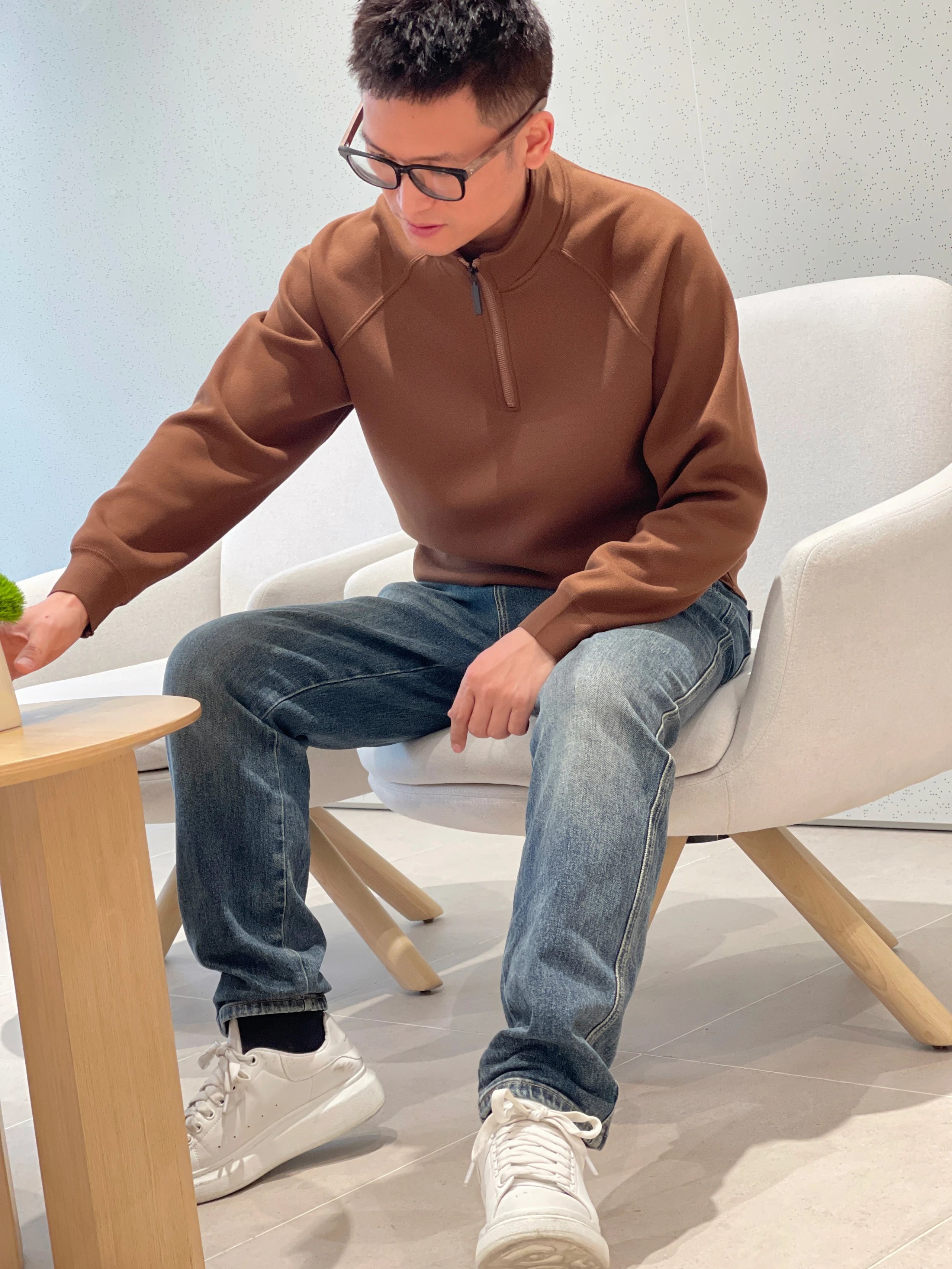 24冬款专柜上新品质chao好的男士加绒半拉链卫衣