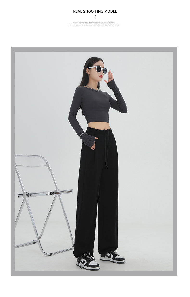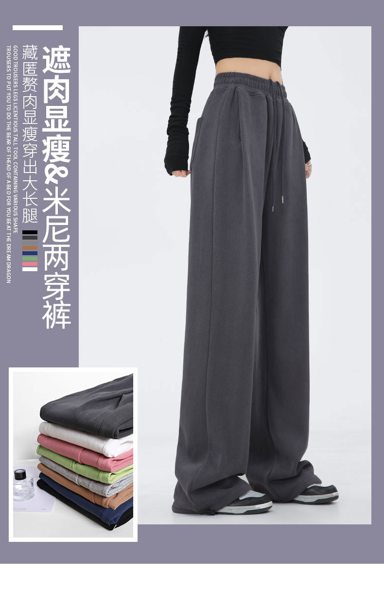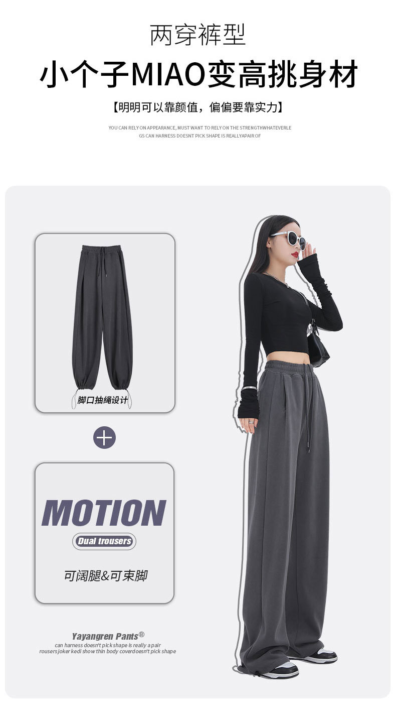 【美式束脚卫裤】2023新款宽松休闲阔腿裤 黑色运动裤女裤春秋季 一裤两穿潮流 显瘦两不误