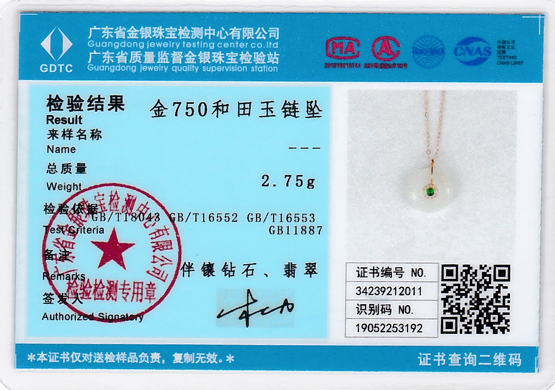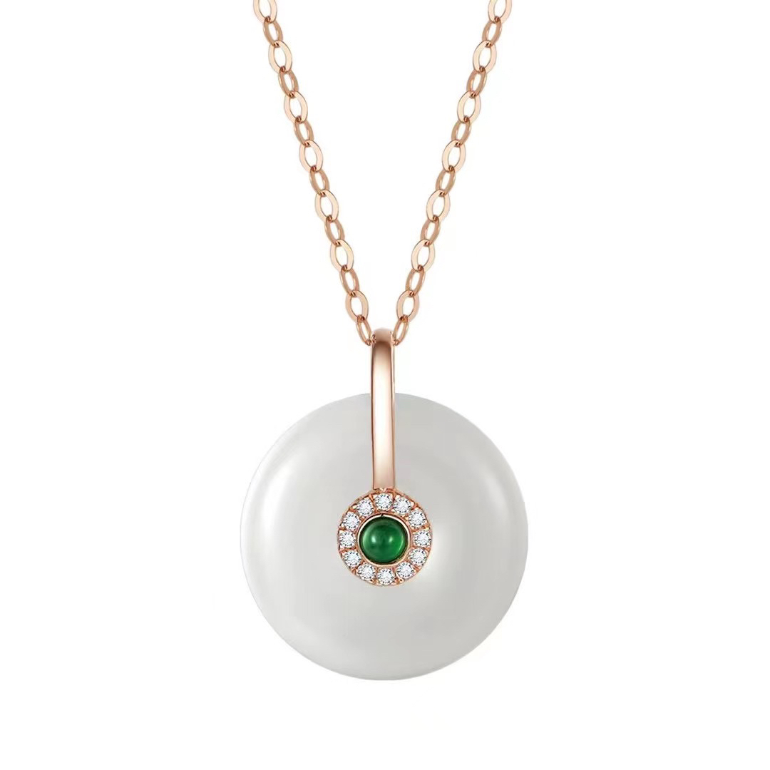 18k玫瑰金和田玉(白玉)项链