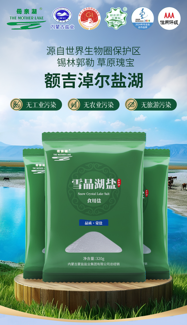 母亲湖草原湖盐 天然湖盐 (立袋)320g/袋【内蒙古盐业】