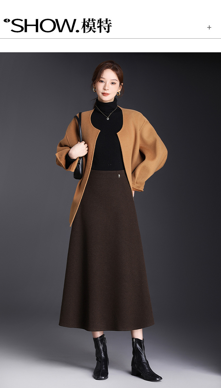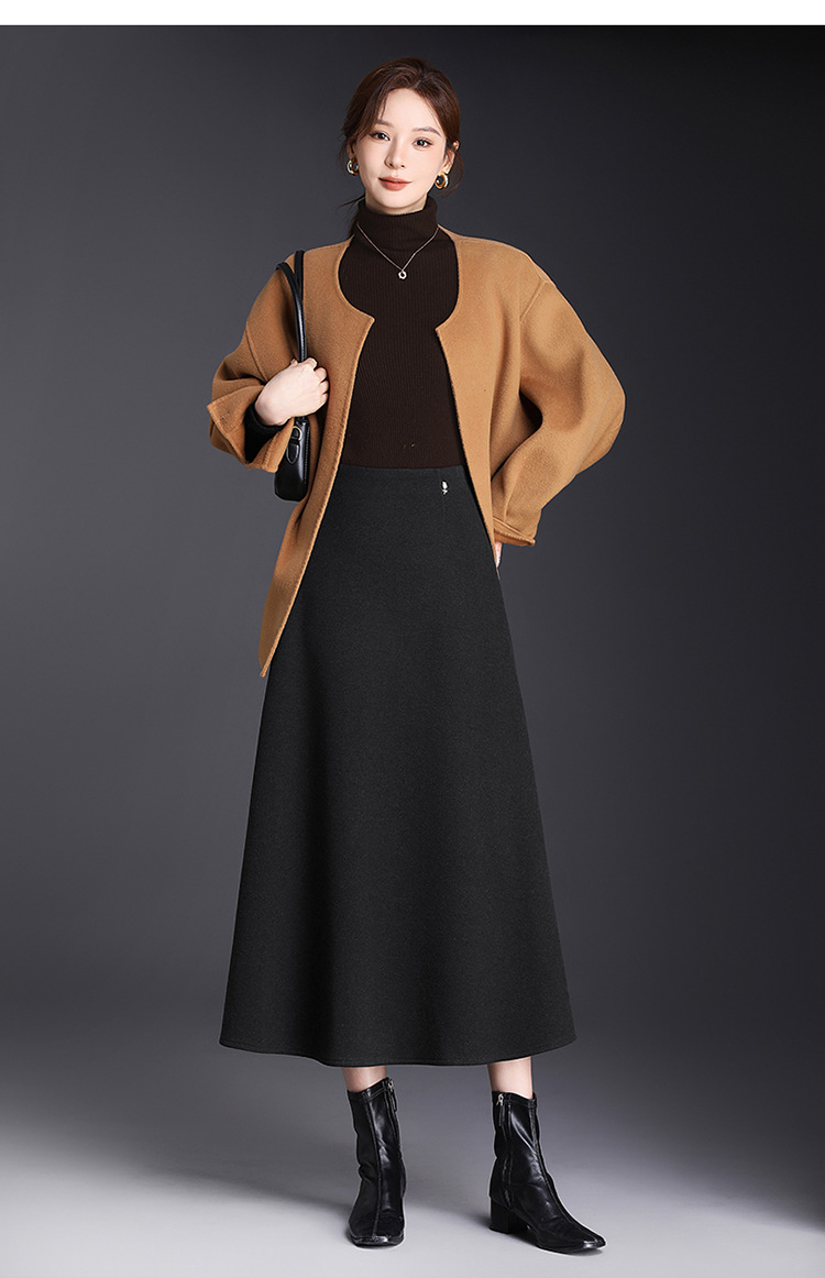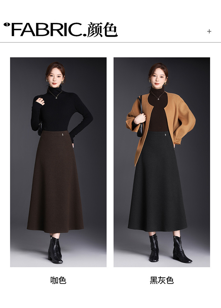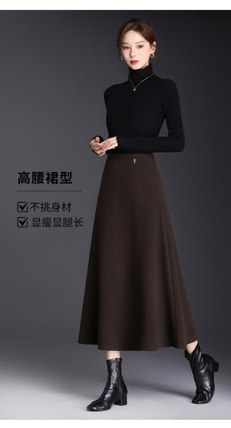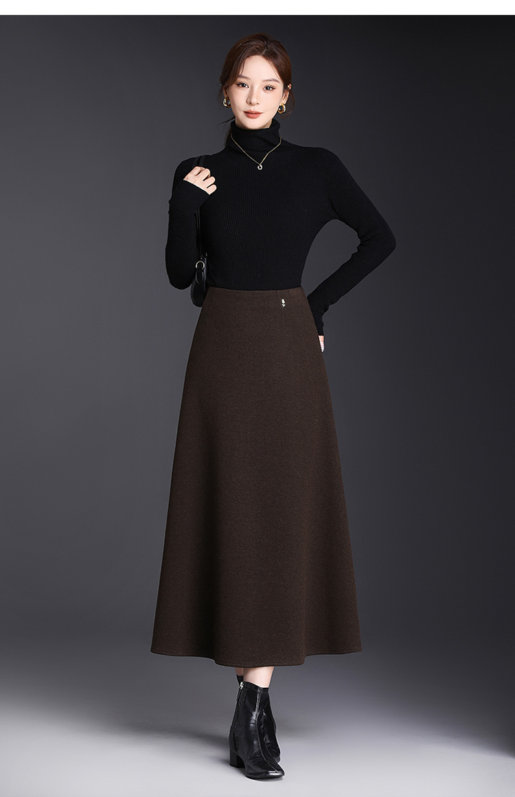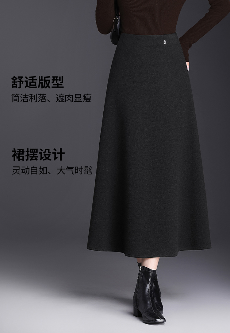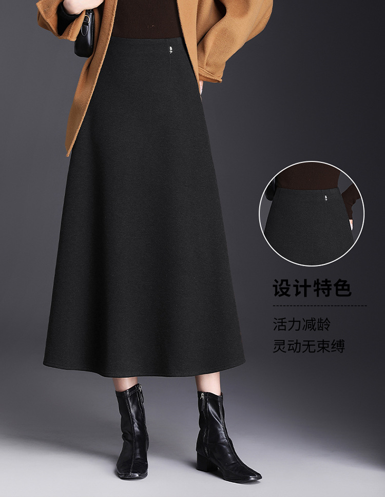 QYM M293-Y半身裙高腰中长款毛呢A字裙 商品图4