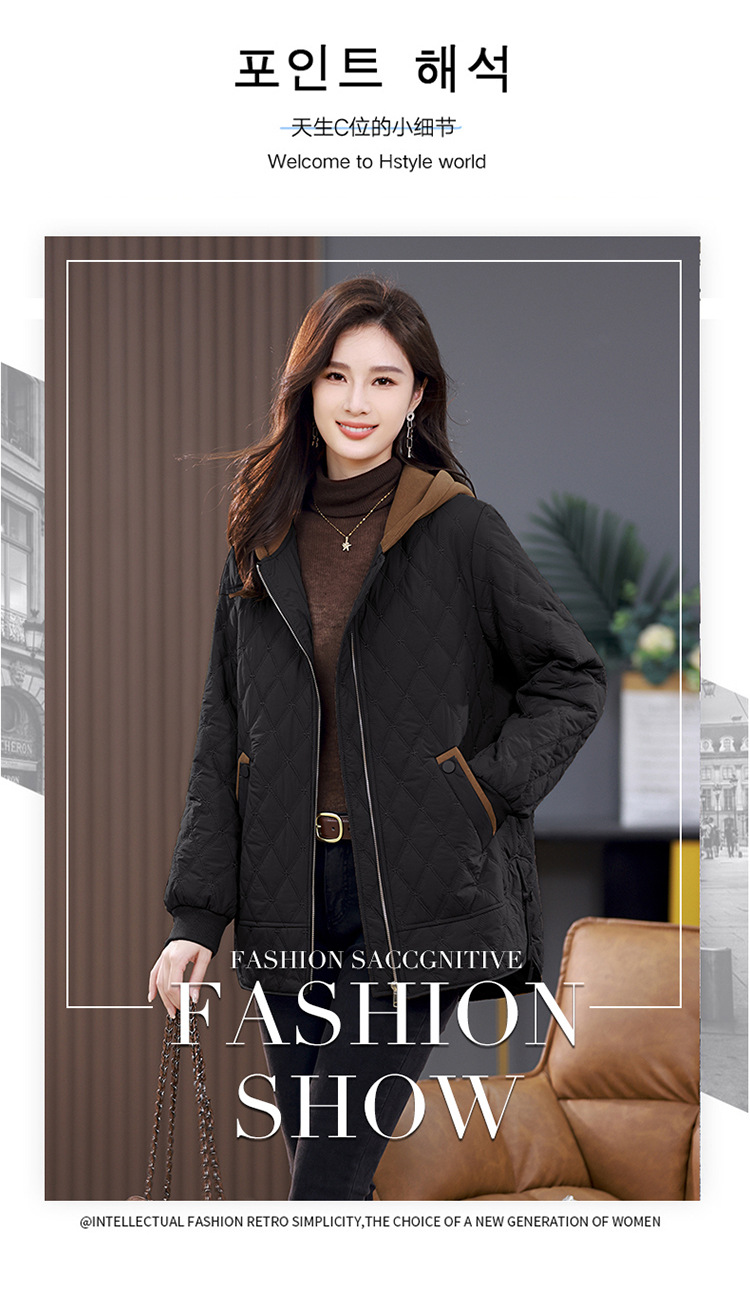 HR WJ23689气质时尚休闲百搭连帽减龄棉服外套 商品图2