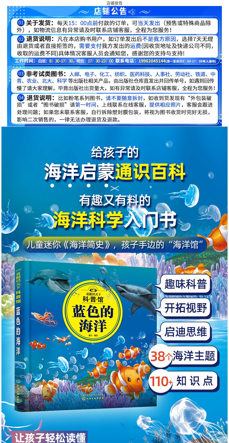 童眼识天下科普馆 蓝色的海洋 3-6-12岁儿童海洋知识启蒙百科 海洋科学启蒙入门书 迷你版海洋简史 海洋知识科普书 儿童课外科普书 无 化学工业出版社 9787122381255