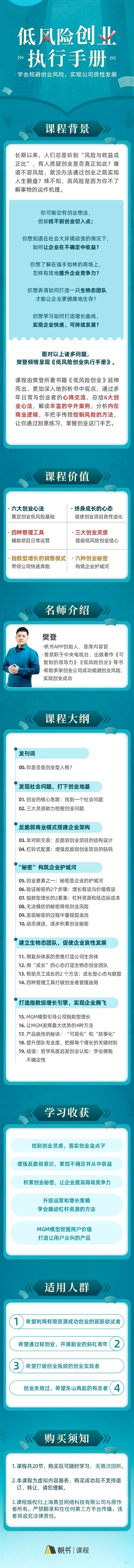 【课程】樊登亲授·低风险创业四大必修课