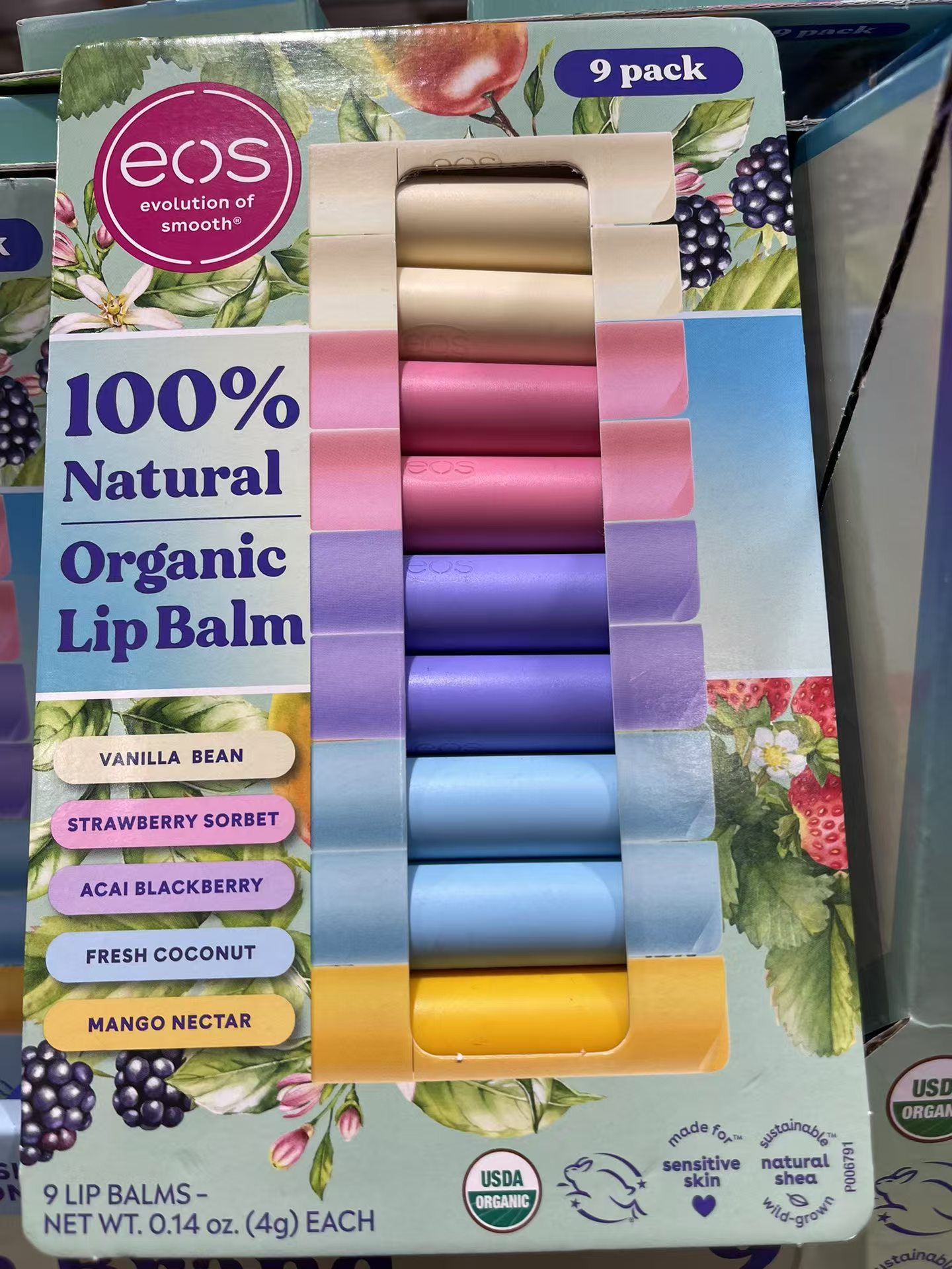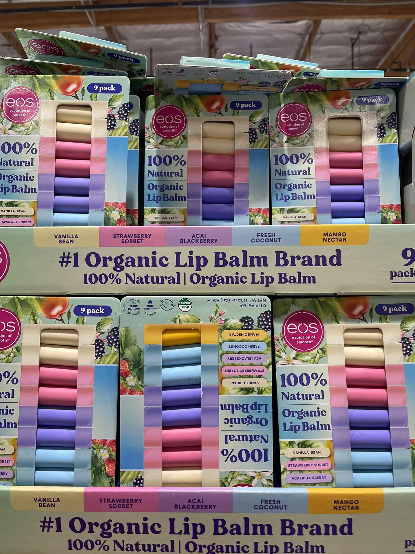 到手价169元 EOS果味天然保湿润唇膏9只装 有机 100%纯天然水果味 美国代购,无中文标签,介意慎拍