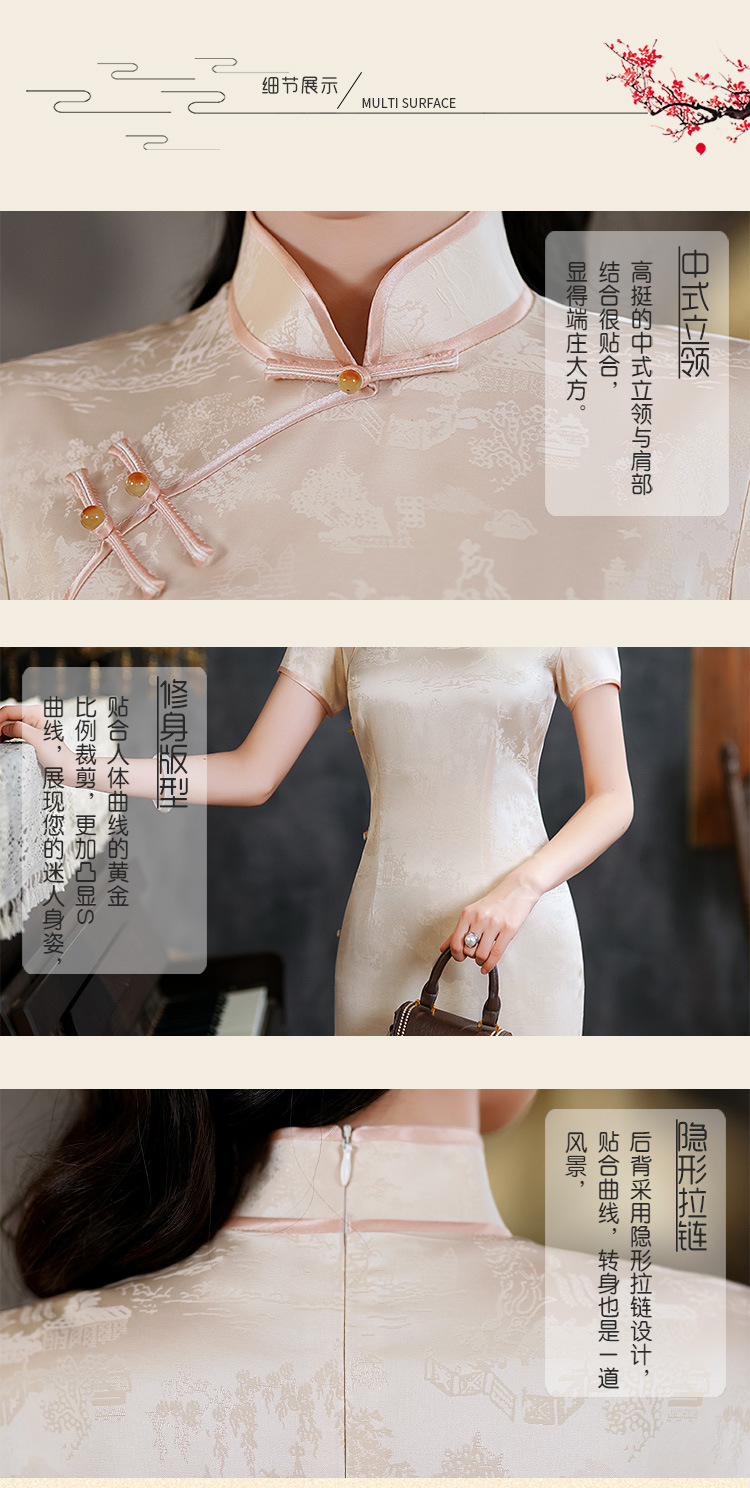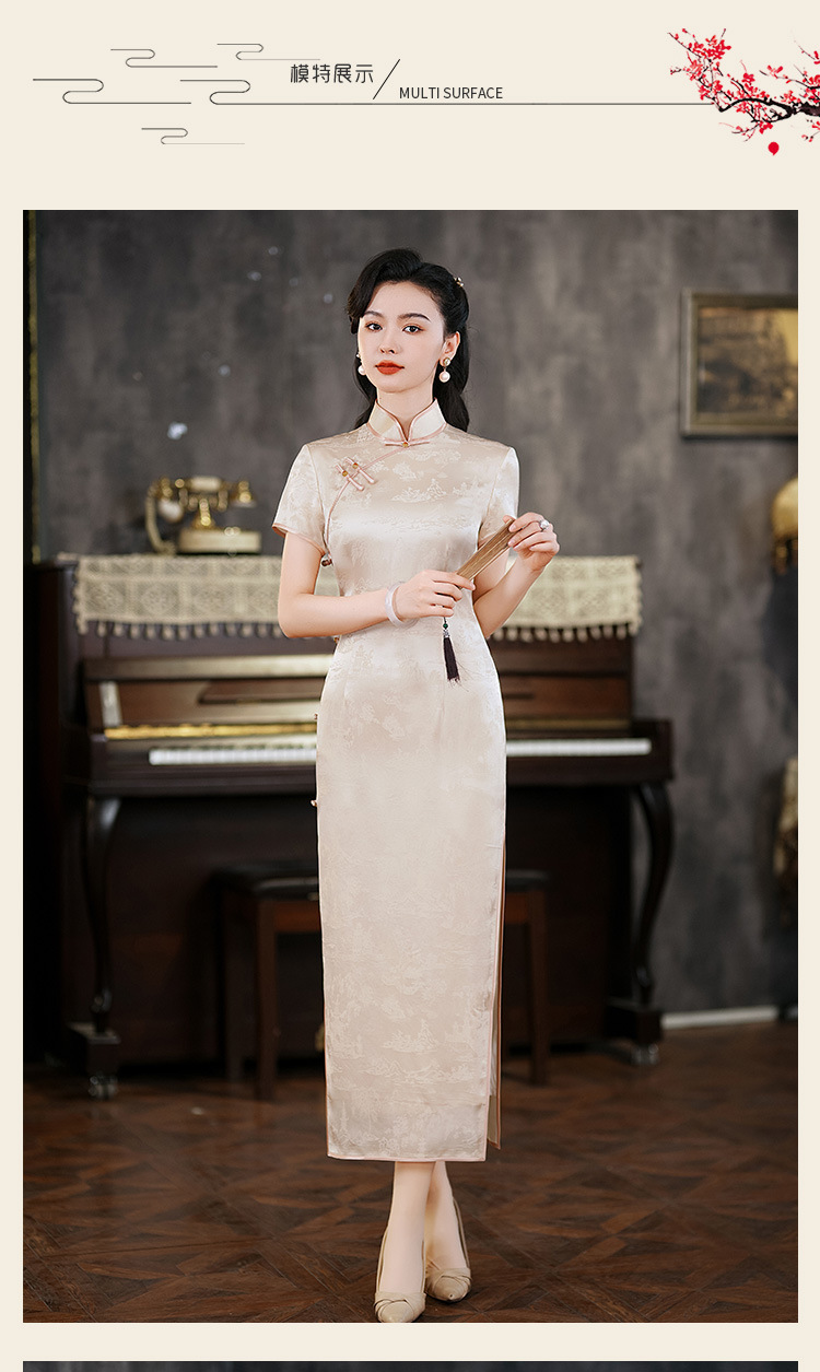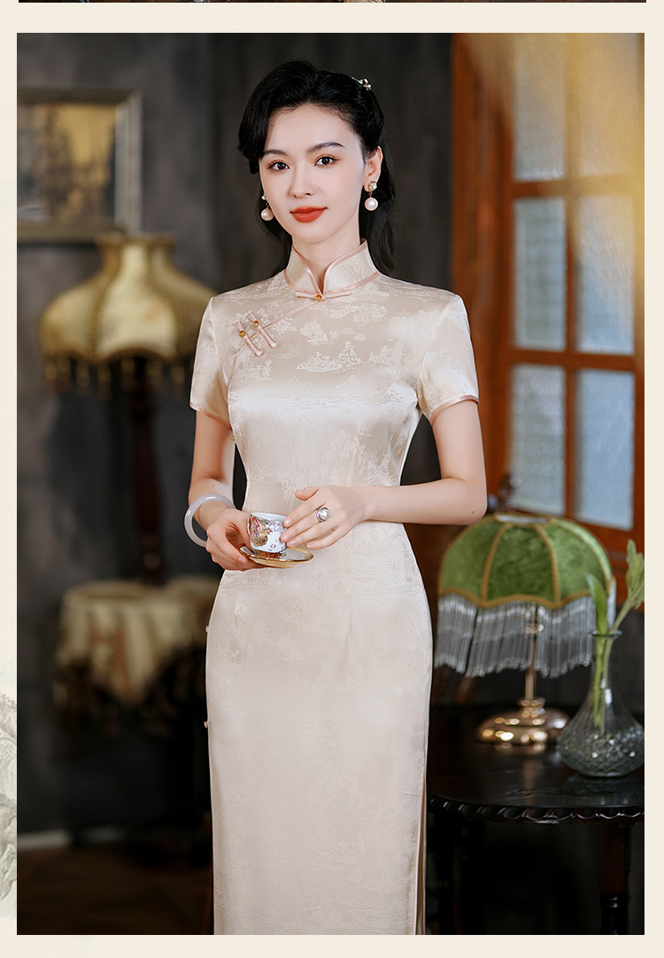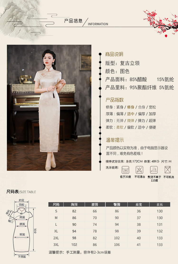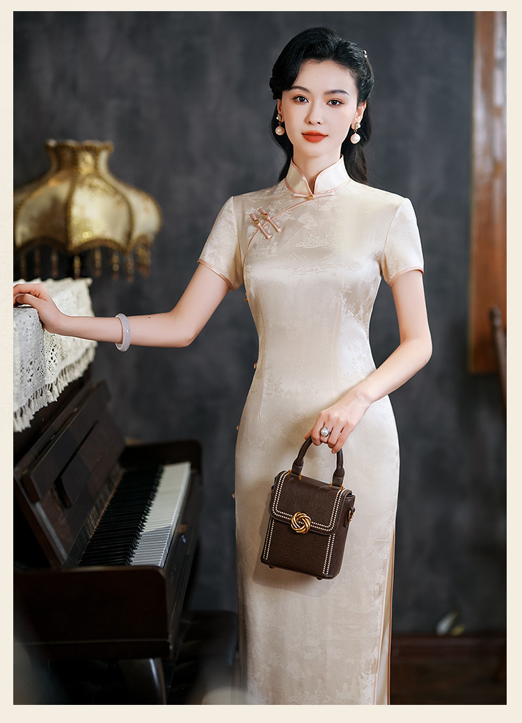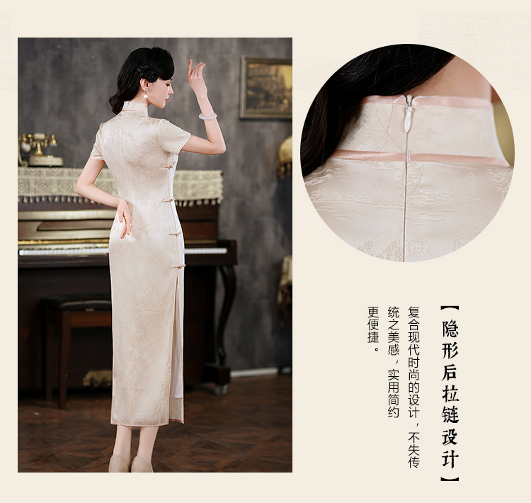 QXY醋酸旗袍长款2025季新款改良桑醋酸古时尚少女气质中国风连衣裙