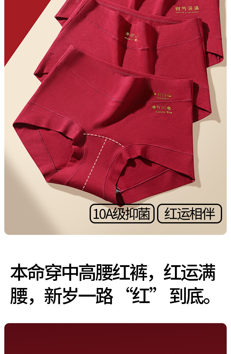 【本命年穿幸运红❗️福气步步来】红色平角内裤纯棉10A抗菌加长档2026新款本命马年收腹提臀三角裤。jc