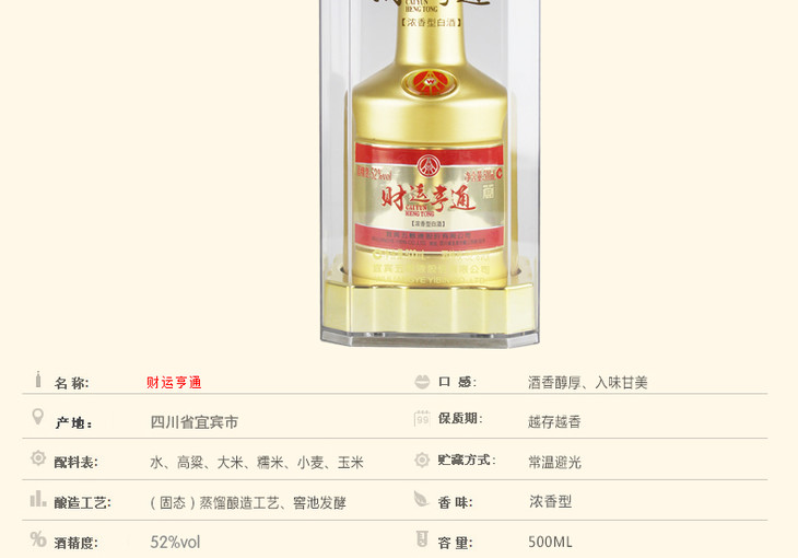 【推荐】清仓 宜宾五粮液股份 财运亨通酒 浓香型 52度 500ml 单瓶装