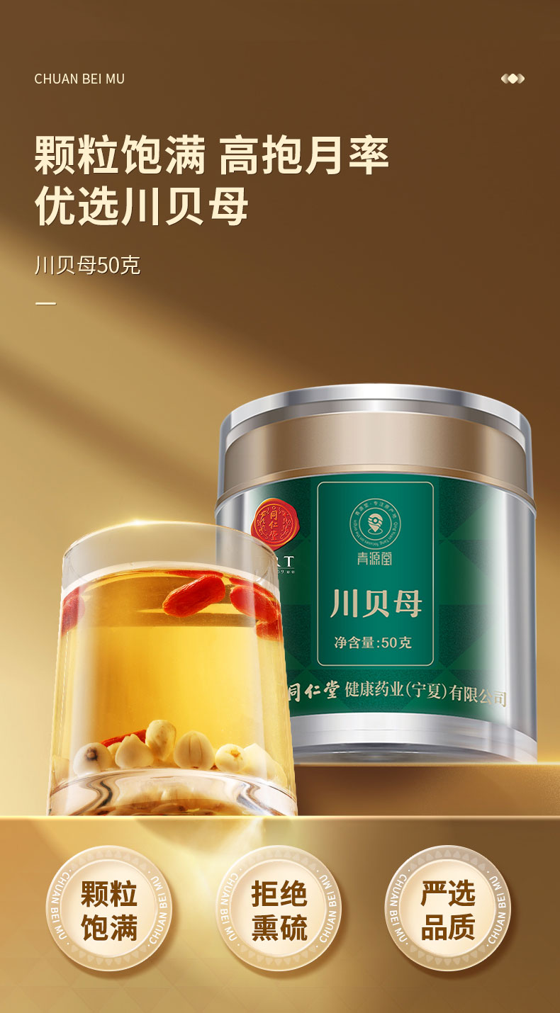 【正宗同仁堂品牌】北京同仁堂 青源堂 川贝50克 口感醇厚 入口微苦回甘 颗粒饱满 形态完整SY