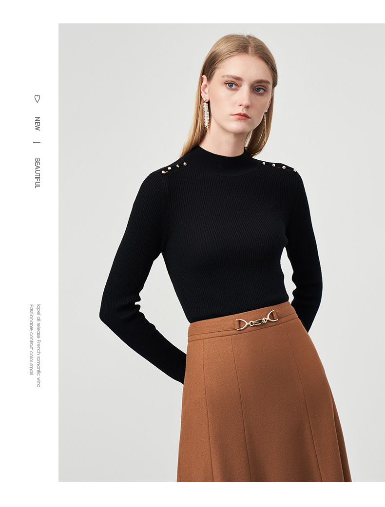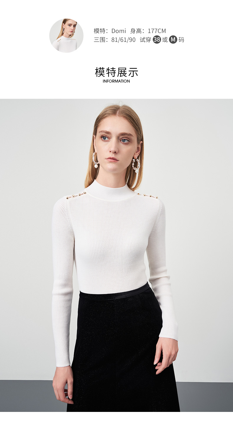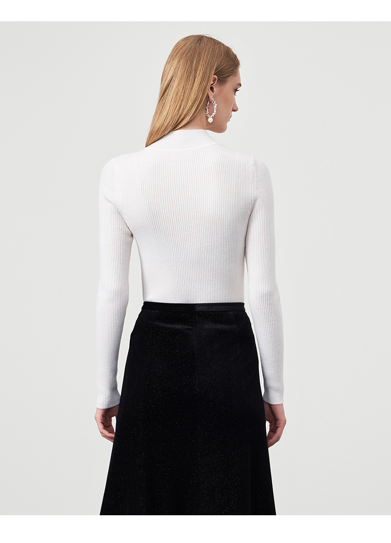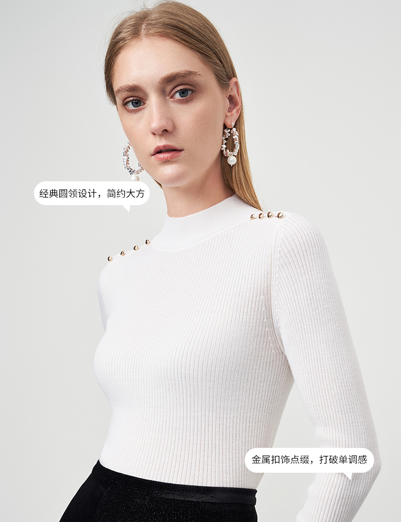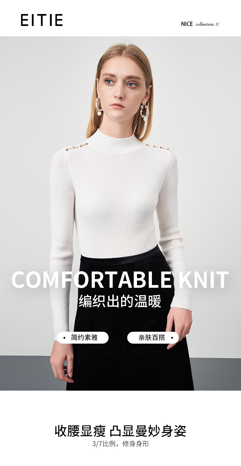 EITIE爱特爱秋新款100%绵羊毛小立领套头纯色薄款打底基础款修身针织衫C2201008