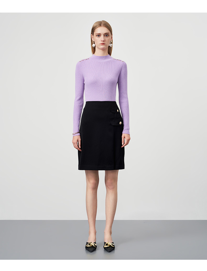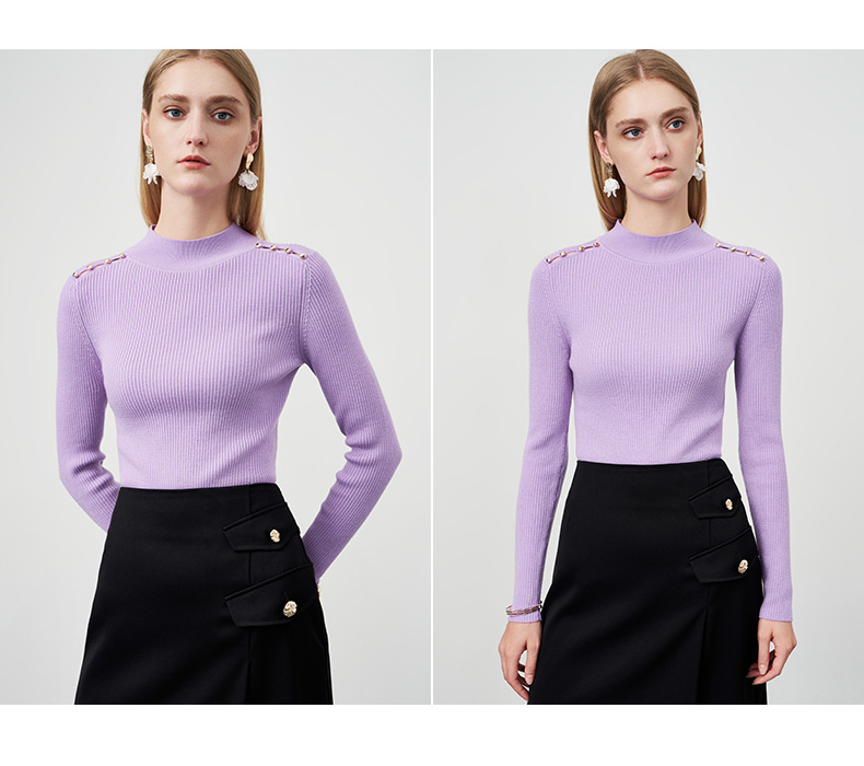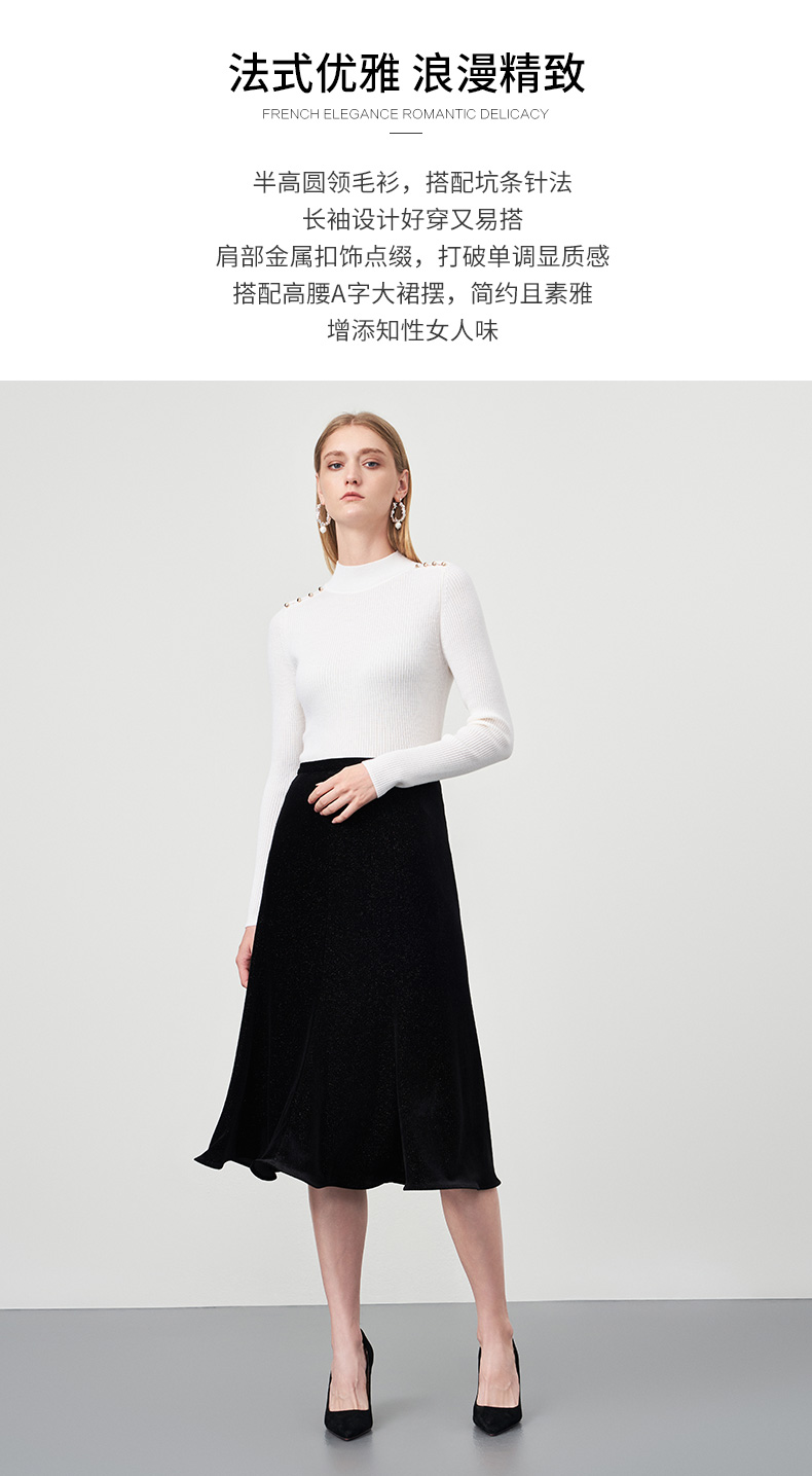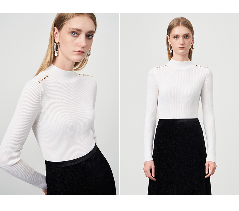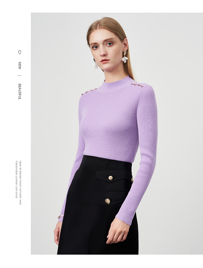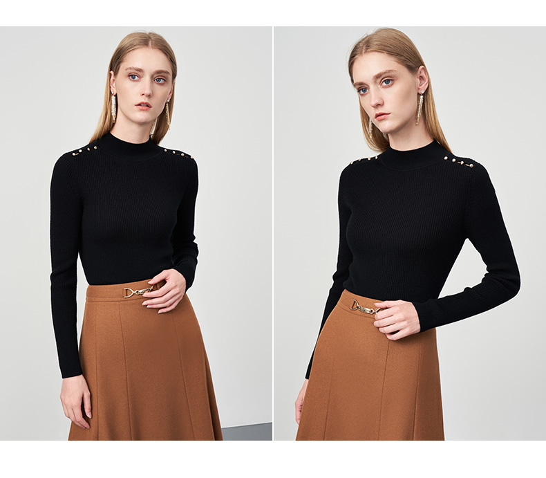 EITIE爱特爱秋新款100%绵羊毛小立领套头纯色薄款打底基础款修身针织衫C2201008