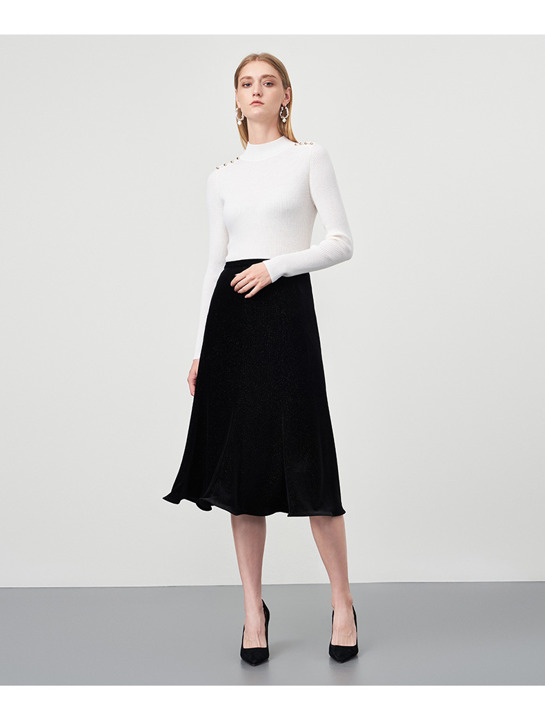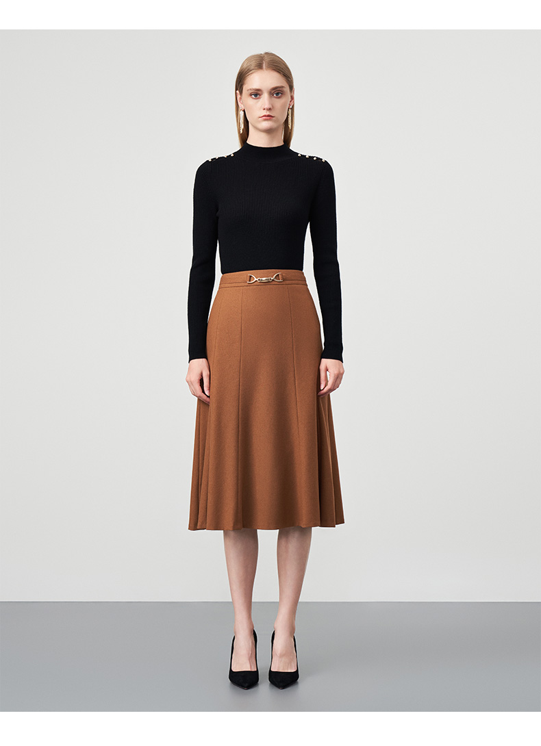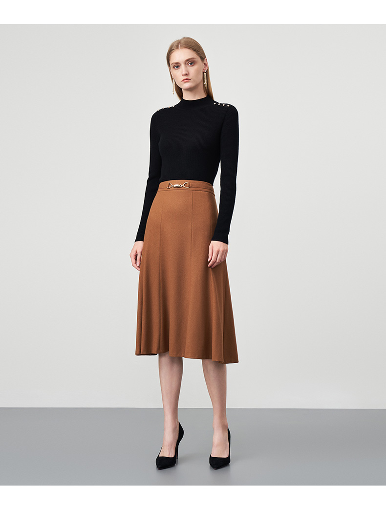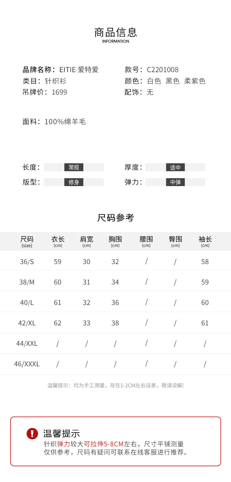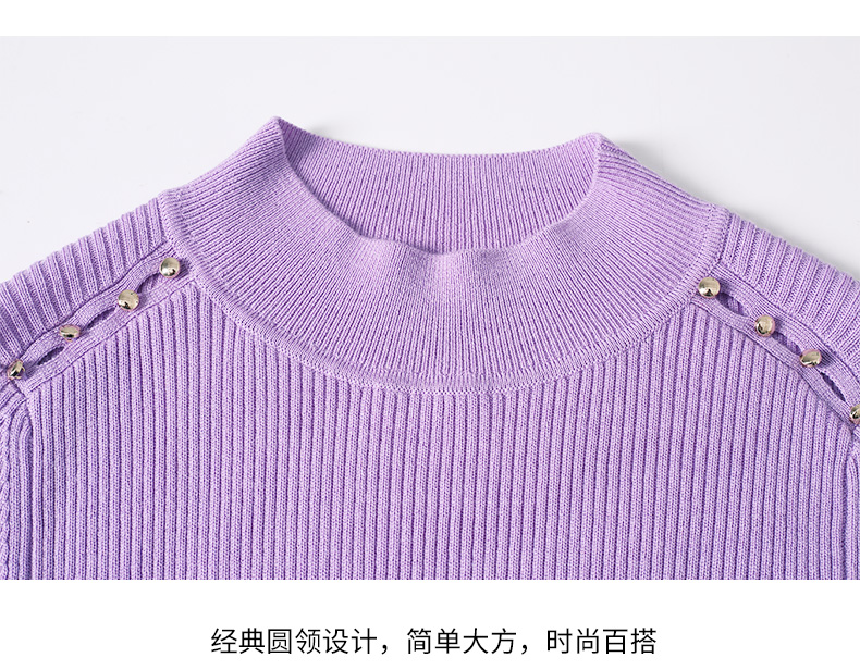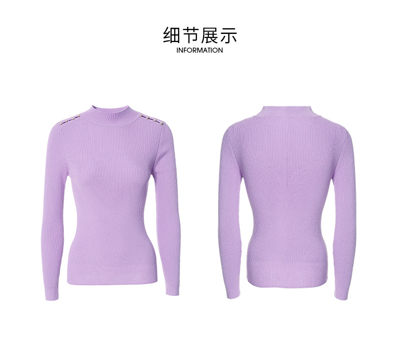 EITIE爱特爱秋新款100%绵羊毛小立领套头纯色薄款打底基础款修身针织衫C2201008
