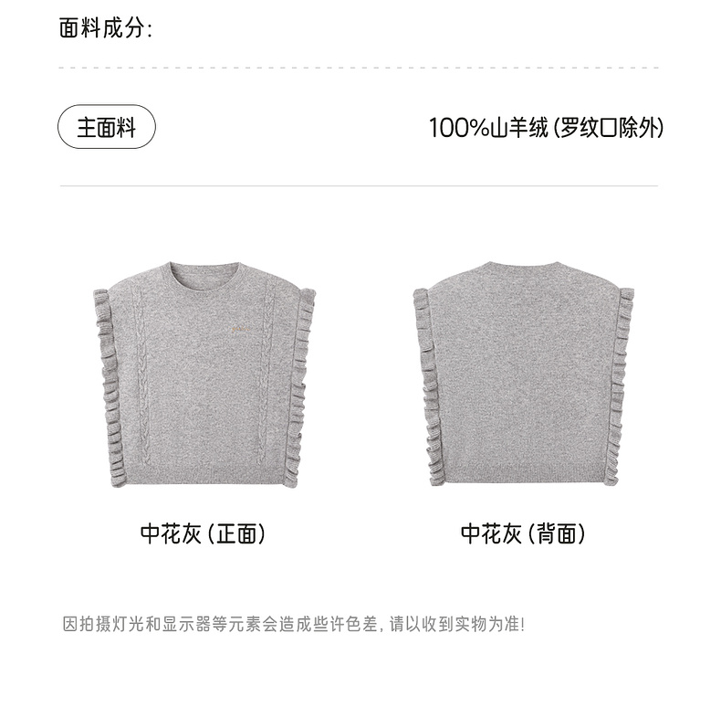 英氏【100%山羊绒】儿童毛衣羊绒衫时尚复古针织衫山羊绒保暖御寒女孩秋冬新款