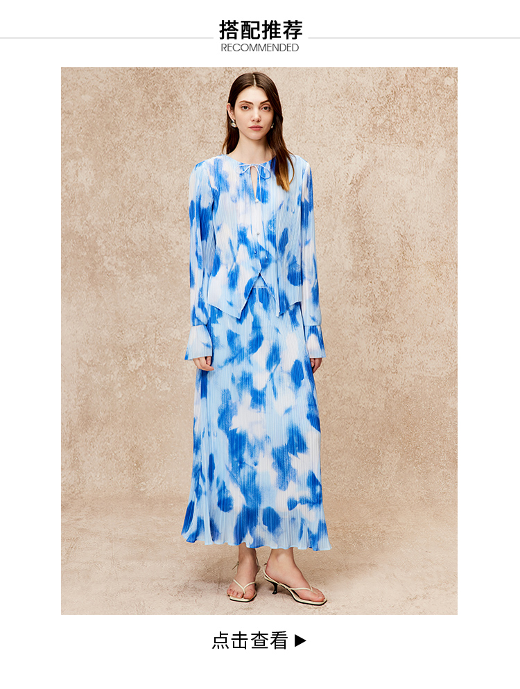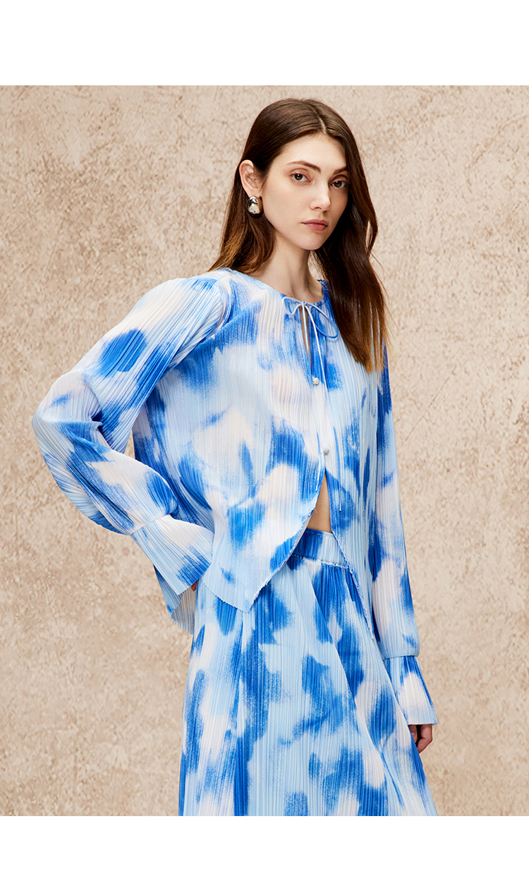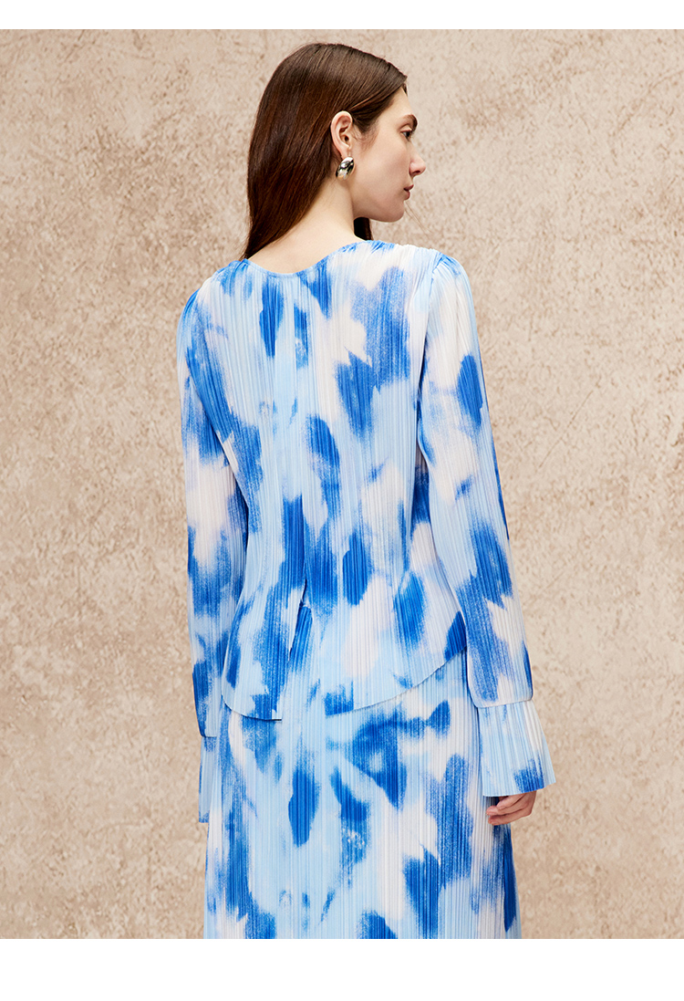 VIMAGE纬漫纪秋季新款气质显瘦直筒印花垂坠印花上衣女V2213801
