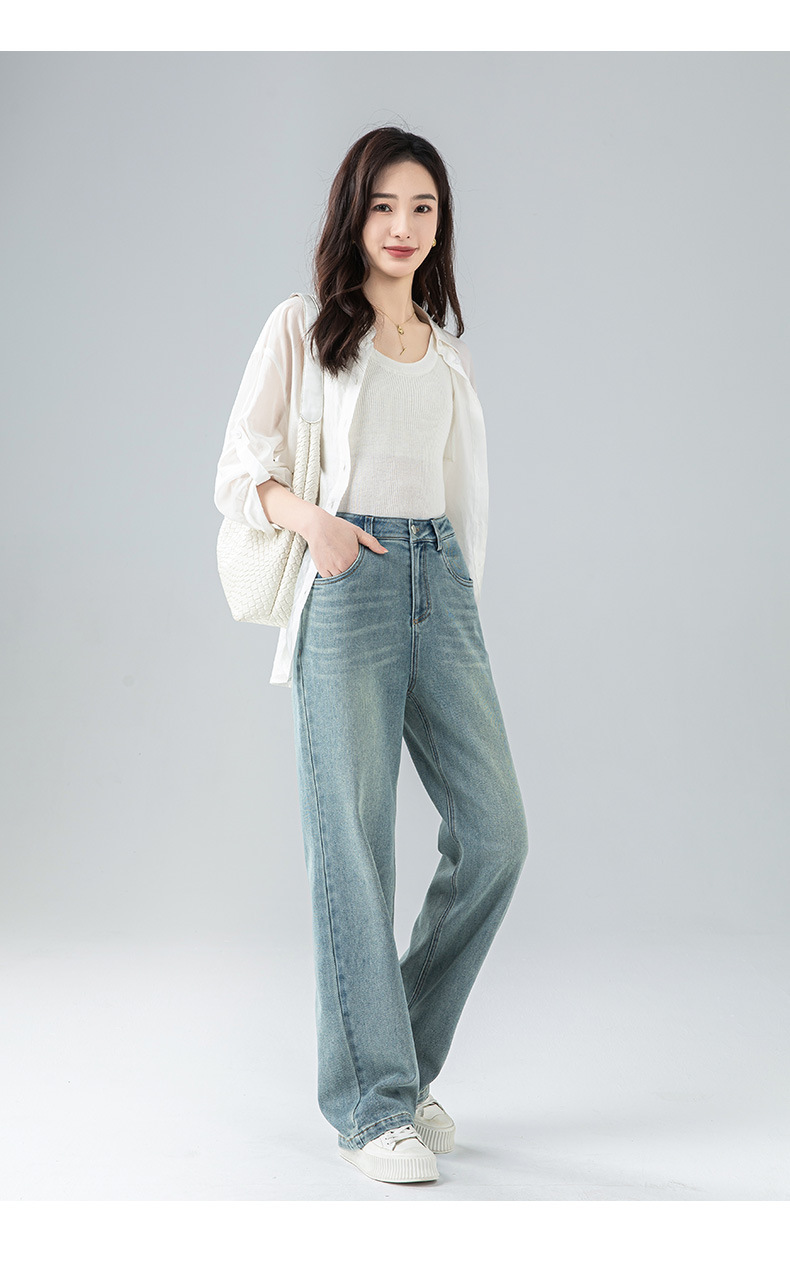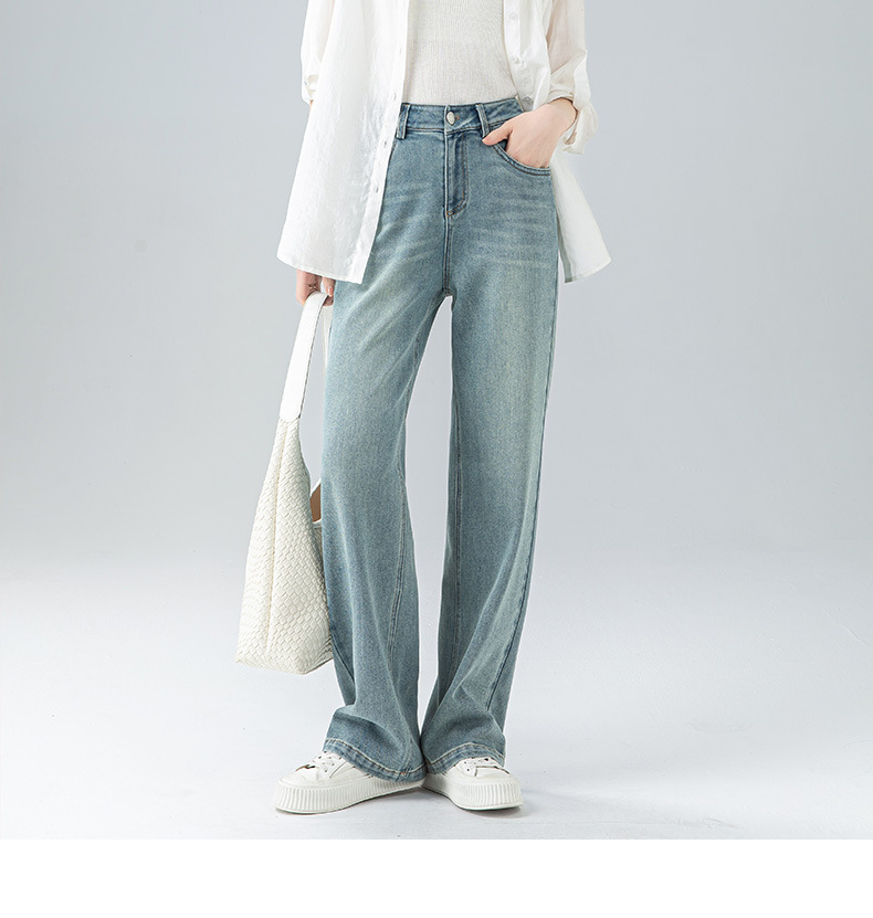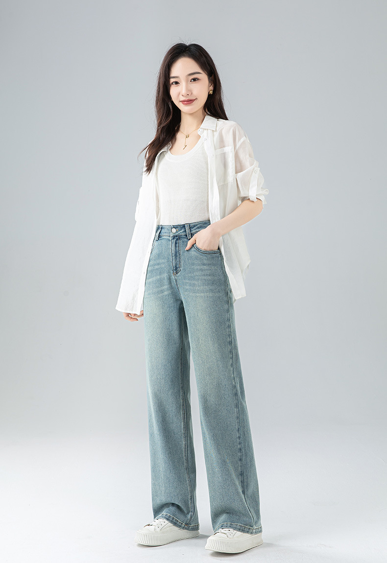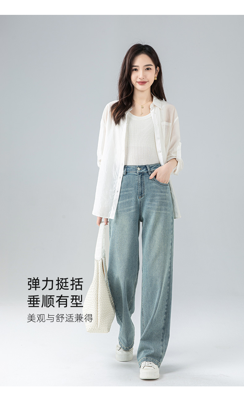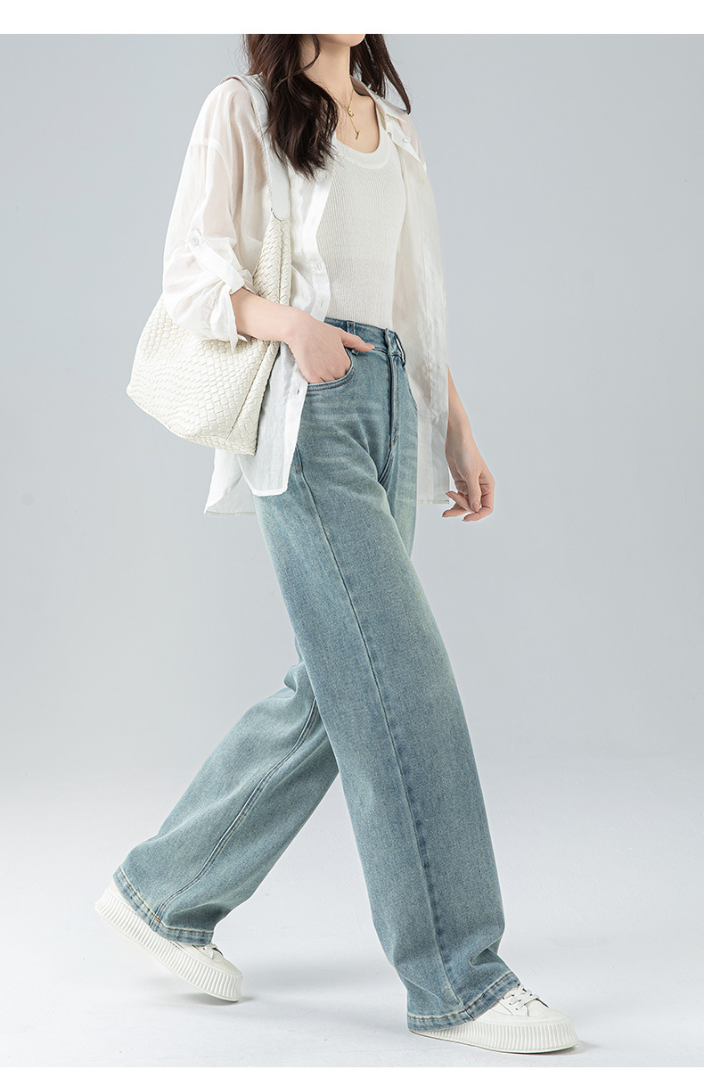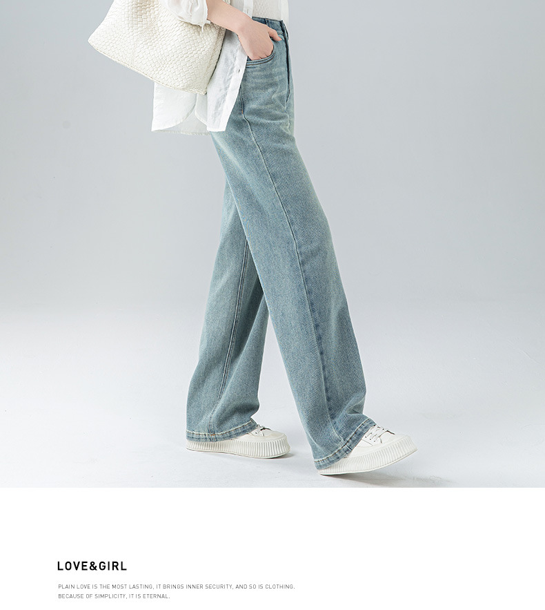 丁摩 浅蓝色复古阔腿牛仔裤女春季新款高腰显瘦窄版直筒拖地裤5ZF-22406