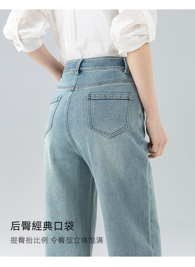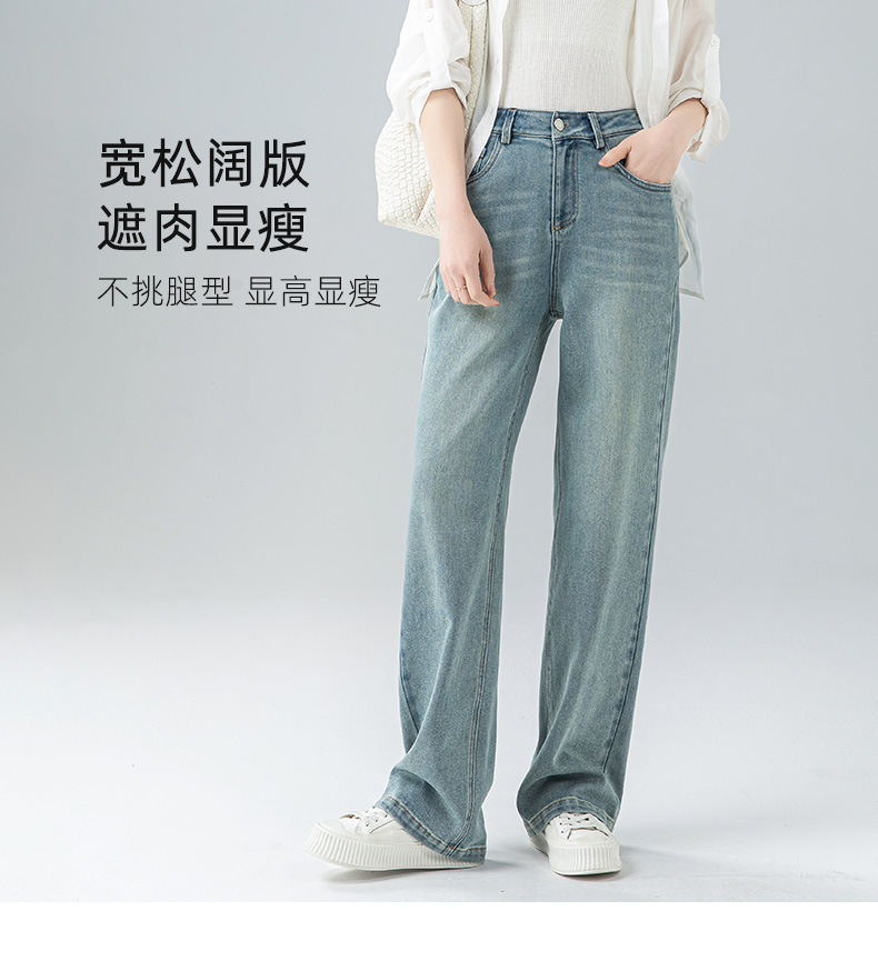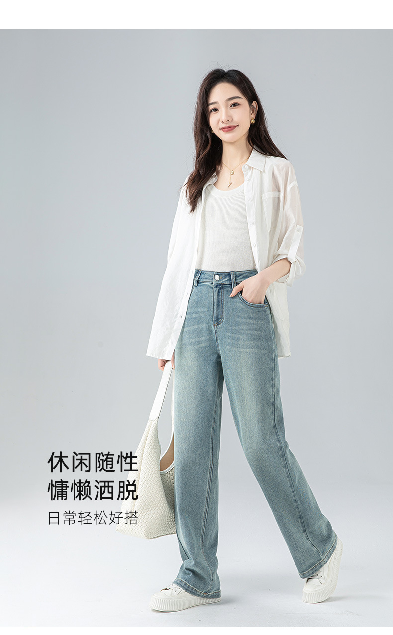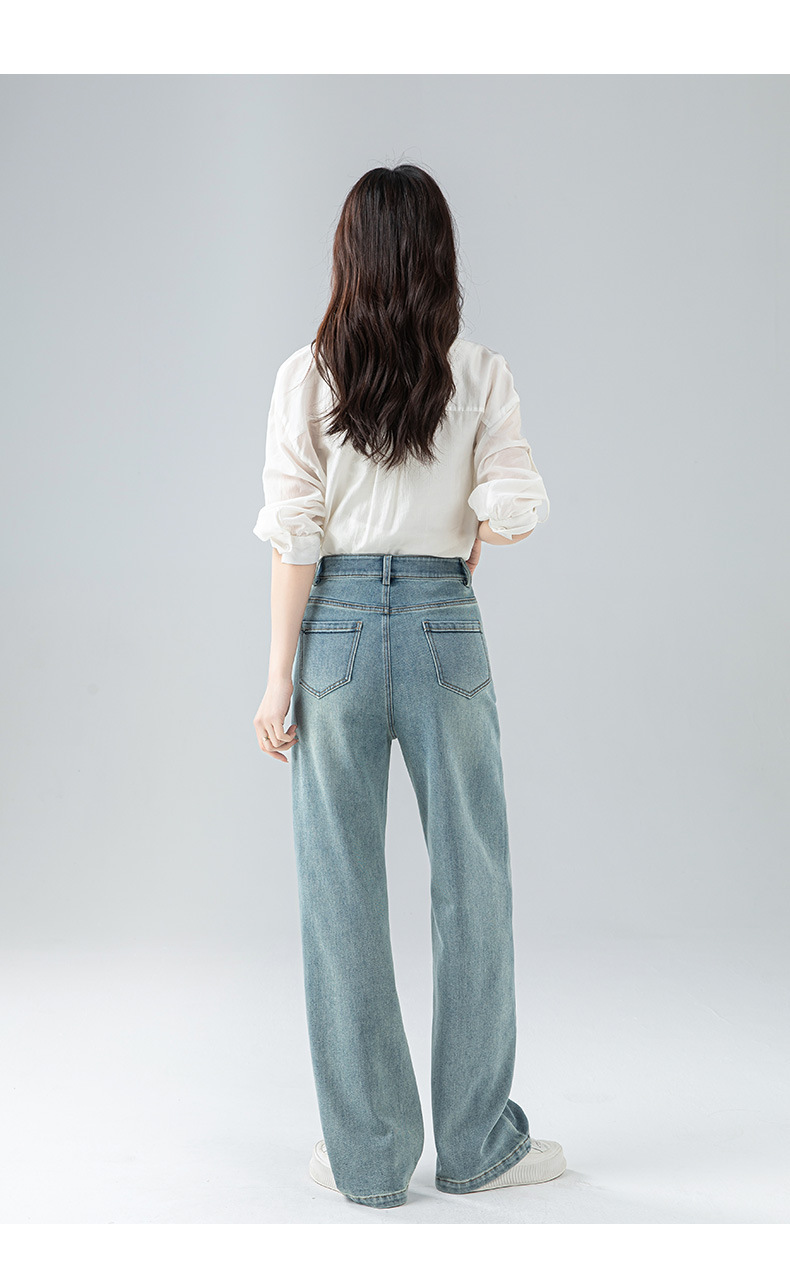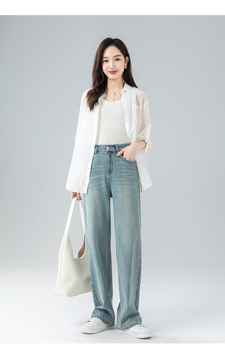 丁摩 浅蓝色复古阔腿牛仔裤女春季新款高腰显瘦窄版直筒拖地裤5ZF-22406