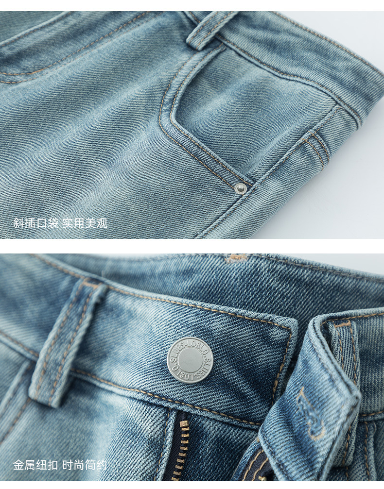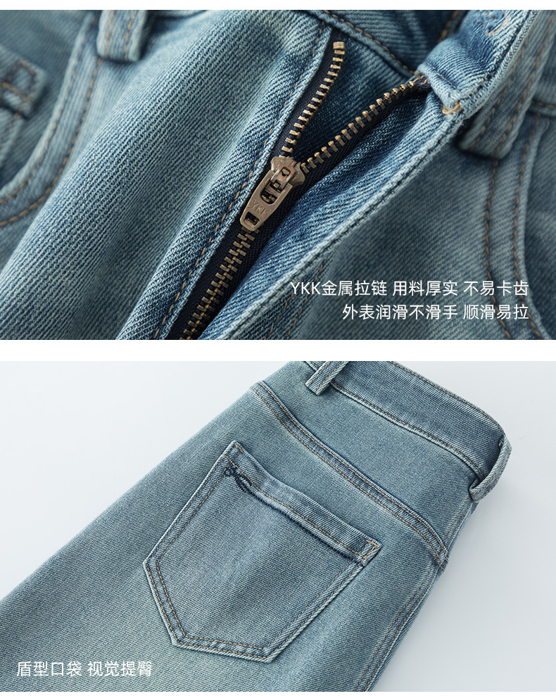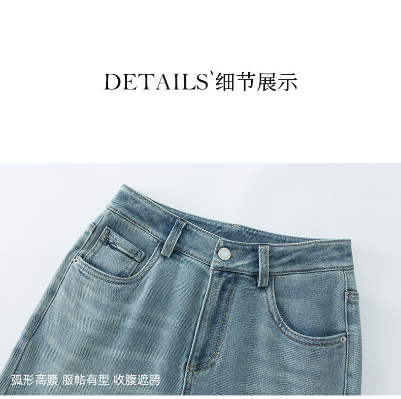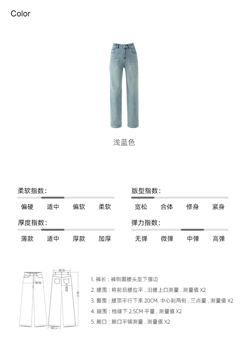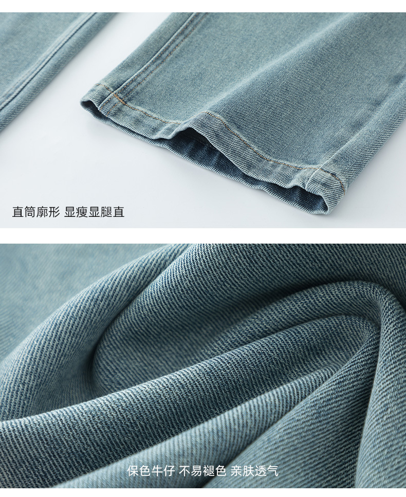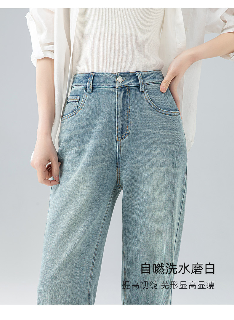 丁摩 浅蓝色复古阔腿牛仔裤女春季新款高腰显瘦窄版直筒拖地裤5ZF-22406
