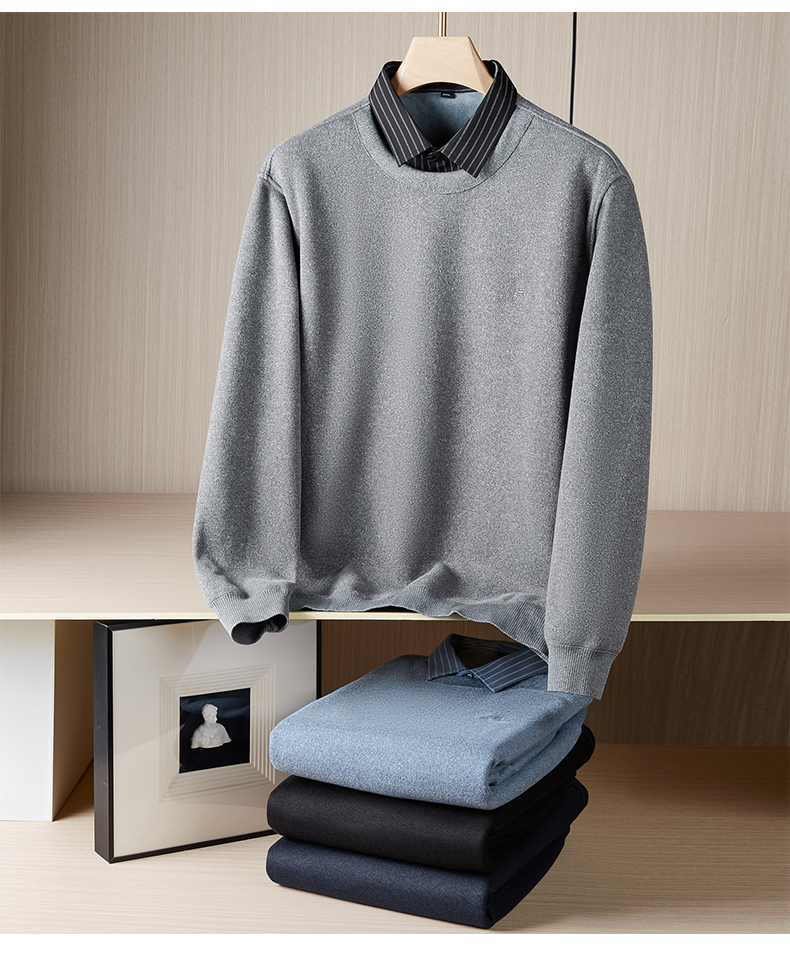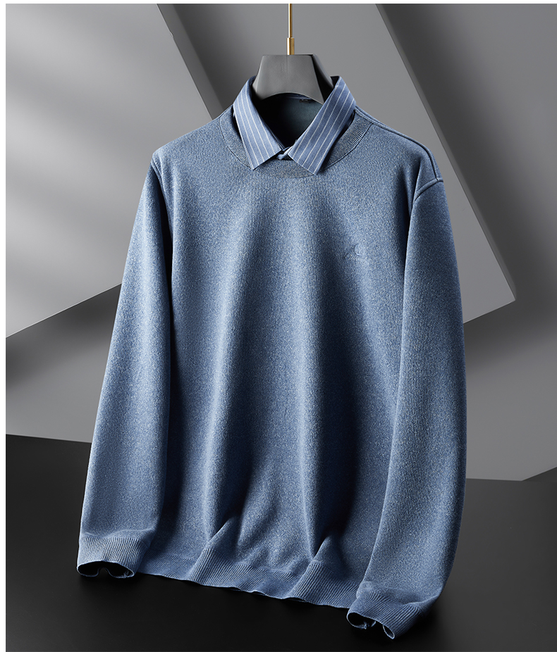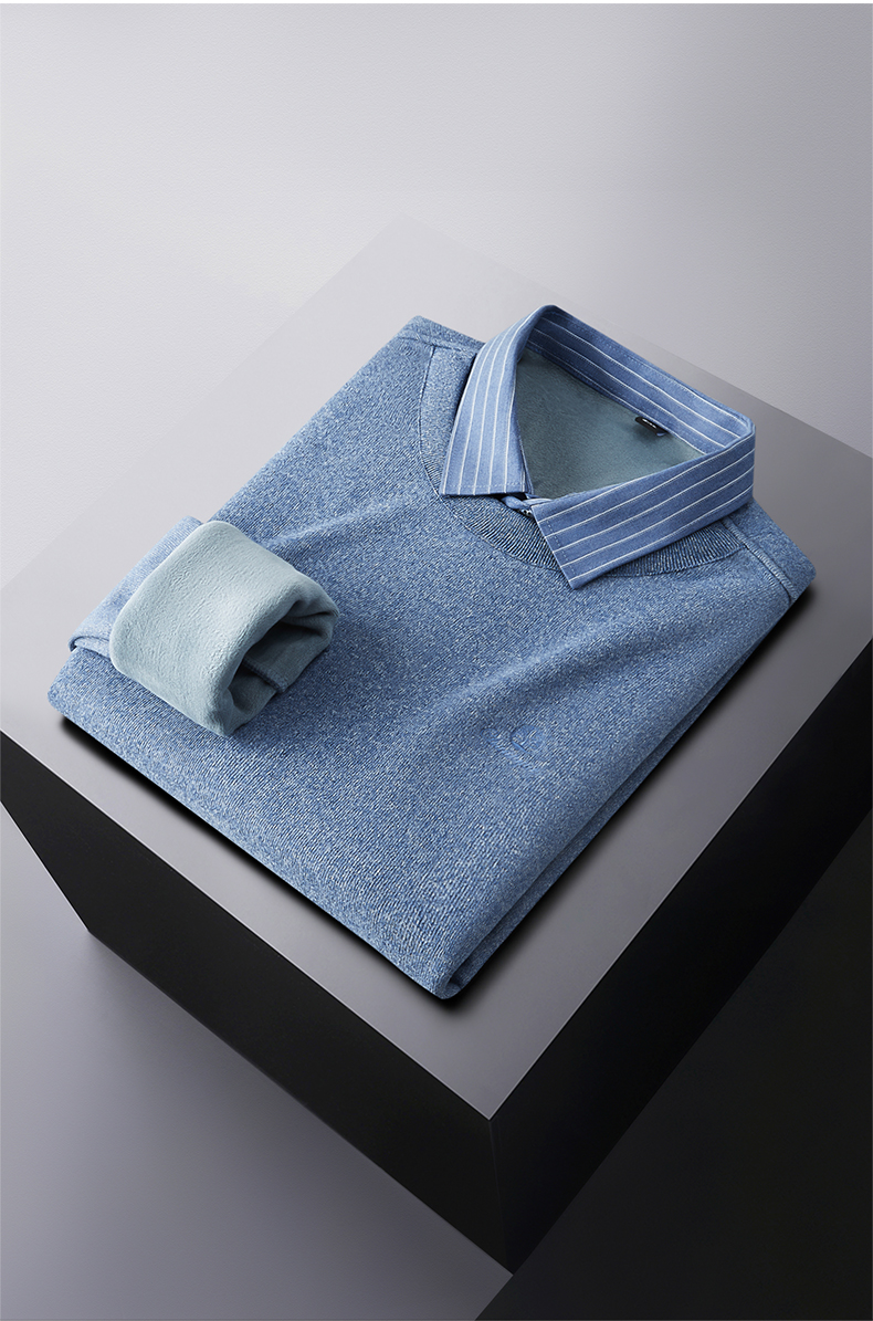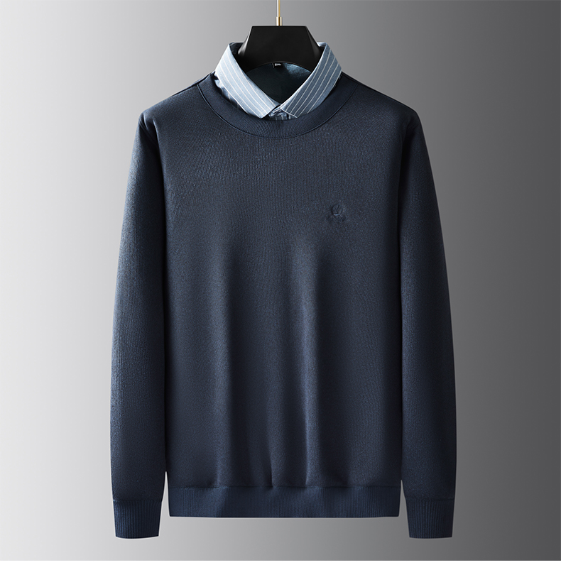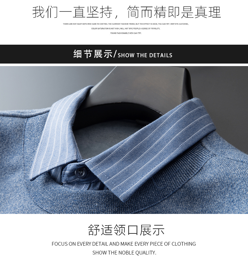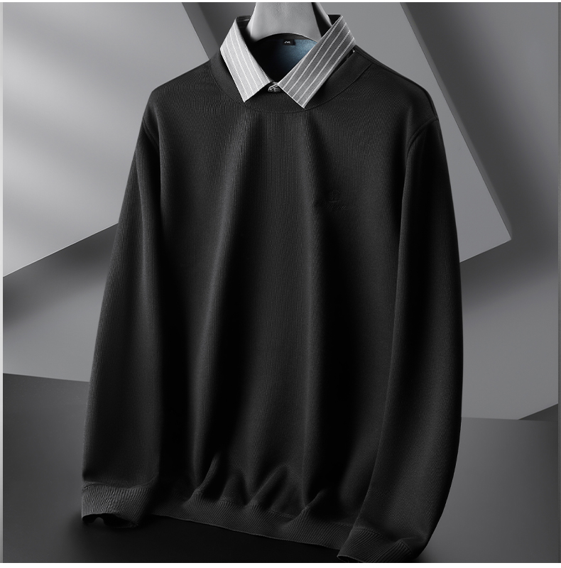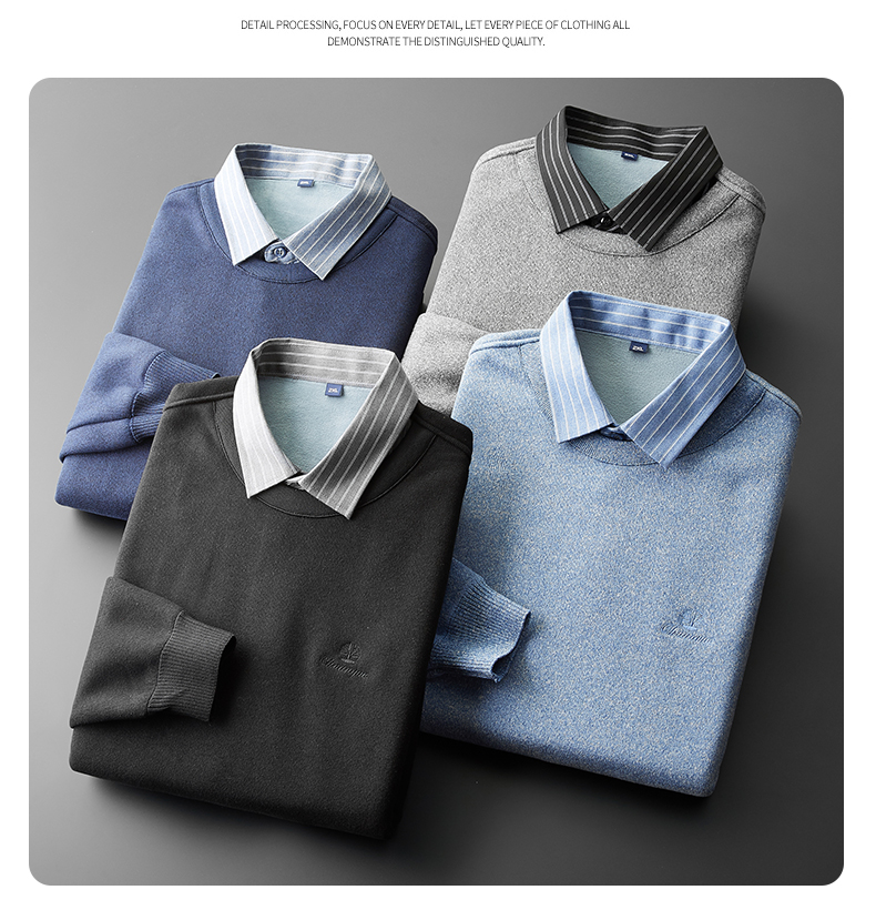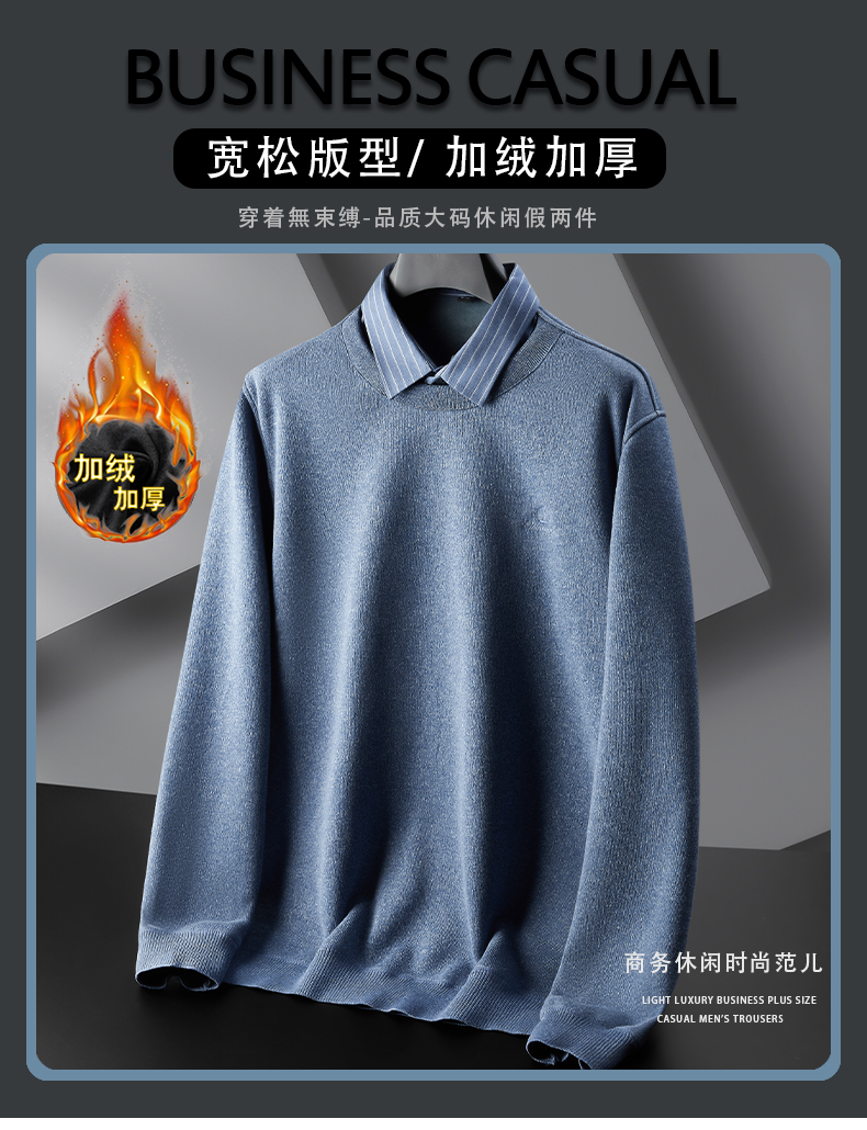 【加绒假两件】【新款DDP】大依优型大码加绒长袖Polo衫假两件弹力加肥加大胖子上衣男士T恤肥佬打底男装