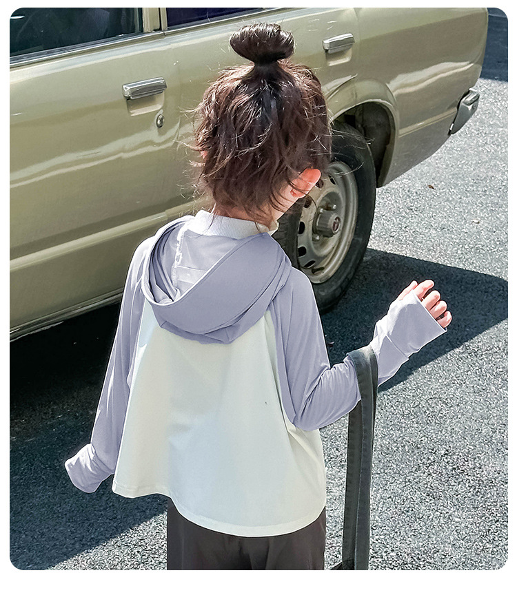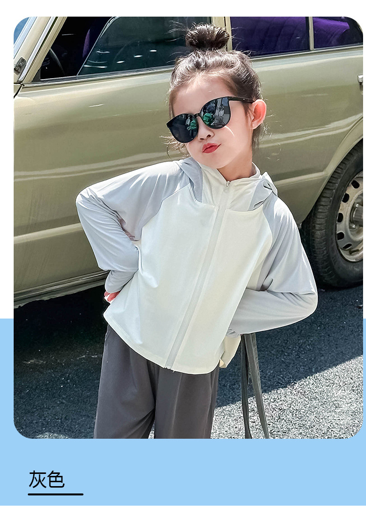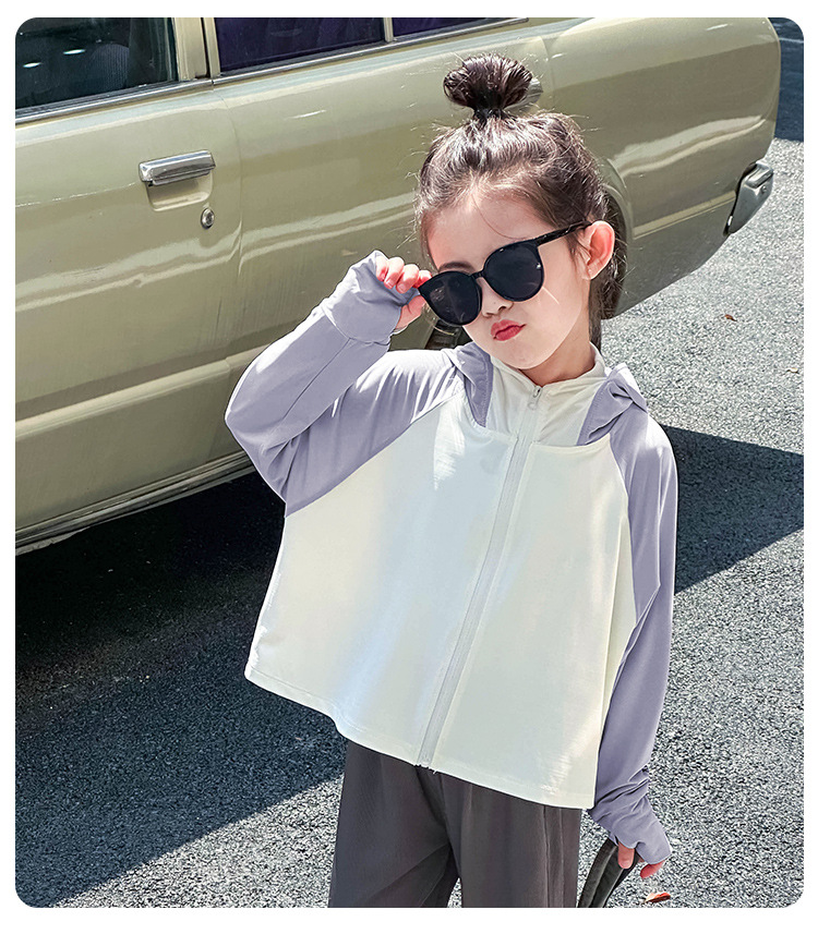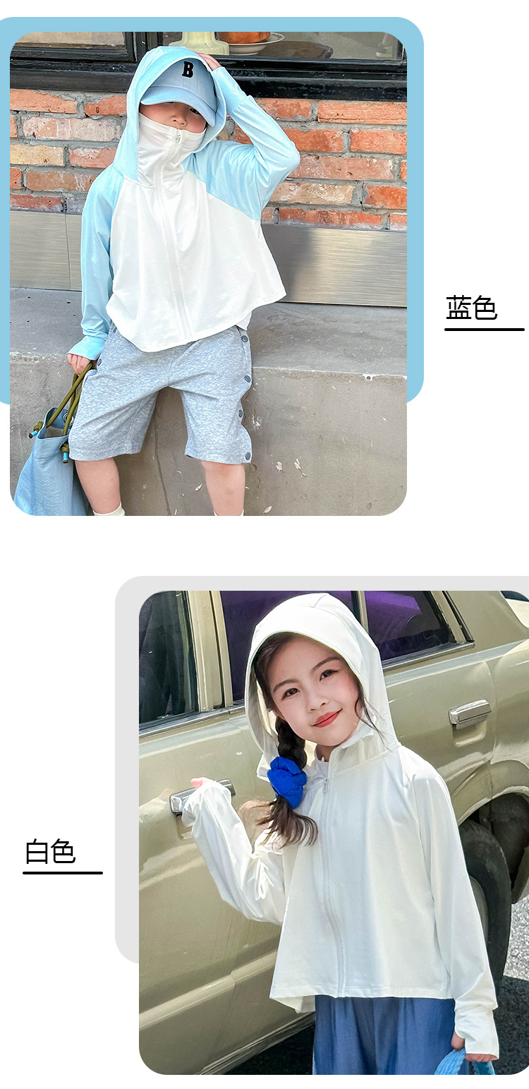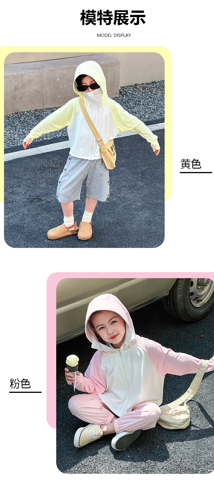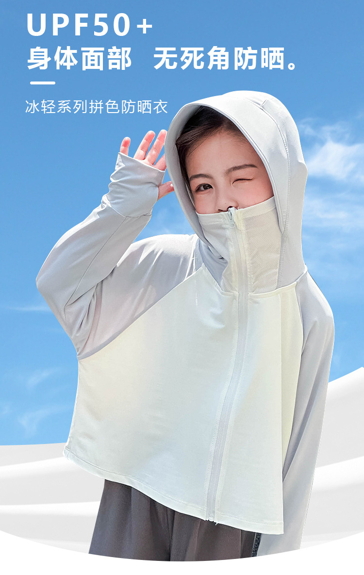【拼色冰清系列防晒衣】身体面部无死角防晒,柔滑亲肤轻薄舒适,透气防闷简约好搭儿童防晒衣夏天透气大帽檐拼色冰感防蚊皮肤衣,男女宝宝户外防晒服