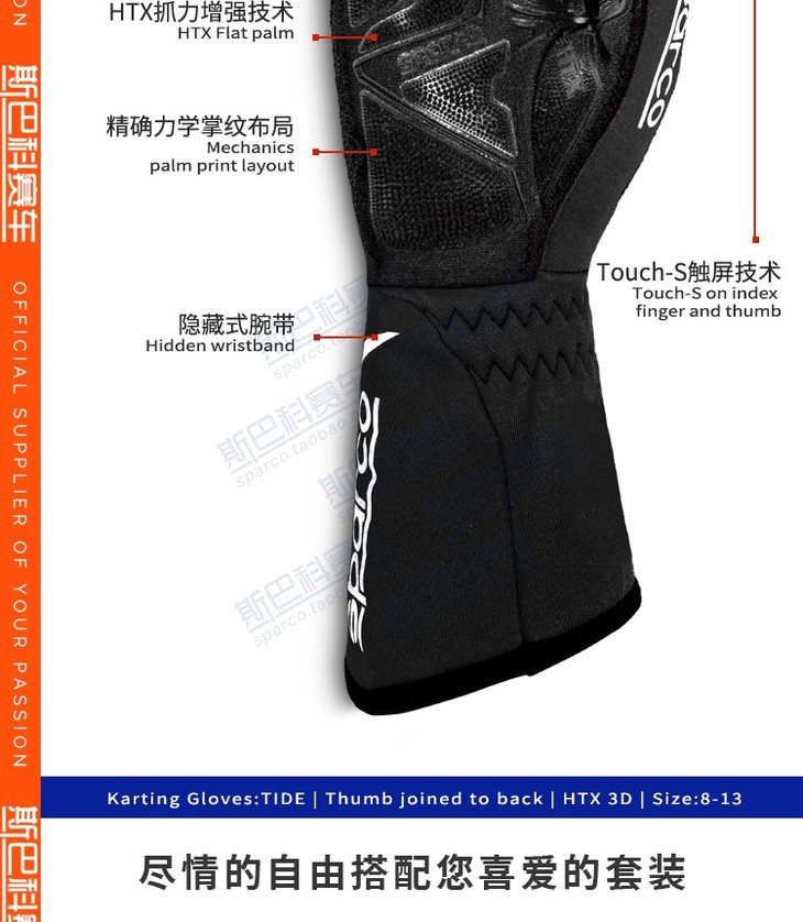 SPARCO手套 卡丁 3D立体防滑 TIDE