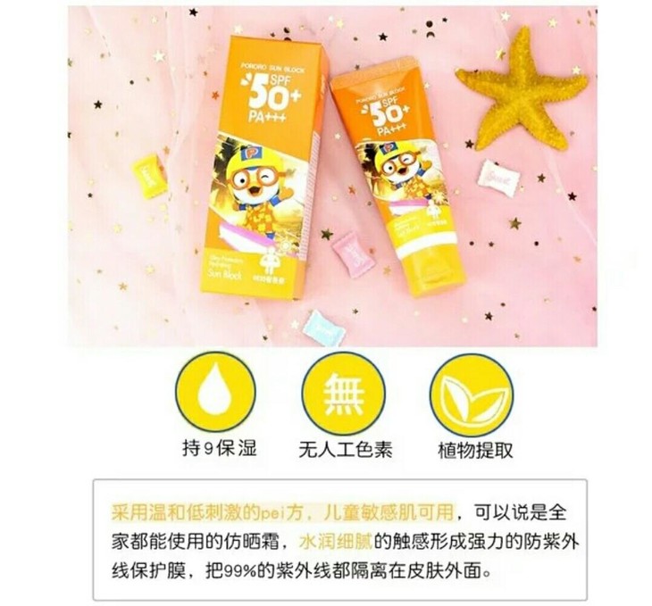 新款宝露露儿童防晒霜 SPF50 PA+++ 60m 💗 给予孩子温馨的关爱! 韩国药店有售 ❤ 本品是经专科皮肤医院严格测验的产品 🤔 具有防护UVA和UVB两种紫外线的功效 物理防晒植物配方温和无刺激不含防腐剂 👌 防晒同时滋润肌肤防止干燥保持光滑柔嫩 😏 给孩子娇嫩皮肤细心呵护 让孩子在阳光下绽放灿烂的笑容 温和、低敏、大人、孕妇可用💯