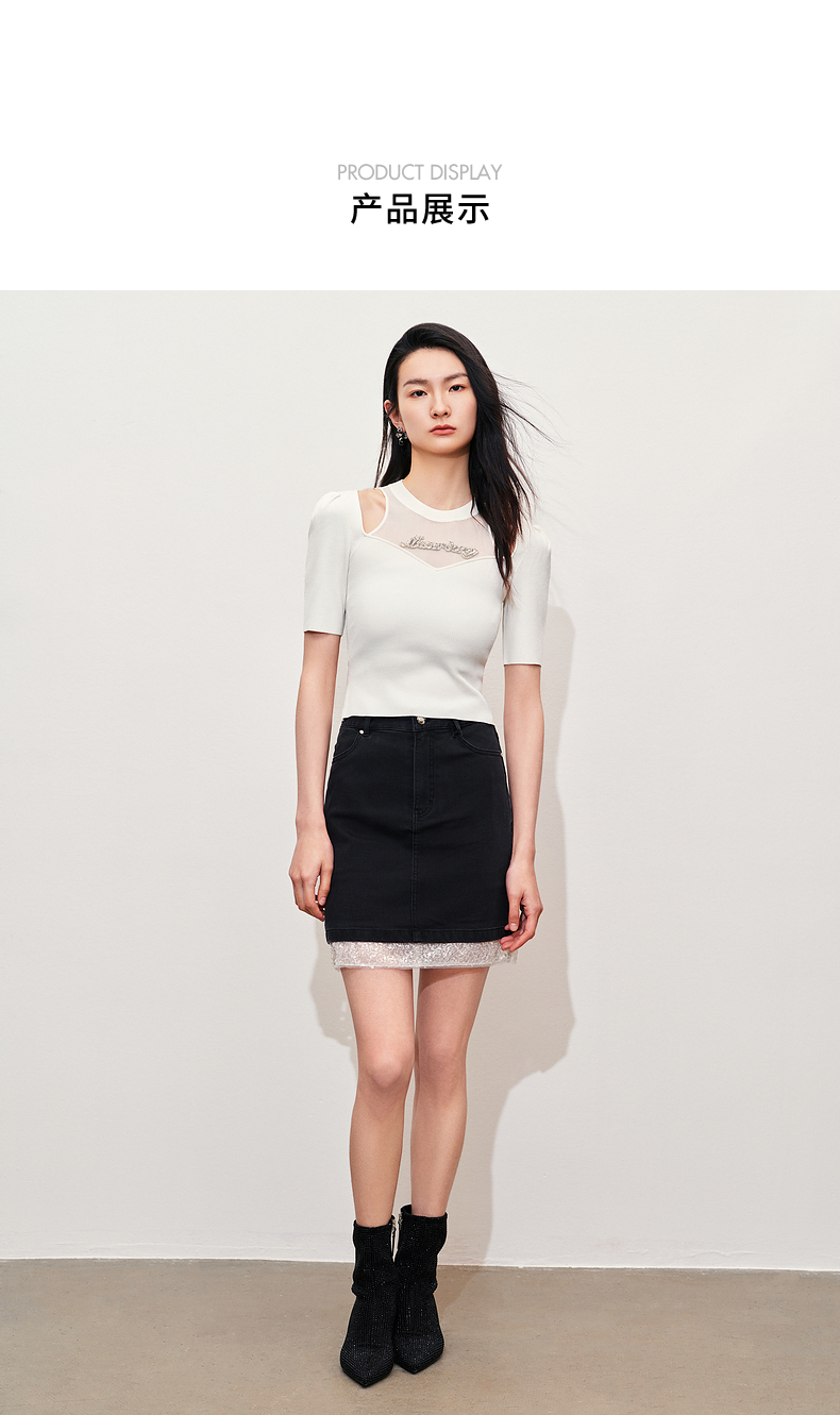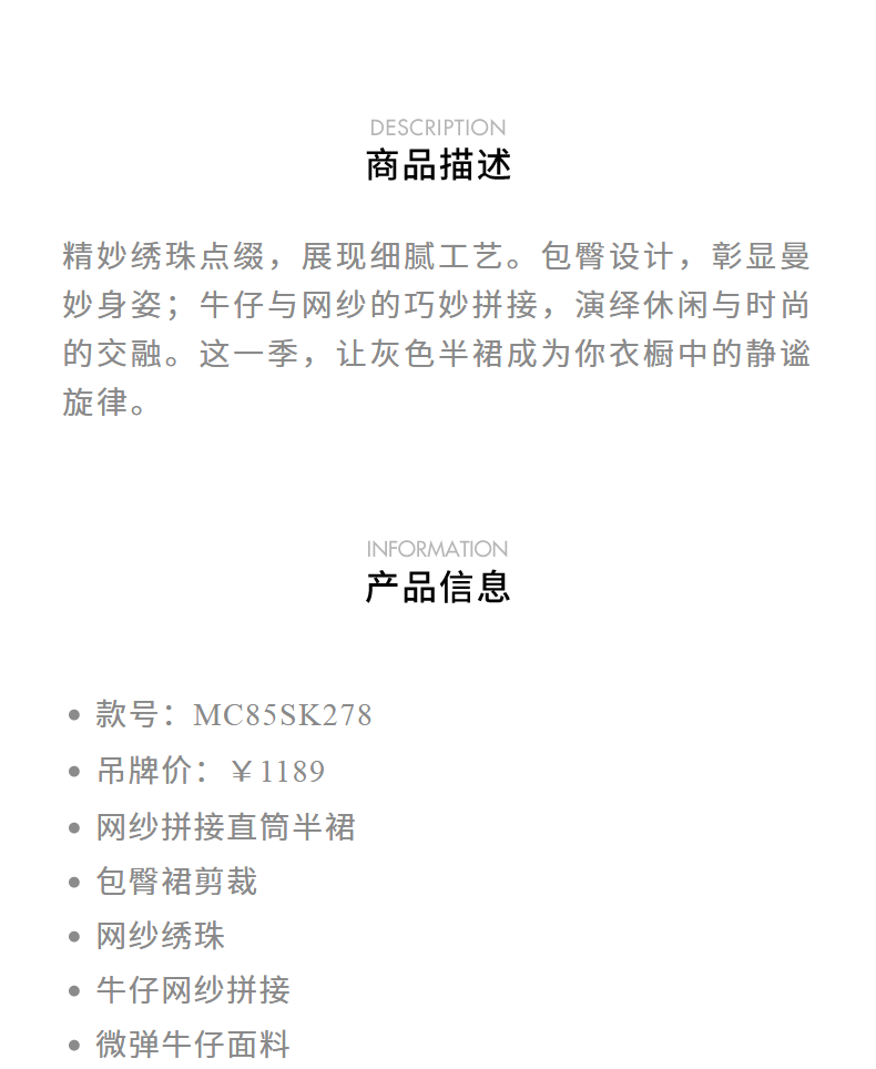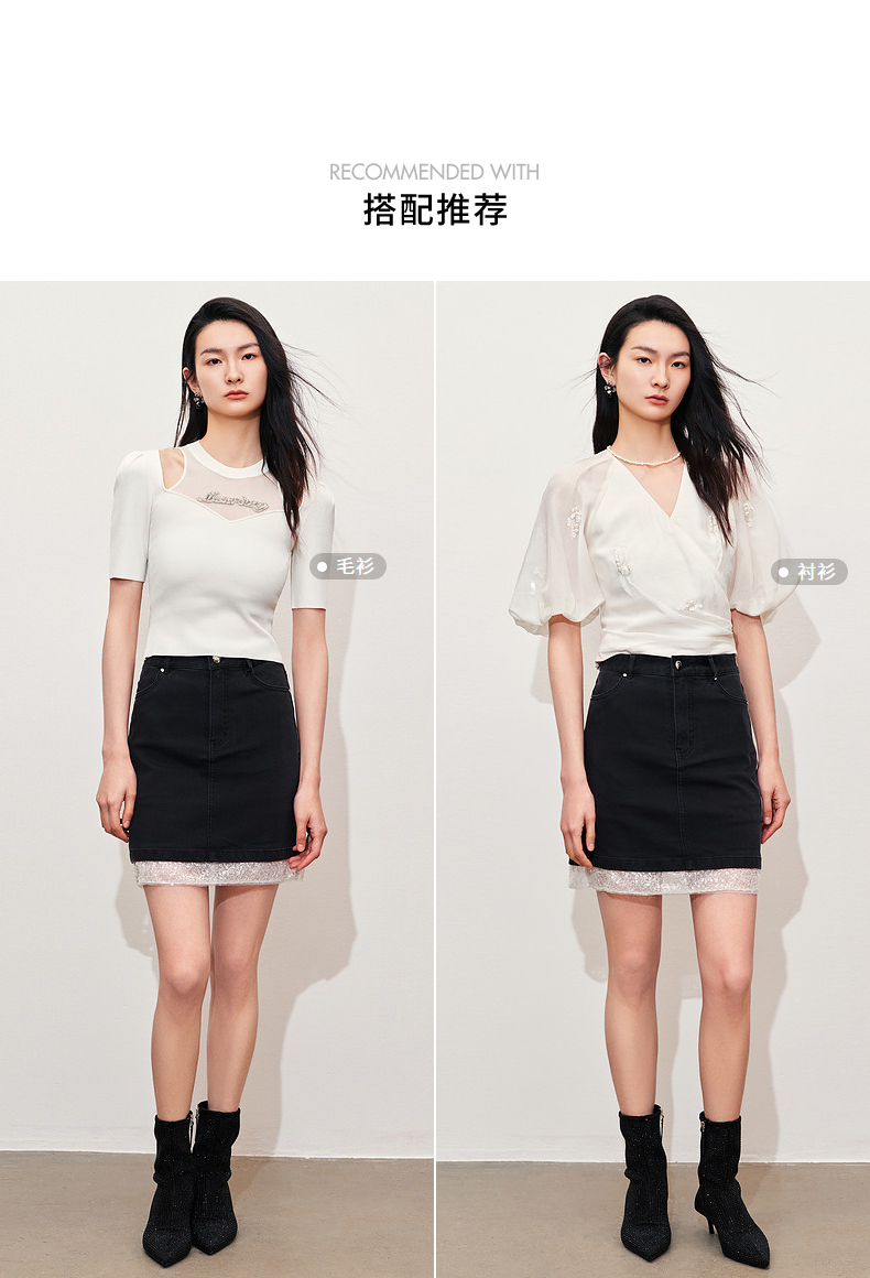 【银河精灵-商场同款】MAXRIENY*日常腰带绣珠半身裙包臀短裙(货号:MC85SK278)
