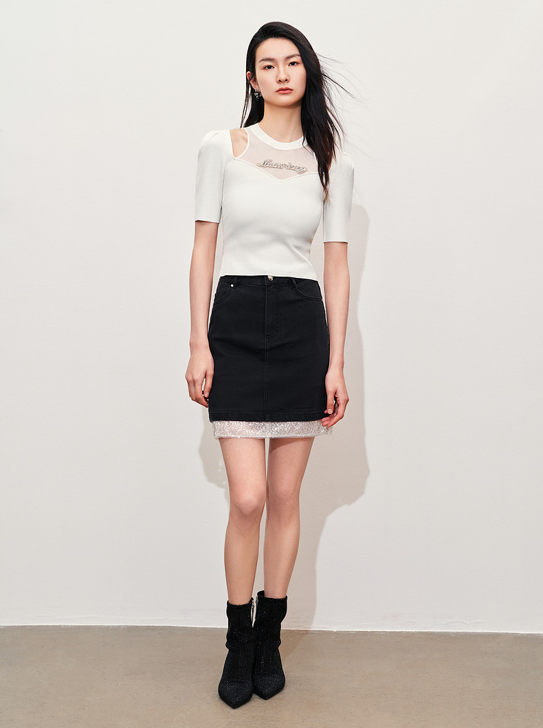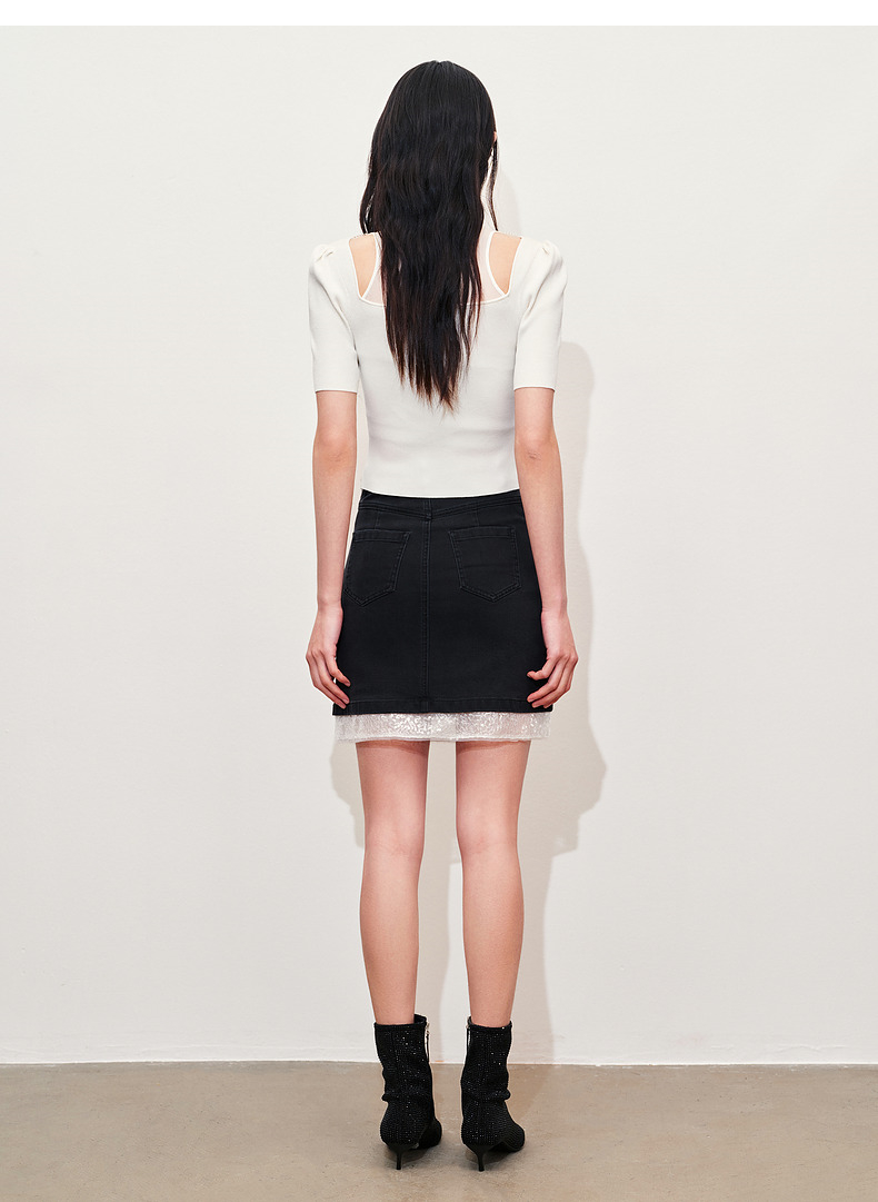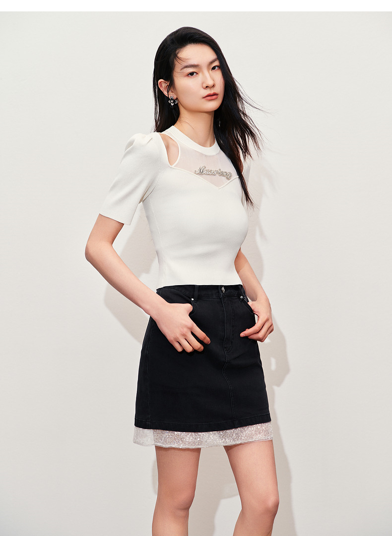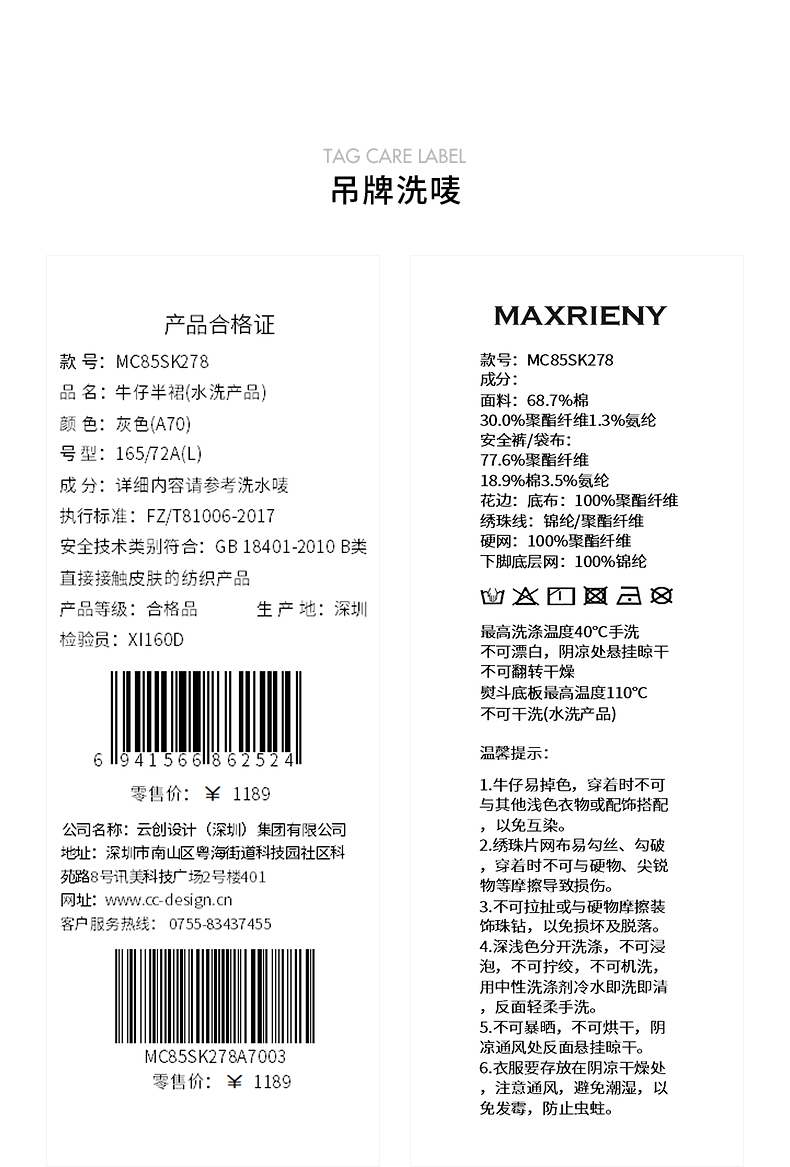 【银河精灵-商场同款】MAXRIENY*日常腰带绣珠半身裙包臀短裙(货号:MC85SK278)