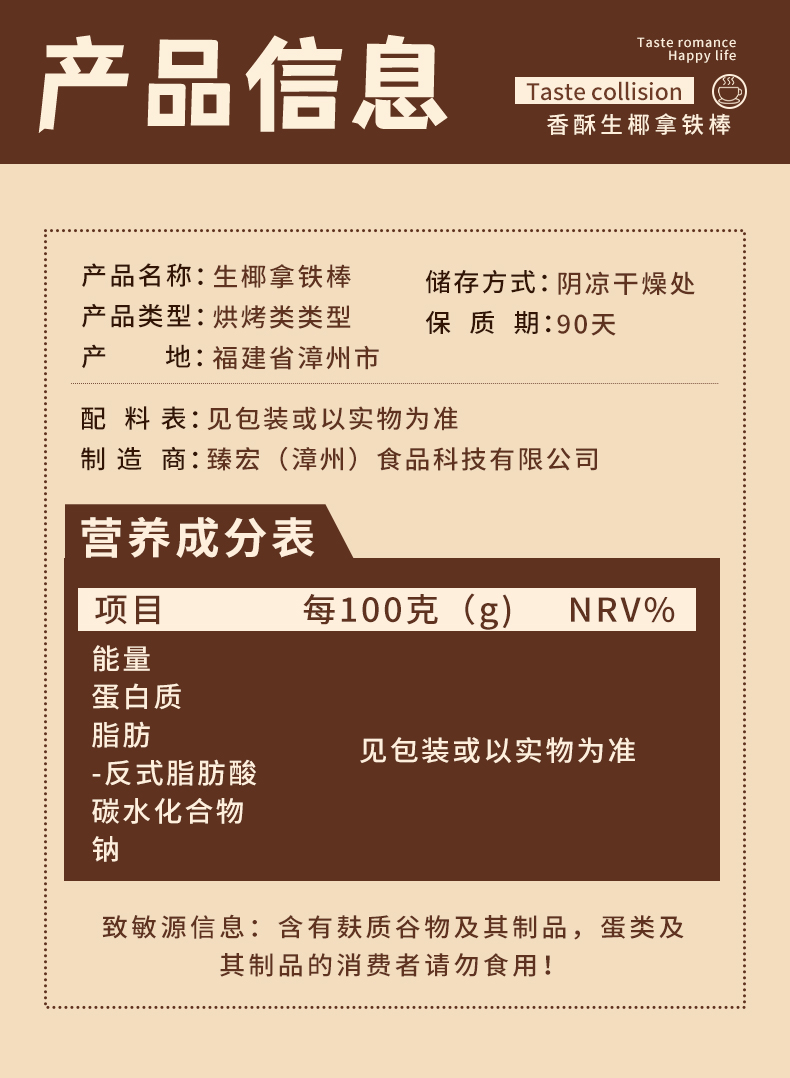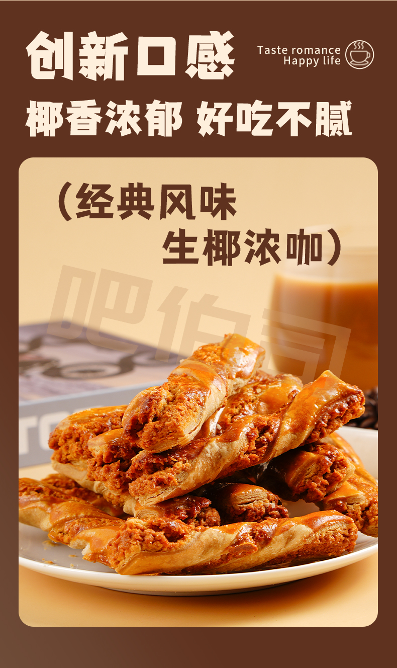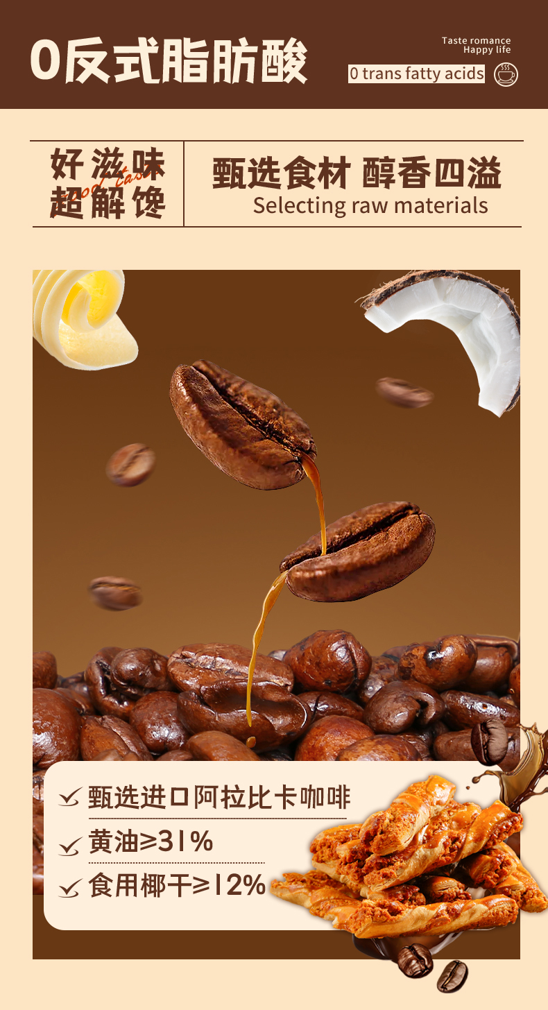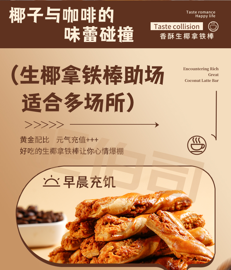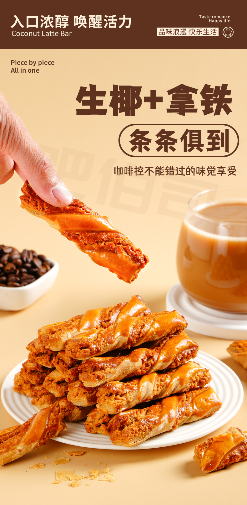 【甄选】黄油生椰拿铁棒香浓酥脆营养美味办公休闲零食218g/盒