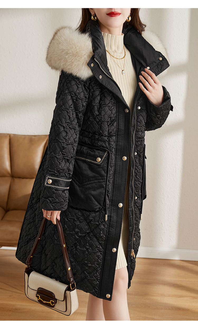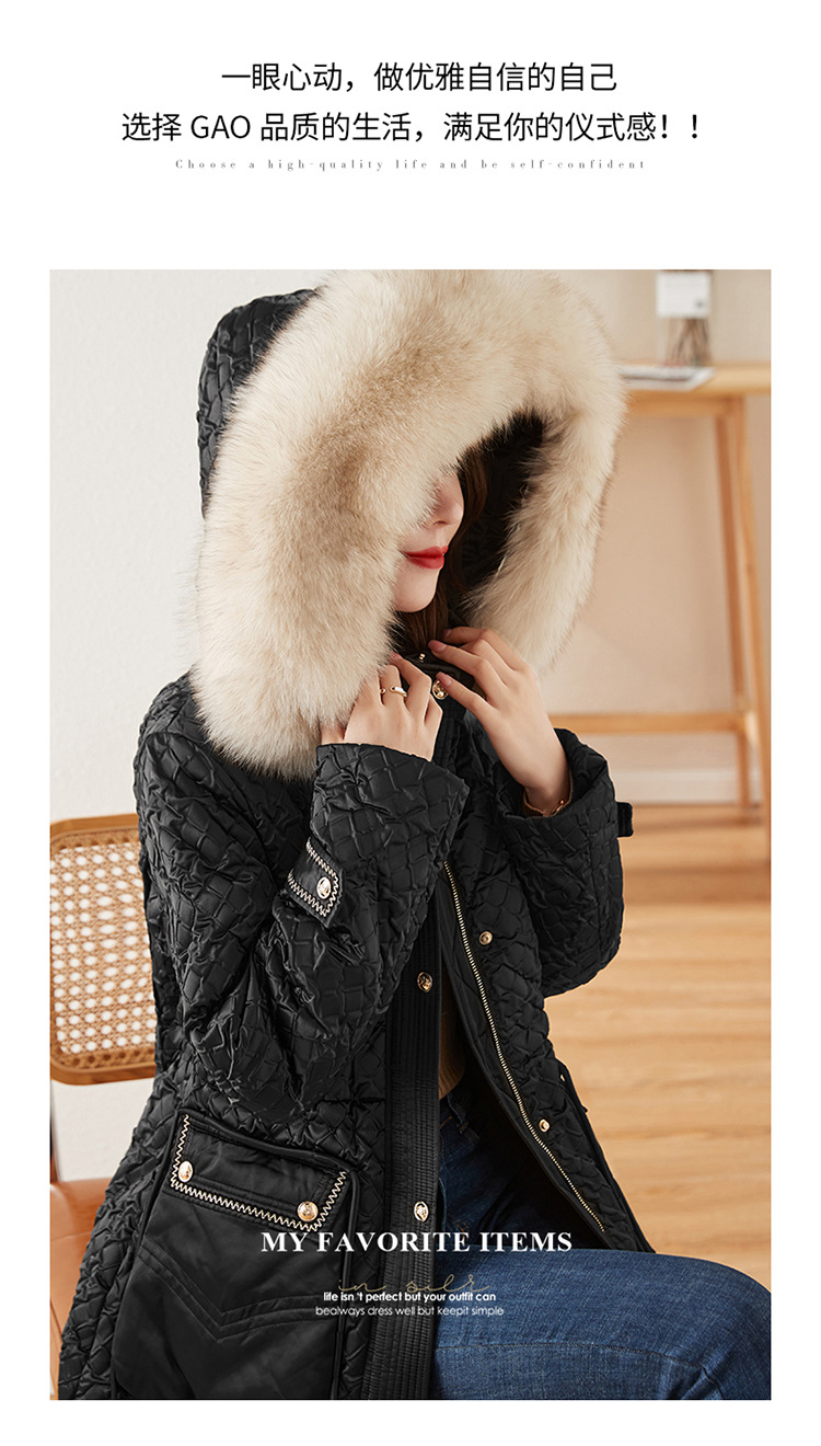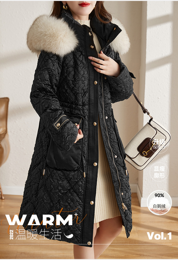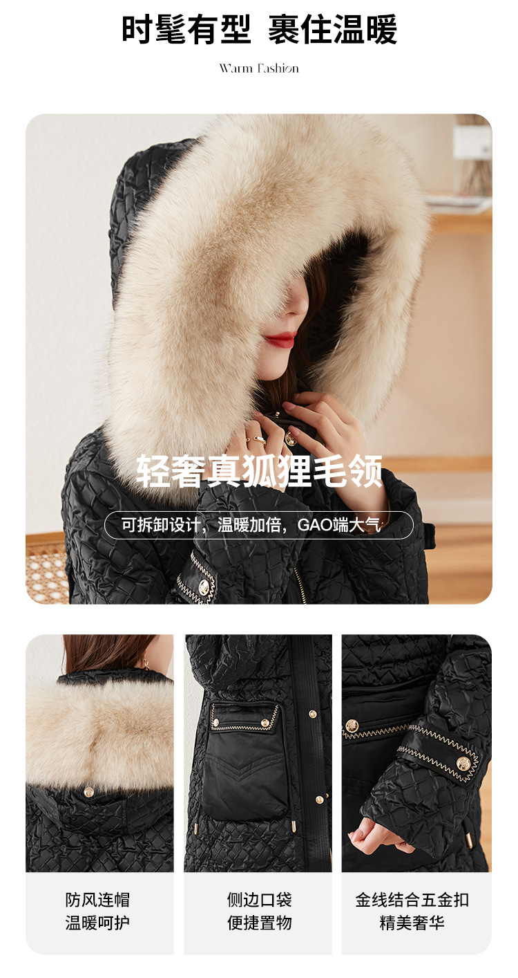 ZS-9801秋冬新款大码狐狸大毛领简约宽松中长款90鹅绒羽绒服