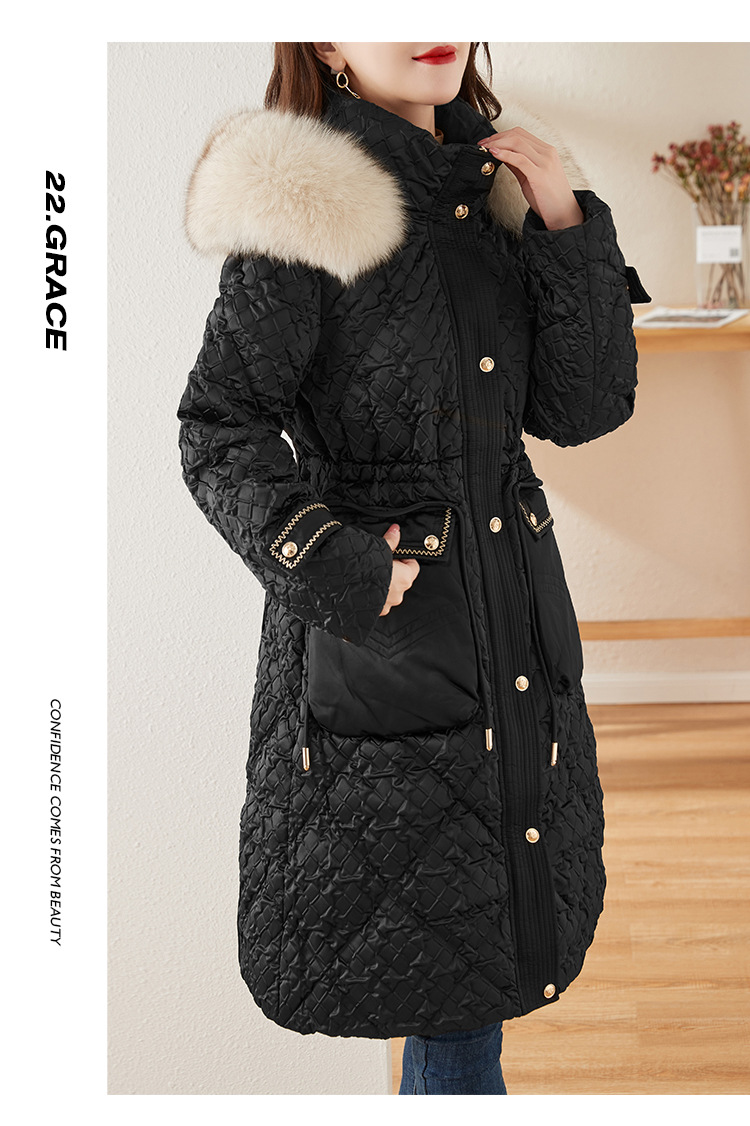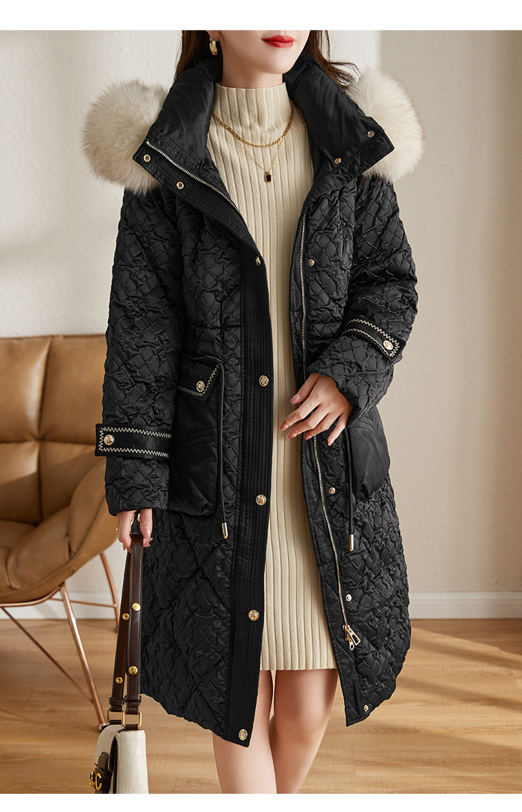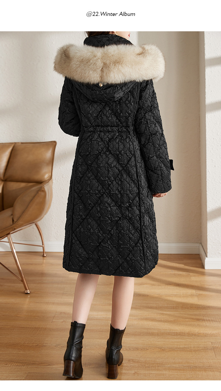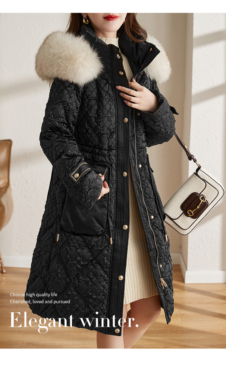 ZS-9801秋冬新款大码狐狸大毛领简约宽松中长款90鹅绒羽绒服